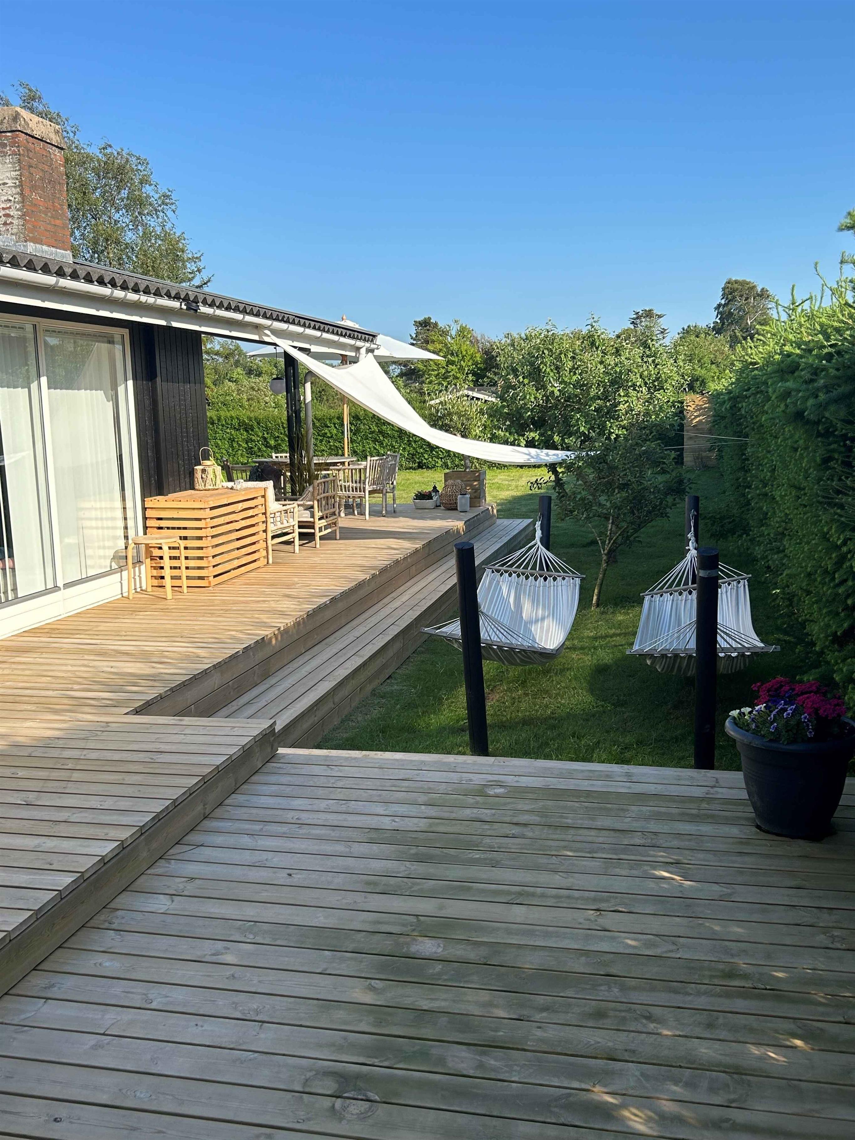 Erleben Sie ein fantastisches Urlaubserlebnis in diesem neu renovierten Sommerhaus, idyllisch auf Nordfyn gelegen, nur 450 Meter vom Strand entfernt. Treten Sie ein in die liebevoll eingerichtete Wohnküche, wo eine gut ausgestattete Kücheneinrichtung, ein einladender Essbereich und eine gemütliche Sofaecke mit Holzofen auf Sie warten. Dieses Haus verfügt über 3 charmante Schlafzimmer, jedes mit einem bequemen Doppelbett. Insgesamt finden hier 6 Personen Platz, die hier Ruhe und Erholung finden können. Der Außenbereich bietet luxuriöse Terrassenumgebungen, auf denen Sie die Sommerhitze genießen können. Veranstalten Sie einen Grillabend, genießen Sie Gesellschaftsspiele und schaffen Sie schöne gemeinsame Momente. Nach einem Tag am Strand können Sie das Salzwasser unter der erfrischenden Außendusche abspülen. Nutzen Sie den üppigen Garten, wo ein weicher Rasen zum Spielen und Entspannen einlädt. Schaukel, Spielplatz und Hängematten schaffen den perfekten Rahmen, um bei einem guten Buch zu entspannen und den Urlaub in vollen Zügen zu genießen. Das Sommerhaus liegt strategisch günstig in der Nähe der charmanten Markt- und Hafenstadt Bogense. Erkunden Sie die gut erhaltenen alten Häuser, genießen Sie ein leckeres Eis am historischen Hafen, gehen Sie in den kleinen Geschäften einkaufen oder bewundern Sie die majestätischen Schiffe im Yachthafen. Diese Gegend bietet eine Fülle unvergesslicher Erlebnisse.