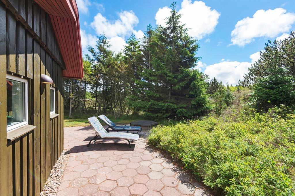 Um das Haus herum sind Fliesen gelegt, so dass man zwischen zahlreichen sonnigen Ecken und ungestörten Aufenthaltsorten wählen kann. Das große Naturgrundstück ist hügelig, was bedeutet, dass die Südterrasse in einem windgeschützten Tal liegt, wo man ganz für sich sein kann. Für die jüngsten Gäste stehen auf dem Grundstück eine Schaukel und ein Sandkasten zur Verfügung, und das Auto kann sicher in der Garage geparkt werden.