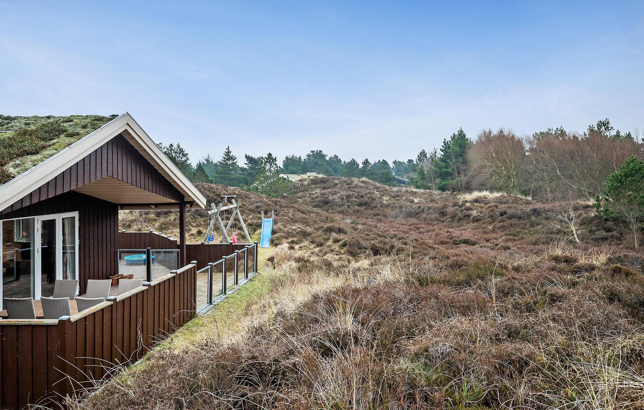 Spielspaß setzt sich auch im Garten fort, in dem Schaukeln warten. Freuen Sie sich auch auf die große und geschützte Terrasse, die zum Sonnenbaden und Grillen am Abend einlädt. Für eine ruhige Auszeit können Sie sich auf die Bank auf der Düne setzen und über die Heidelandschaft blicken.