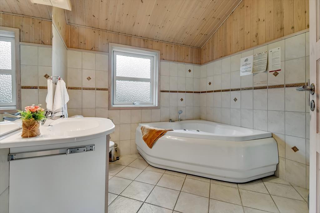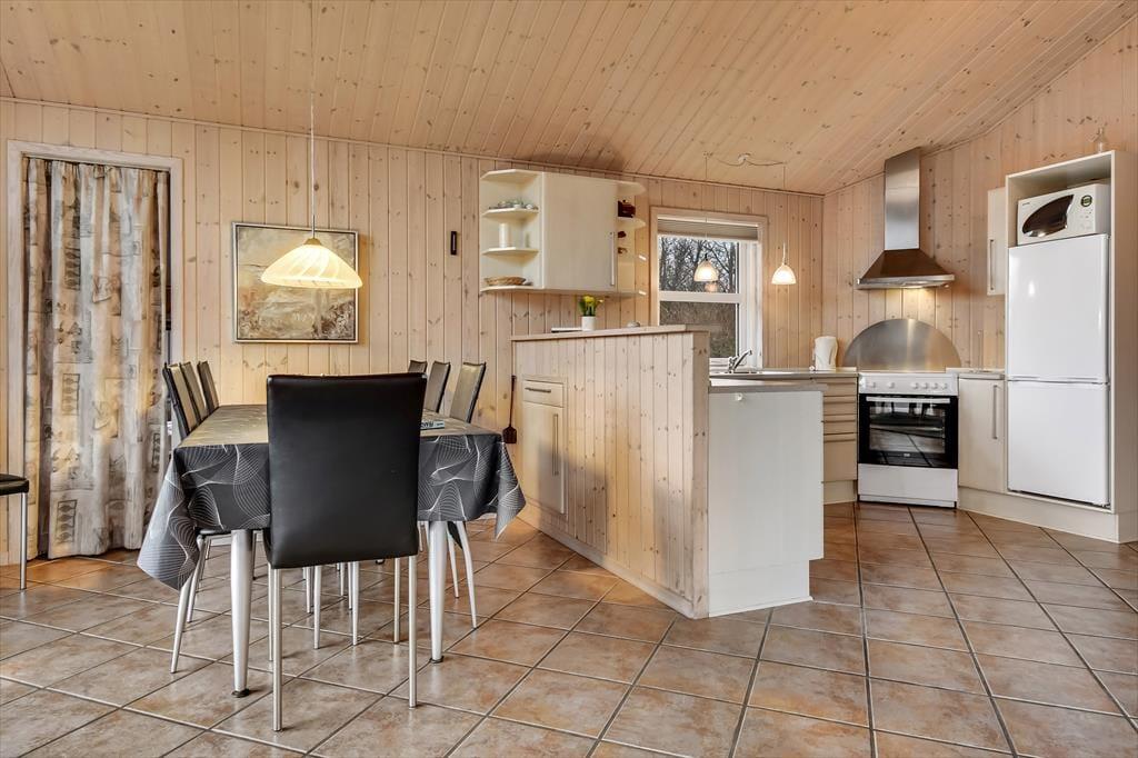 Die Adresse ist attraktiv, denn das Haus liegt am Ende eines Weges in einem der modernen Ferienhausviertel von Bork Havn. In der Nachbarschaft gibt es gute Spielplätze, und in unmittelbarer Nähe gibt es viele kleine Pfade, sodass es einfach ist, einen schönen Spaziergang an der frischen Luft zu unternehmen. Das beliebte Bork Legeland ist nur einen Spaziergang vom Haus entfernt, während die Ortsmitte und die gemütliche Hafenumgebung etwa 1,5 km entfernt sind. Hier gibt es sowohl einen kleinen Supermarkt als auch Restaurants, und bei gutem Wetter kann man in der Nähe des Hafens schwimmen, surfen und Kajak fahren. Auch der Wikingerhafen von Bork und der Minigolfplatz von mit einem Wikingerthema schaffen Aktivität und eine gemütliche Atmosphäre im Ort.