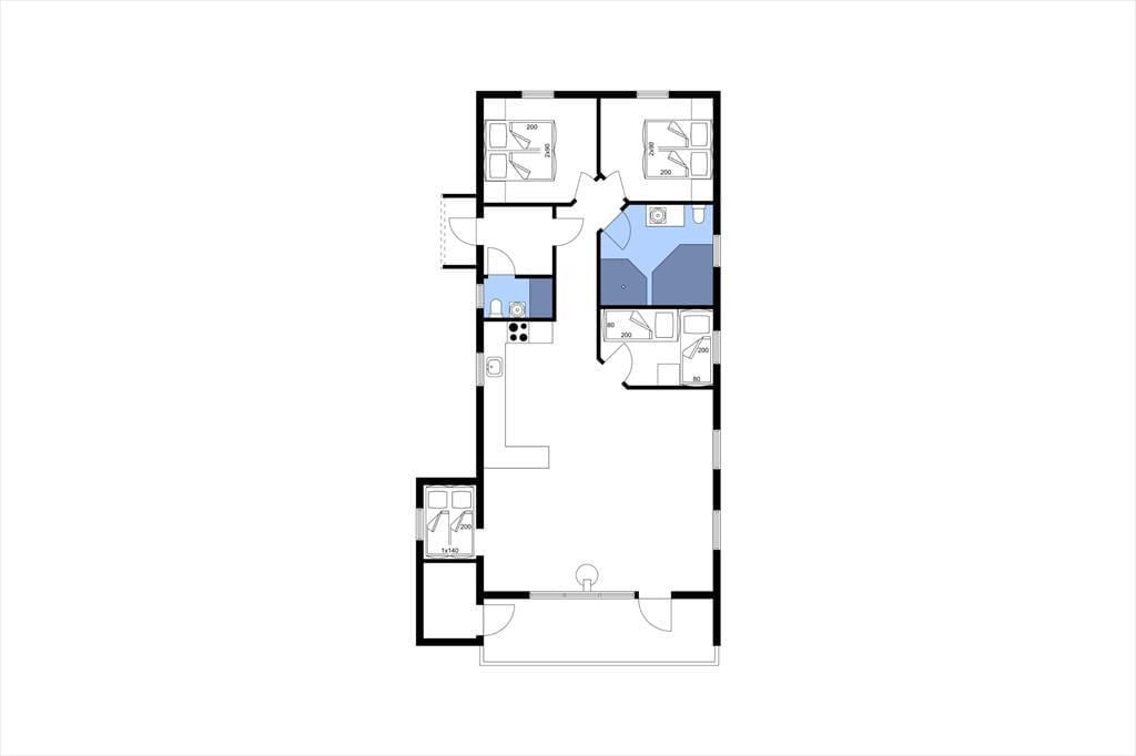 Der Grundriss des Ferienhauses ist sinnvoll gestaltet, so dass bis zu acht Feriengäste hier problemlos gemeinsam Urlaub verbringen können. Zwei Schlafzimmer sind mit einem Doppelbett und das dritte mit zwei Einzelbetten ausgestattet, zusätzlich gibt es im Wohnzimmer eine Schlafnische mit Platz für zwei Personen. Tagsüber dient der Alkoven als gemütliche Ecke, wenn Sie lesen oder ein Nickerchen machen möchten, es sei denn, Sie werfen sich stattdessen in den Sofabereich des Wohnzimmers in der Nähe des Ofens. Eine gut ausgestattete Küche ist offen mit dem Wohnzimmer verbunden, sodass Sie selbst bei Zubereitung des Abendessens am Geschehen im Haus teilhaben können. Praktischerweise befinden sich im Haus zwei Badezimmer, von denen das größte mit Whirlpool und das andere mit Waschmaschine und Trockner ausgestattet ist.