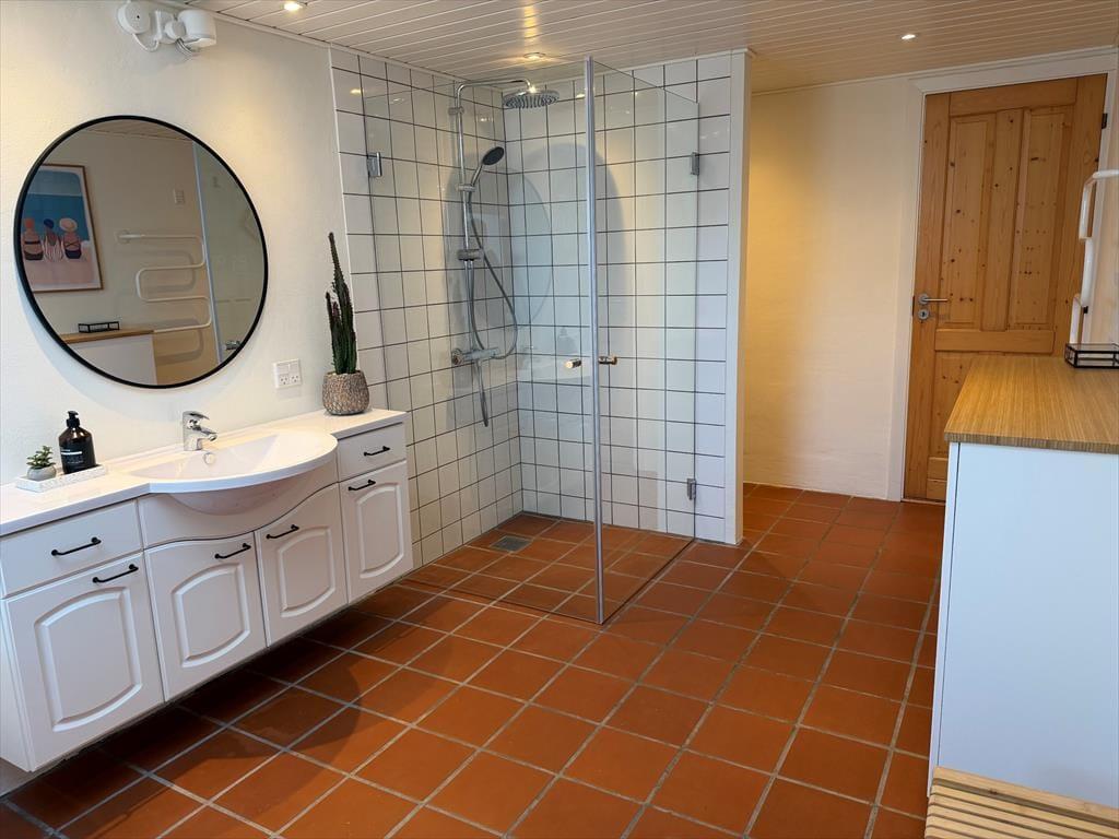 Alles in allem bietet euch dieses Ferienhaus einen wunderbaren Rahmen für euren Urlaub. Es wurde 2024 gründlich renoviert und bietet dir auf 124 m² viel Platz, sodass auch sechs Personen großzügig Urlaub machen können. Für die Nacht stehen euch vier Schlafzimmer zur Verfügung. Eines davon liegt etwas abseits direkt neben dem größeren der beiden Badezimmer. Hier gibt es nicht nur eine Dusche, sondern auch einen Whirlpool und eine Sauna. Wenn du davon träumst, deinen Urlaub mit Wellness und Entspannung zu füllen, ist dies der perfekte Ort. Das Wohnzimmer ist ein einladender und angenehm heller Raum mit integriertem Küchenbereich und einem in die Wand eingelassenem Kamin in der Nähe der Sofaecke.