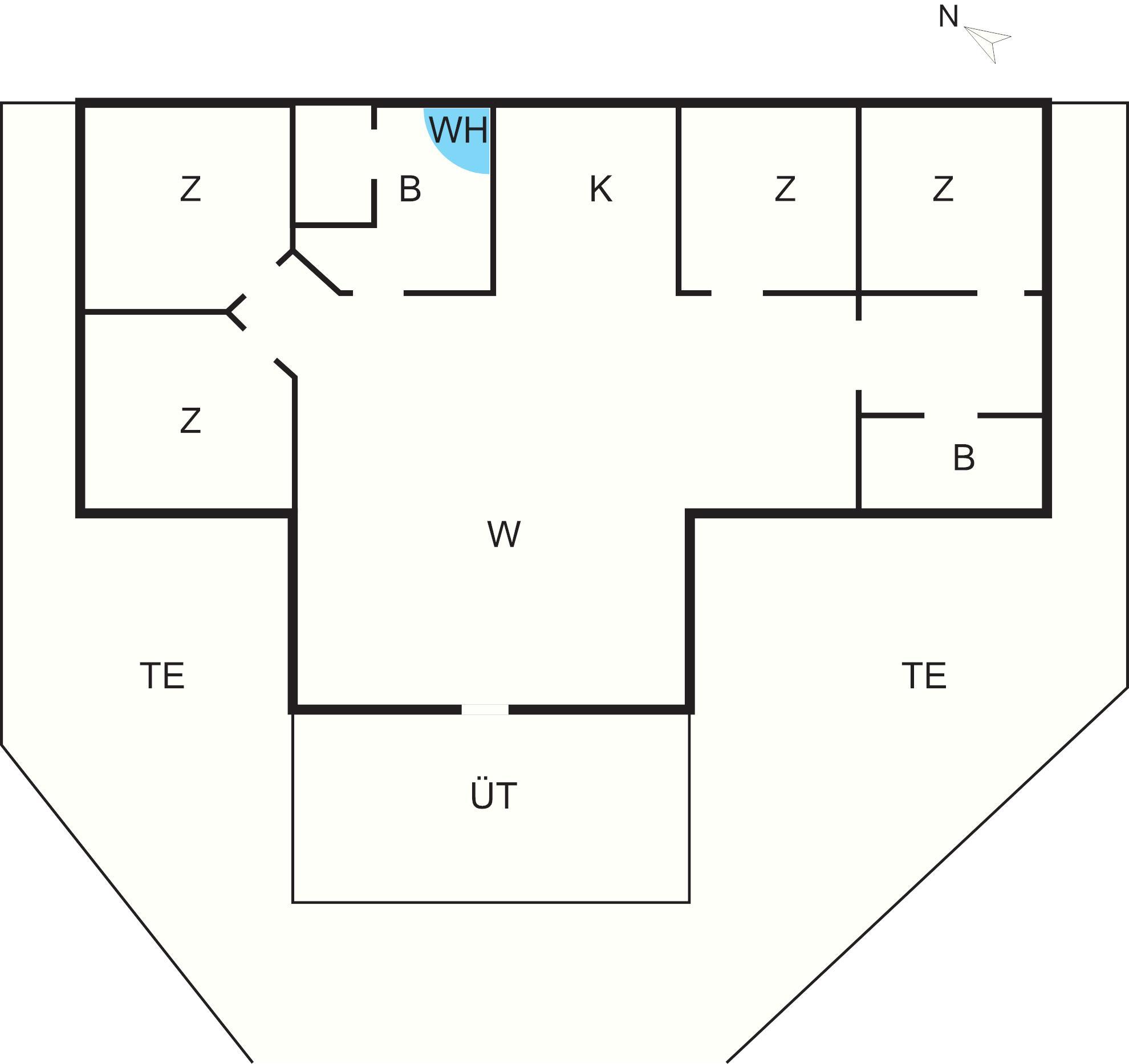 Bad: Waschm, Trockner, WC, Waschb., Dusche, Fußbodenheiz.