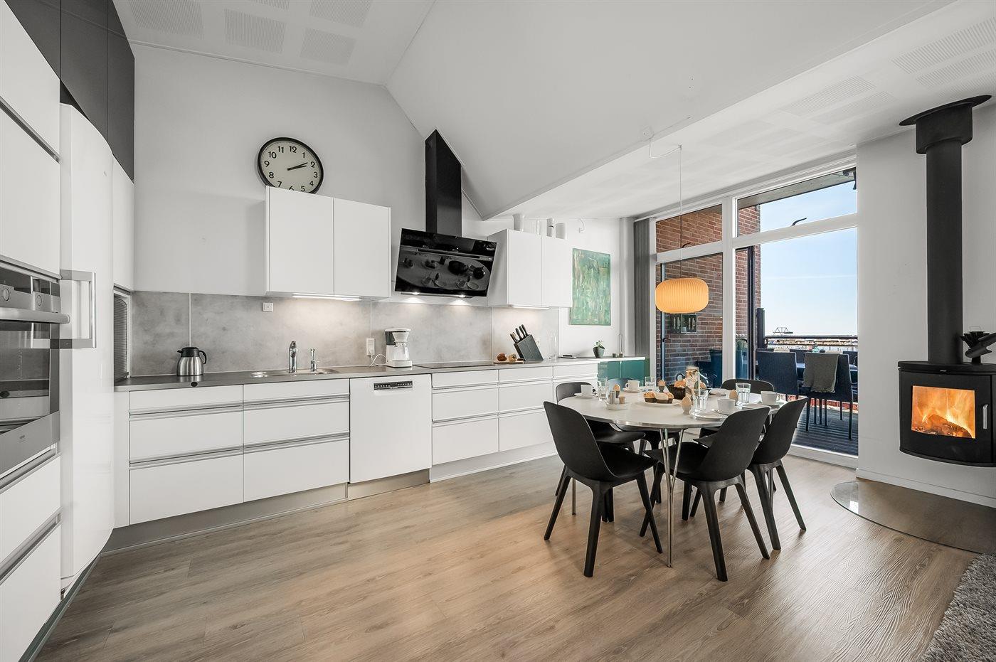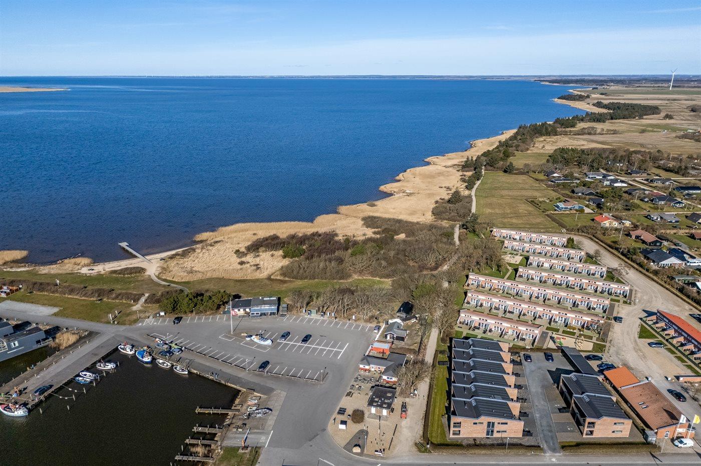 Mit einer fantastischen Aussicht über Bork Havn – ein idyllisches kleines Fischerdorf – und den Ringkøbing Fjord liegt dieses schöne Ferienhaus in bester Lage. Vom offenen Wohn- und Essbereich im Obergeschoss habt ihr Panoramaaussicht auf den Hafen und den Fjord – egal, wo im Raum ihr euch befindet. Der große überdachte Balkon ist der perfekte Ort, um den Abend zu verbringen und den Sonnenuntergang über dem Fjord zu genießen – ein Erlebnis in Sonderklasse.