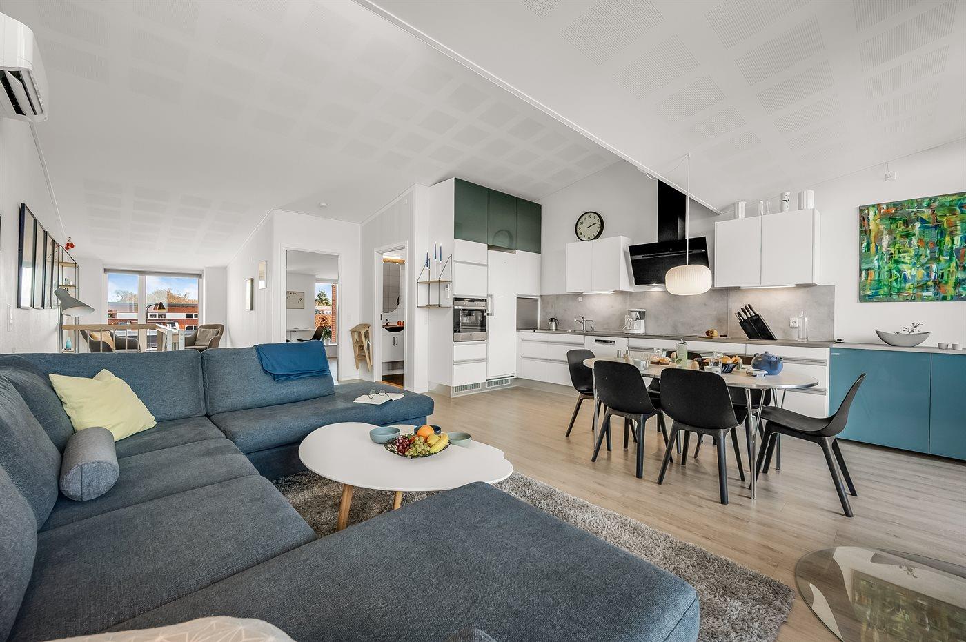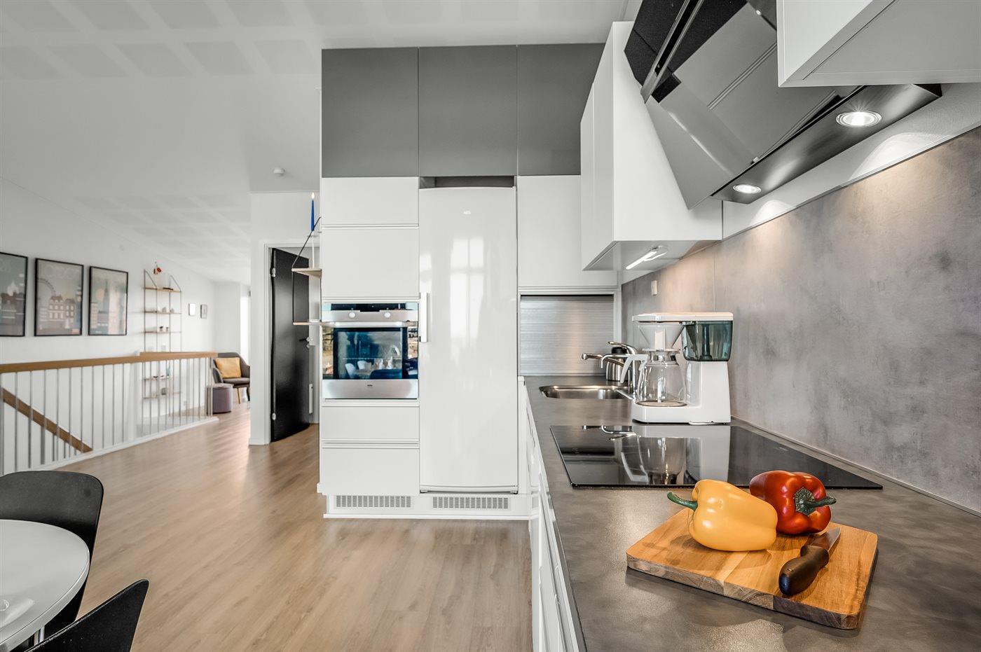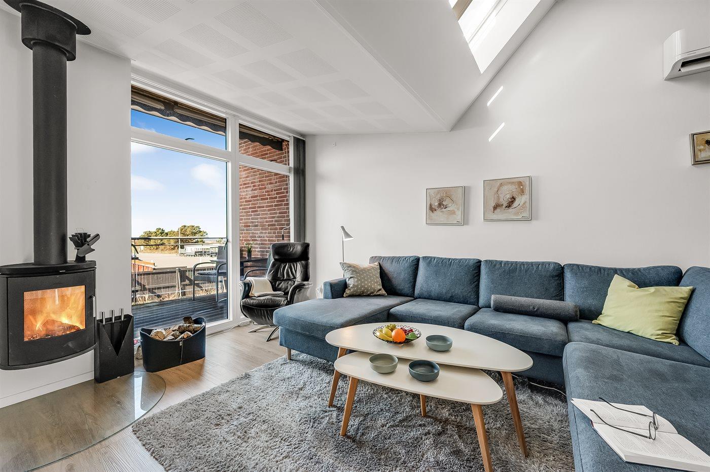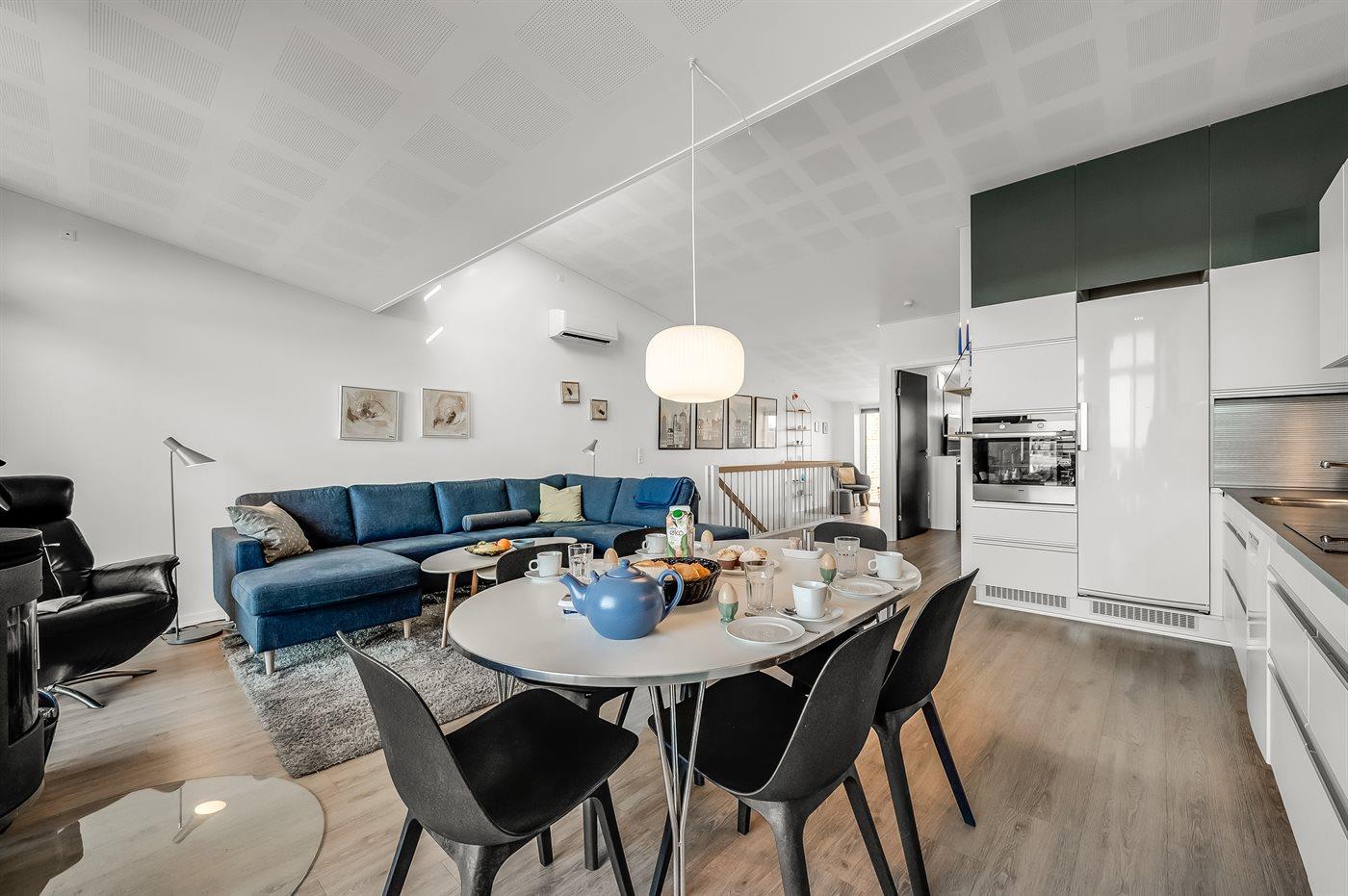 Die Ferienunterkunft liegt auf einem 170 m² großen Naturgrundstück. Die Entfernung zum Fjord beträgt 100 m. Die nächste Einkaufsmöglichkeit liegt 100 m entfernt. Es steht ein offenes Terrassenareal zur Verfügung. Außerdem gibt es überdachte Terrasse.Balkon im Obergeschoss. Es ist ein Ladestecker für Elektroautos installiert. CCS-Stecker (Combo-Stecker). Mit einer Ladeleistung von 11 kW. Parkplatz auf dem Grundstück.