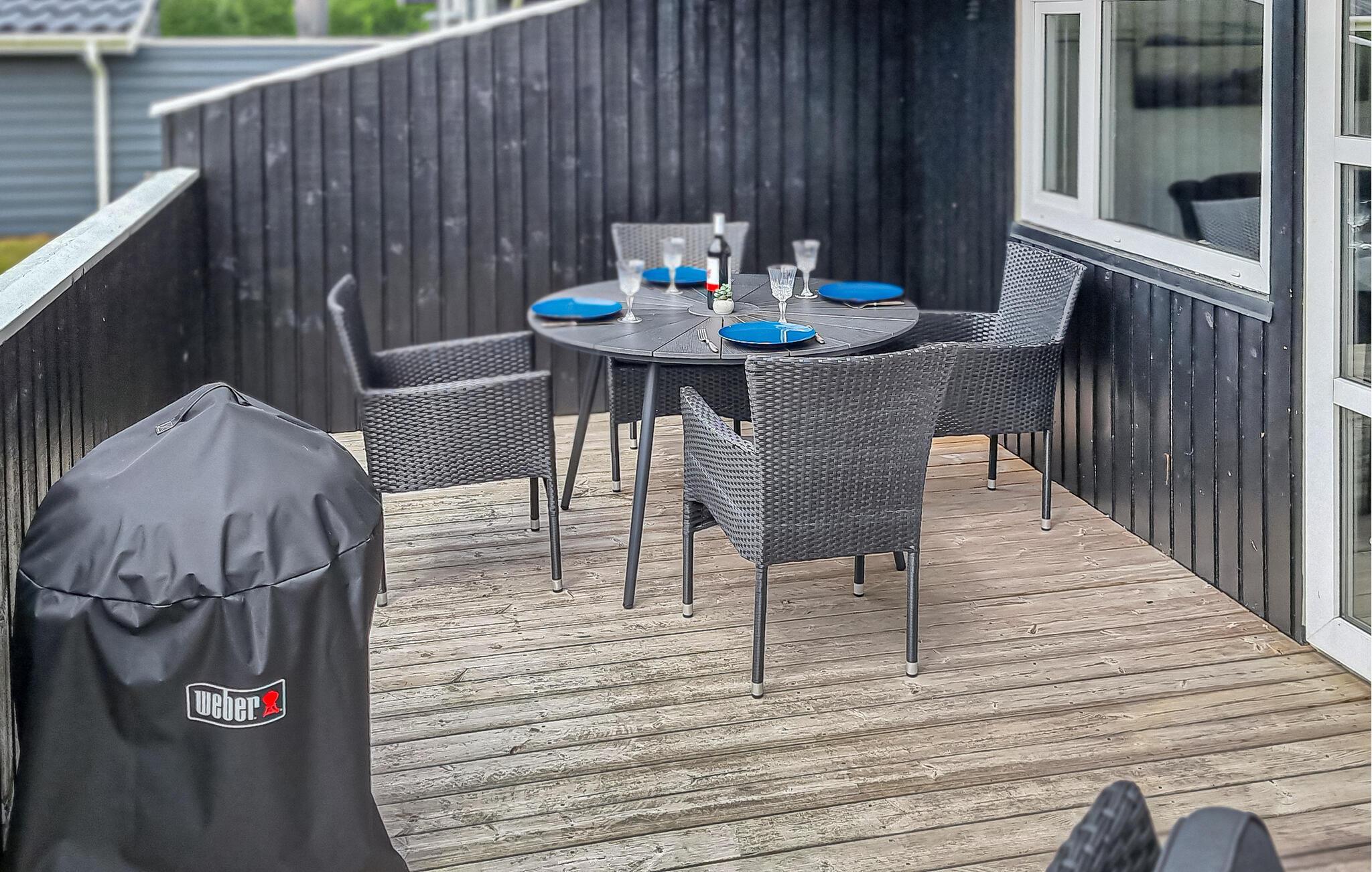 Gemütliches Ferienhaus in Bork Havn mit Terrasse, Kaminofen und Spielkonsole für entspannte Familienferien.