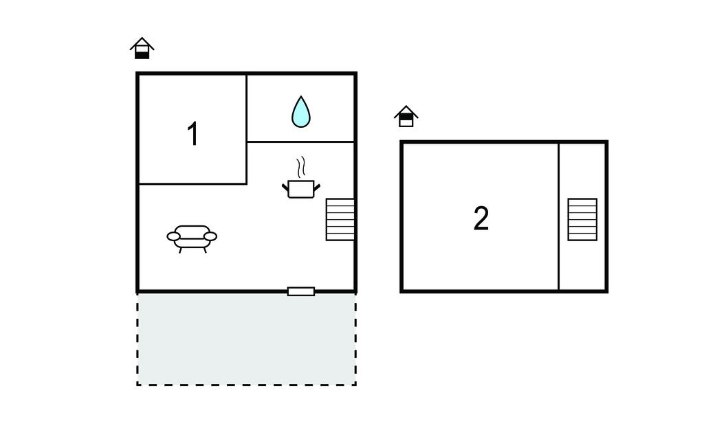Der Wohnraum Ihres Ferienhauses ist hell gestaltet und mit einem Sofa, bequemen Sesseln und einem kleinen Couchtisch ausgestattet. Nehmen Sie Platz, lesen Sie ein Buch oder nutzen Sie den Fernseher für einen ruhigen Abend. Ein kleiner Esstisch schafft Raum für gemeinsame Mahlzeiten oder Gesellschaftsspiele. Die offene Küche ist kompakt und zweckmäßig eingerichtet.