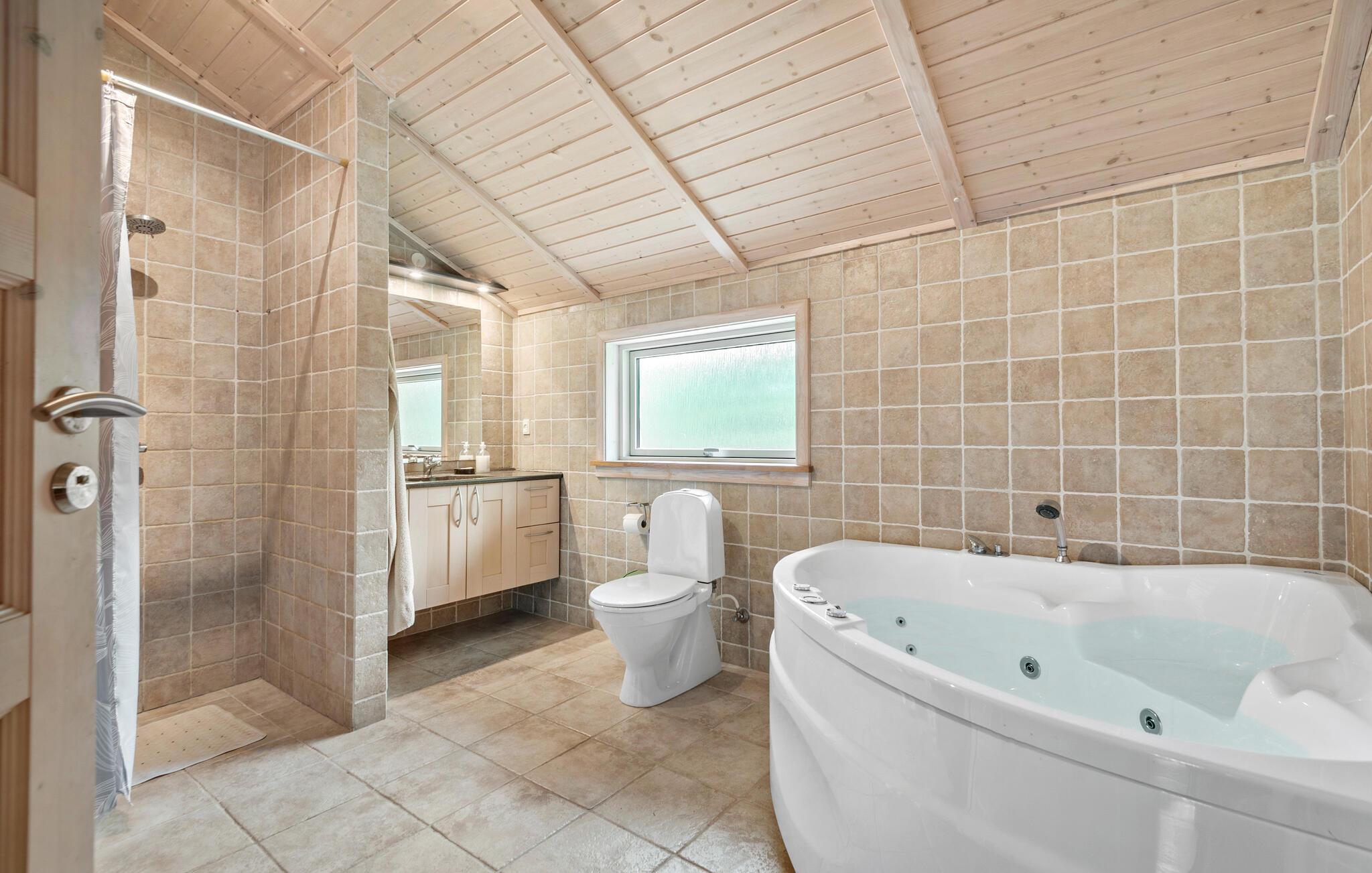 Entspannen Sie sich in diesem einladenden Ferienhaus mit Whirlpool-Badewanne und Sauna.