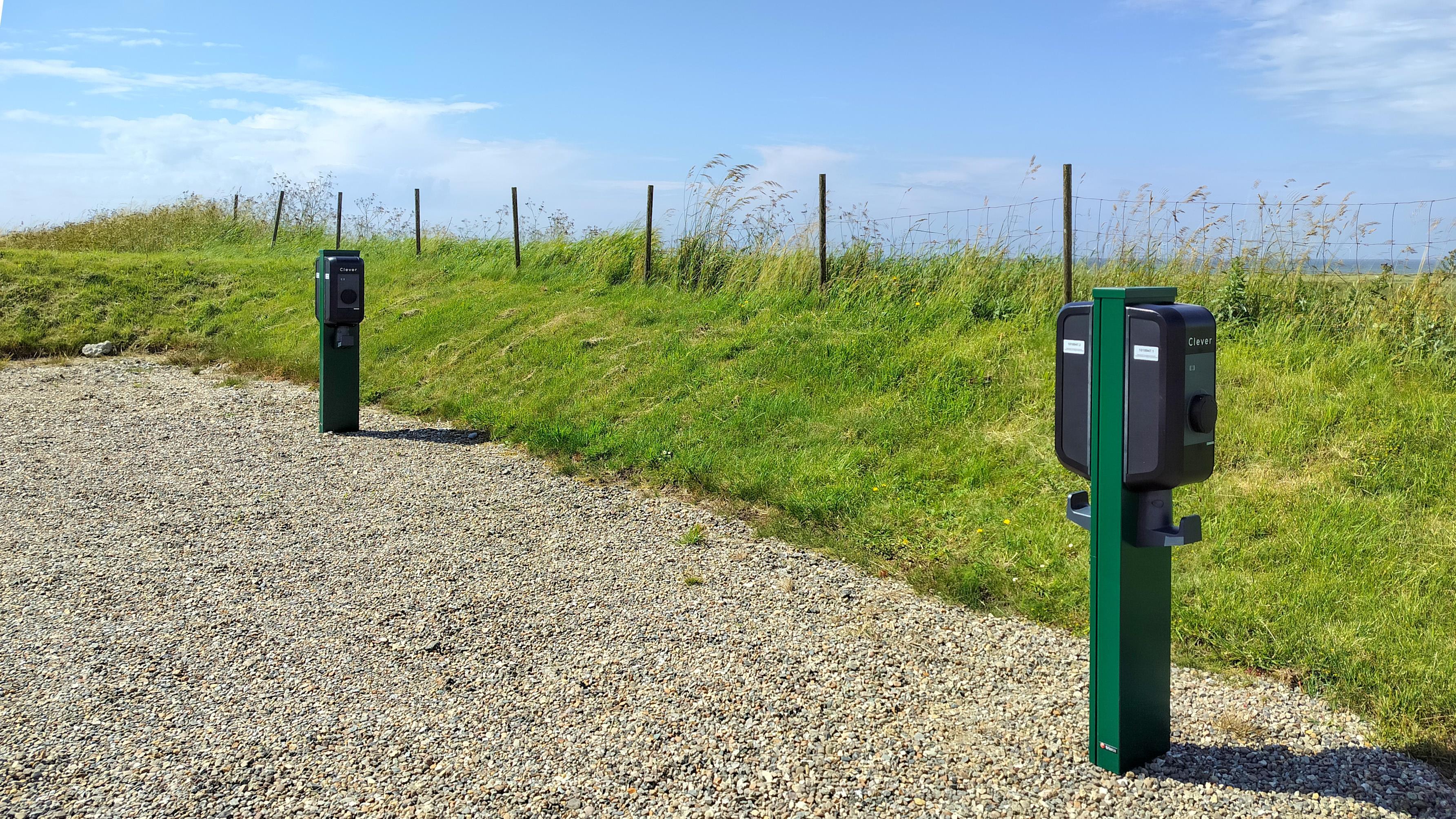 Für Besitzer von Elektro- oder Plug-in-Hybridfahrzeugen gibt es Ladestationen im Bovbjerg Strandpark mit Typ-2-Steckern (bis zu 11 kWh).