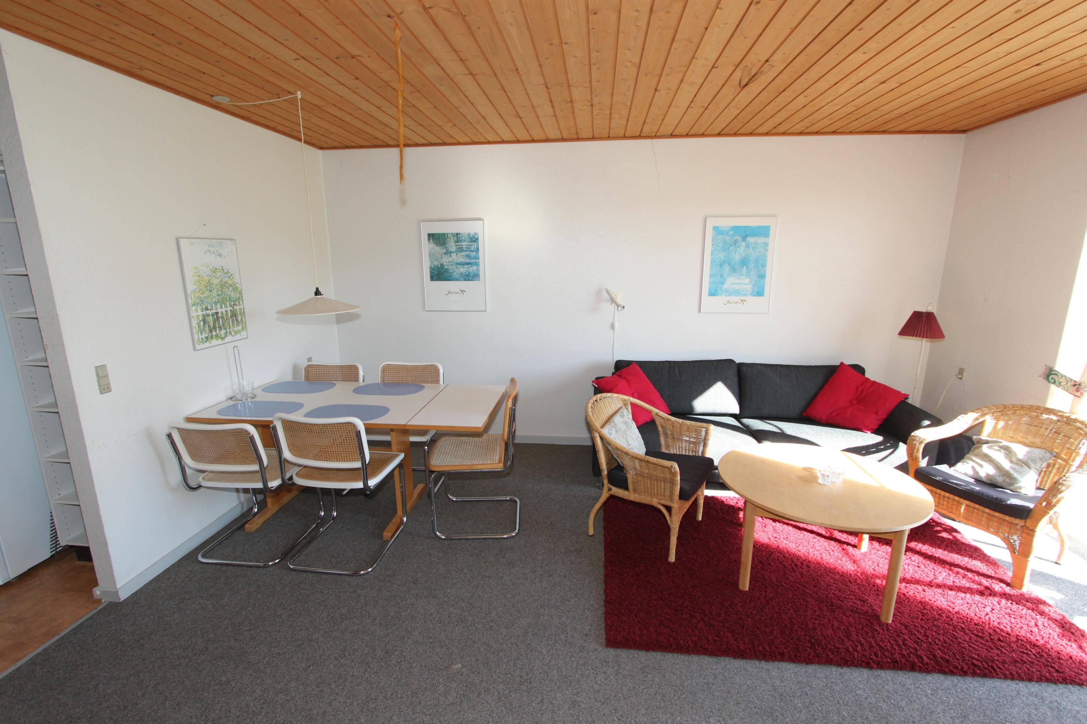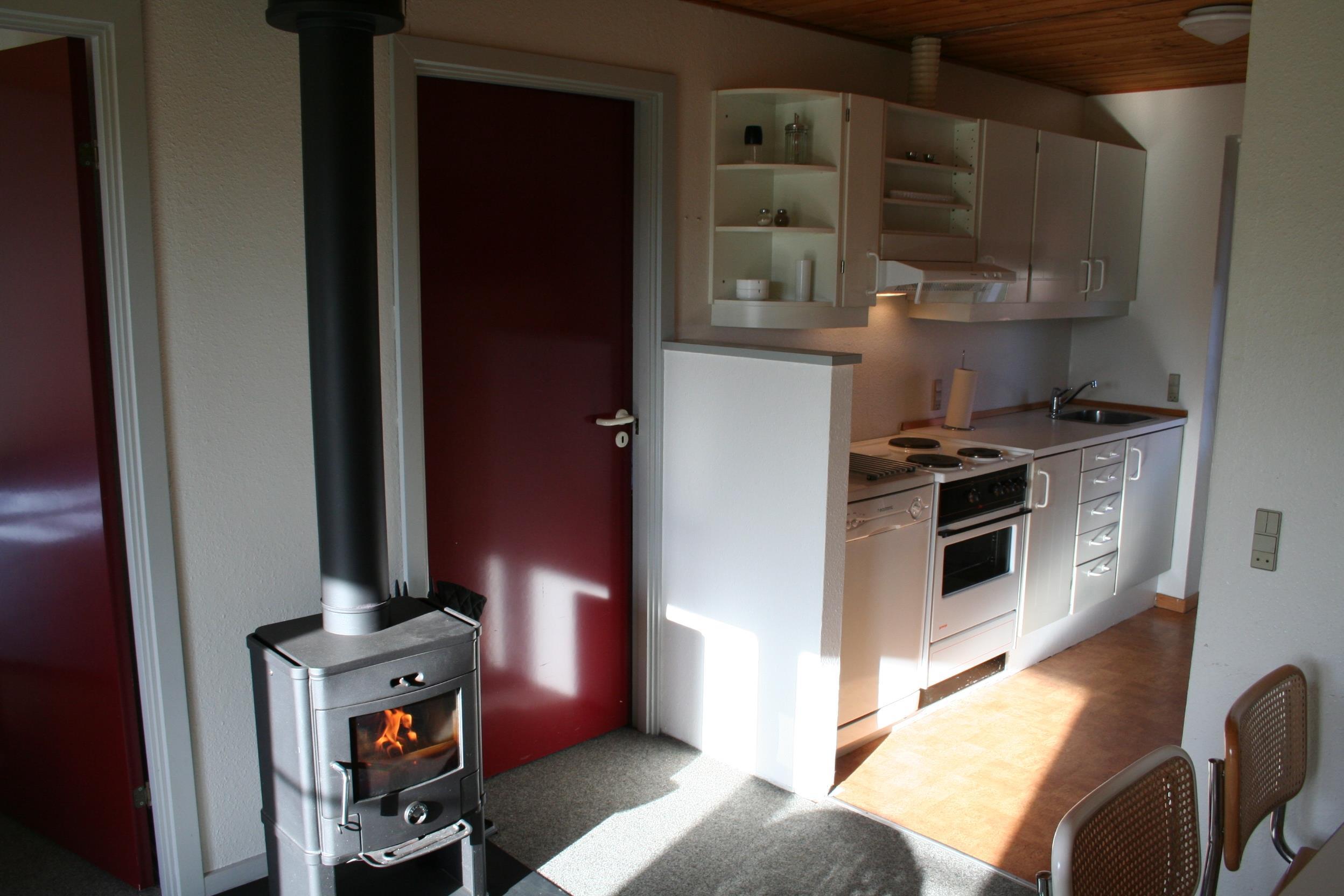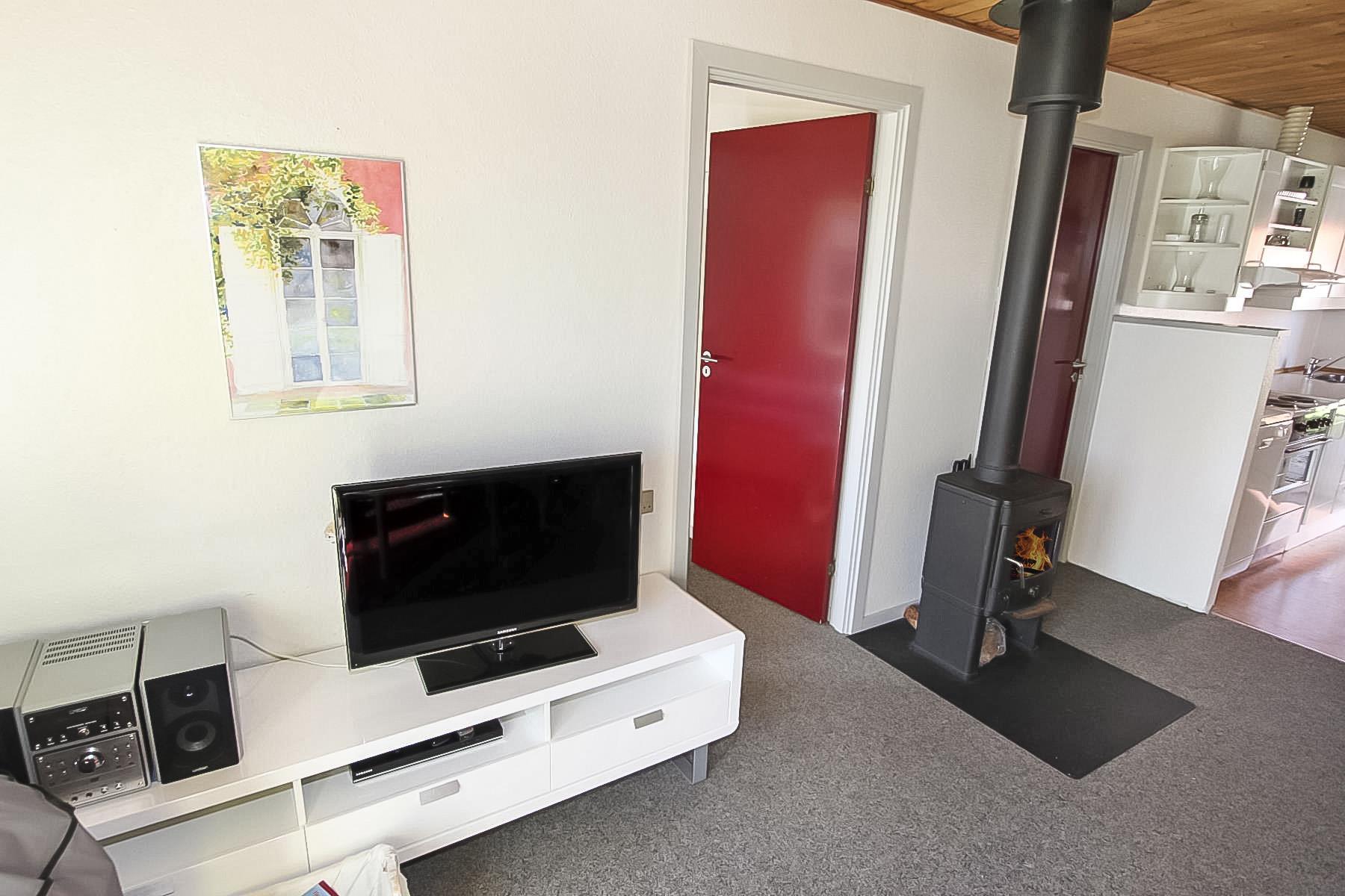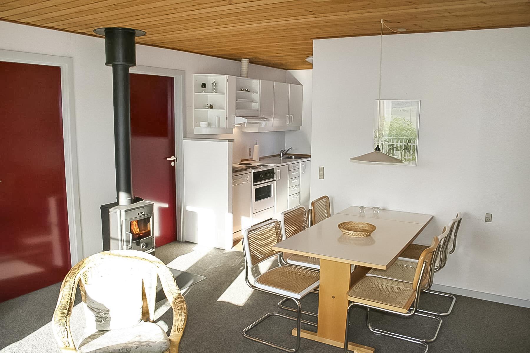 Diese Ferienwohnung ist sehr funktionell mit guter Möblierung eingerichtet. Der Wohnraum ist mit Kaminofen, TV, Stereoanlage mit CD-Player ausgestattet. Es gibt DR1 und DR2 Programme auf dem TV. Die Küche ist mit Induktions-Herd, Kühlschrank mit 25 l Gefrierfach, Mikrowelle, Geschirrspüler ausgestattet. Küche und Wohnraum sind kombiniert. Großes Badezimmer mit Toilette, Waschbecken und Dusche und Fliesenboden. 2 Schlafräume: 1DB + 1DB und 1B. Nichtraucher-Haus. 1 Haustier ist erlaubt. Kein Befahren der Rasenflächen