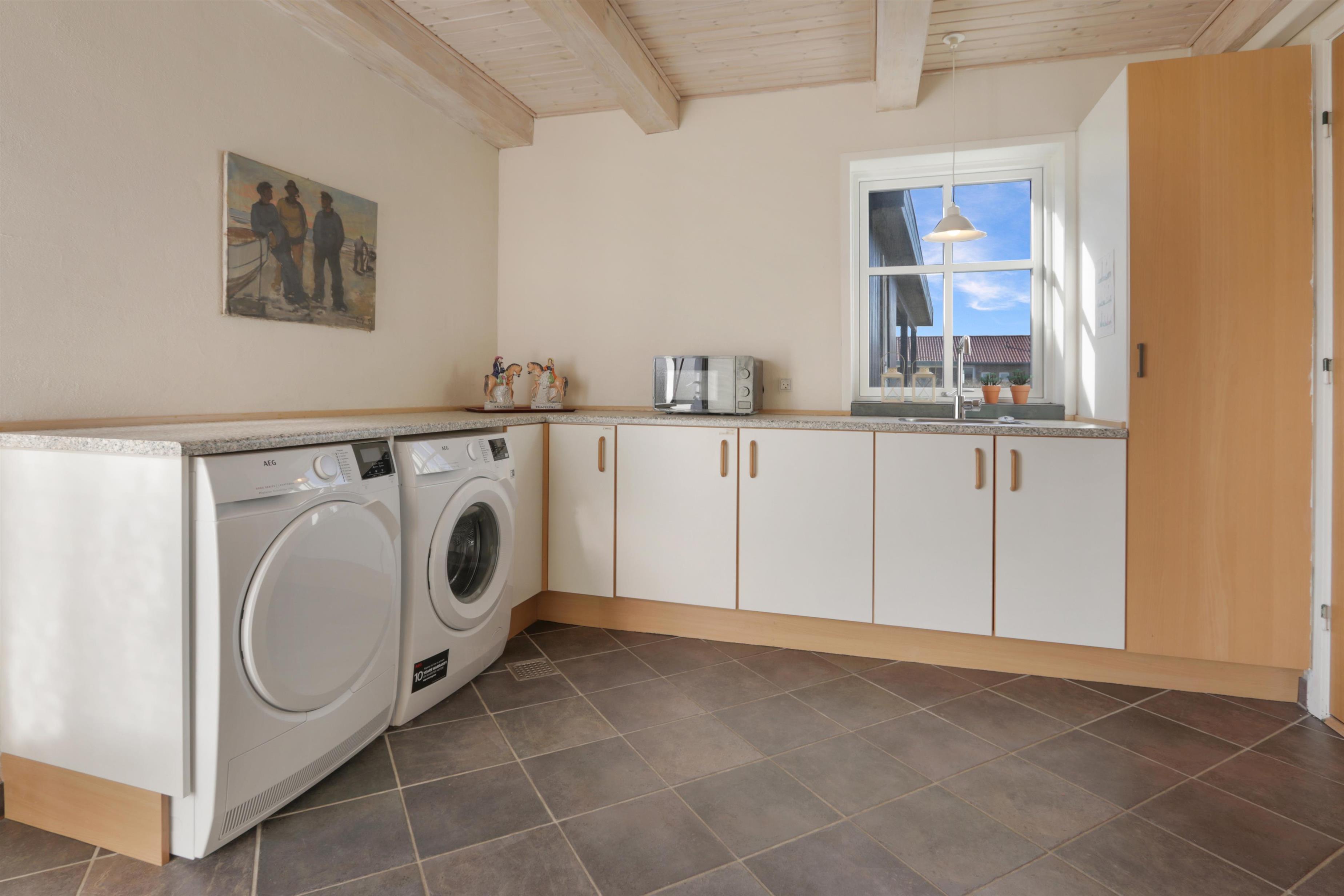 Dieses gepflegte eingezäunte Eckgrundstück ist etwa 967 qm groß. Vom Flur haben Sie Ausgang zu einer prachtvollen eingezäunten Terrasse/Sonnenhof mit Gartenmöbeln, Sonnenliegen und Grill. Perfekt für kleinere Kinder und ein Haustier. Beim Haus gibt es auch einen Carport. Ein gepflegtes und gemütliches Haus. Hier gibt es gute Möglichkeiten einen erholsamen und entspannten Urlaub in einer einmaligen Umgebung dicht an Bovbjerg Klingt, Nordsee, Ferringsee und Jens Søndergaards Museum zu haben. Innerhalb von 15-45 Minuten können Sie Aktivitäten und Einkaufsmöglichkeiten in Thyborøn oder Lemvig erreichen.