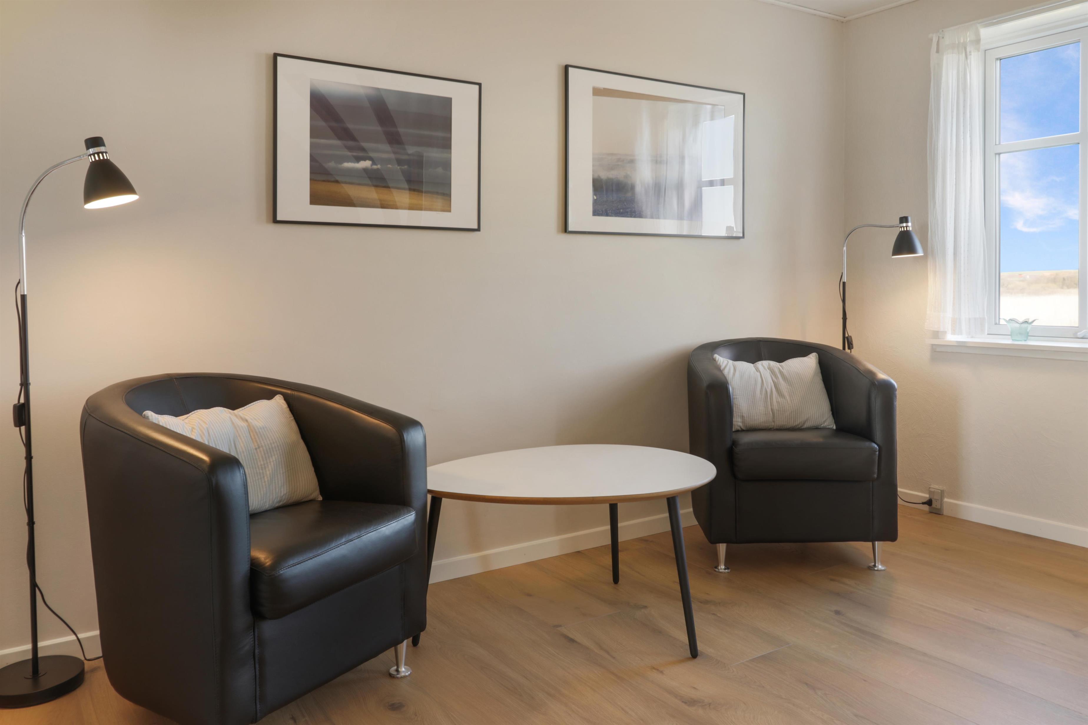 Schönes Ferienhaus über 2 Etagen auf 158 qm. Das Haus wurde etwa in 1900 erbaut. Es gibt 3 Schlafräume: 1DB, 1DB, 1DB, verteilt mit 2 Schlafräumen im Parterre mit Fußbodenheizung und 1 Schlafraum im 1. Stock. Ein schöner, neurenovertes Flur mit Waschmaschine, Trockner und extra Spüle heißt Sie willkommen. Von hier treten Sie in eine schöne renovierte Landhausküche mit Esstisch, Herd mit Cerankochfeld, Abzugshaube, Geschirrspüler, Mikrowelle und Kühlschrank mit Gefrierfach. Es gibt 2 Badezimmer im Haus. Vom Flur gibt es Zugang zu einem großen Badezimmer mit Toilette, Badewanne, Dusche und Fliesenboden mit Fußbodenheizung. Außerdem gibt es ein ganz neu renoviertes kleineres Badezimmer mit Toilette, Waschbecken, Dusche und Fußbodenheizung. Im Parterre gibt es auch ein schönes Esszimmer mit Esstisch und ein paar weichen Sitzmöbeln. Neue Luft zu Wasser Anlage macht das Haus sehr energiefreundlich und hilft eine günstigere Nebenrechnung zu bekommen. Gegenüber der Treppe am Ende des Esszimmers kommen Sie leicht in den 1. Stock. Hier gibt es außer dem Schlafzimmer auch einen schönen Wohnraum mit Couch, Smart-TV mit dänischen und deutschen Programmen und die Möglichkeit für Streaming von TV / Radio / Apps wofür Sie selber ein Abonnement haben, DVD- und CD-Spieler und einen fantastischen Blick zur Nordsee und über die Gegend. Im Wohnraum hat der Besitzer eine schöne Ecke mit 2 Stühlen eingerichtet, von dem Sie durch die großen Panoramafenstern einen wunderbaren direkten Ausblick zur Nordsee haben. Besser geht es nicht. Nichtraucher-Haus. Max. 2 Haustiere erlaubt.