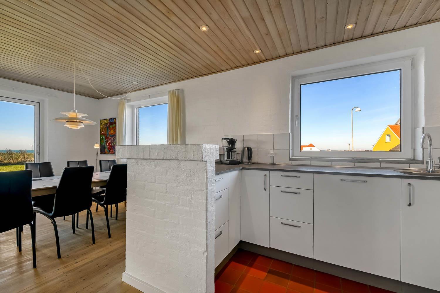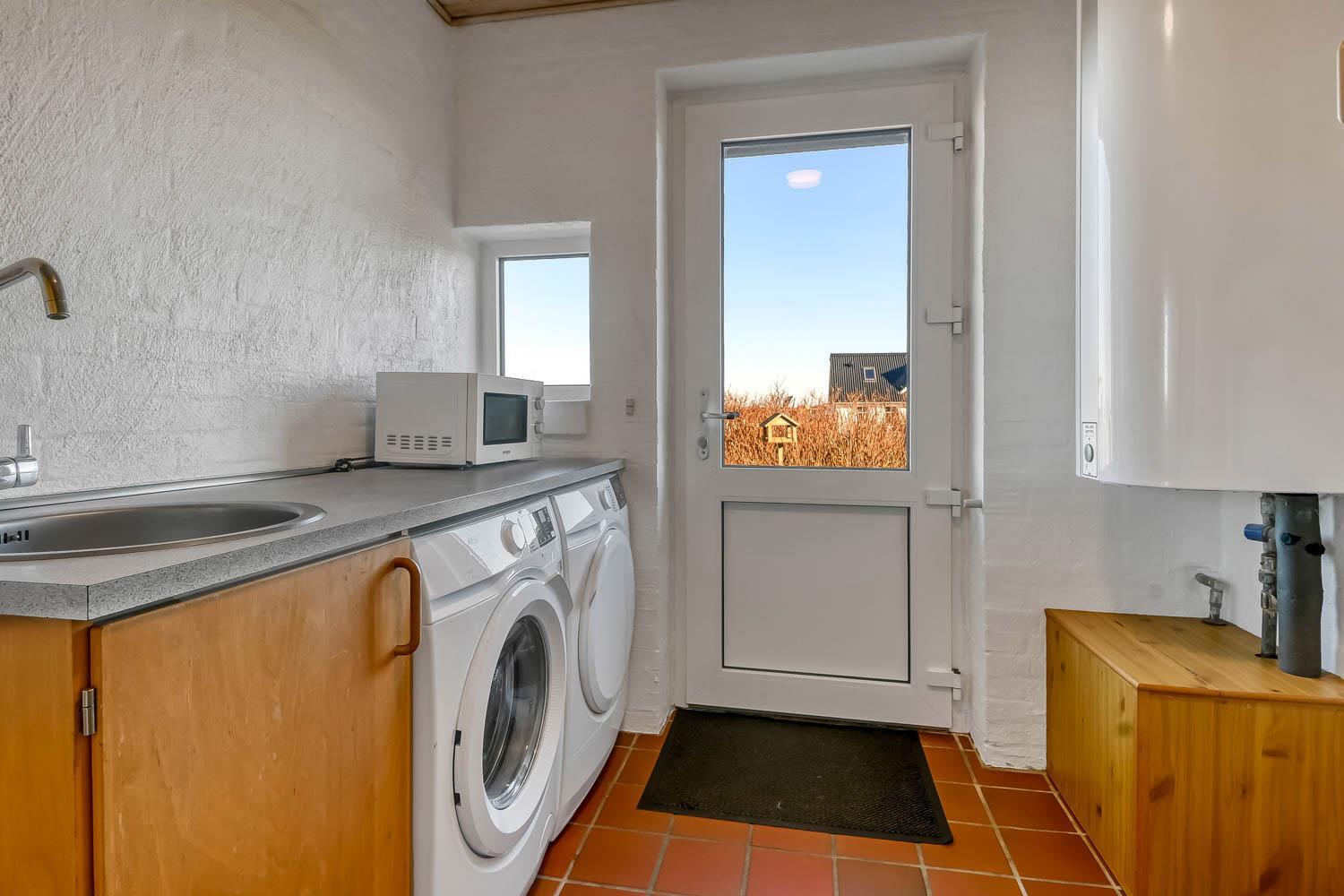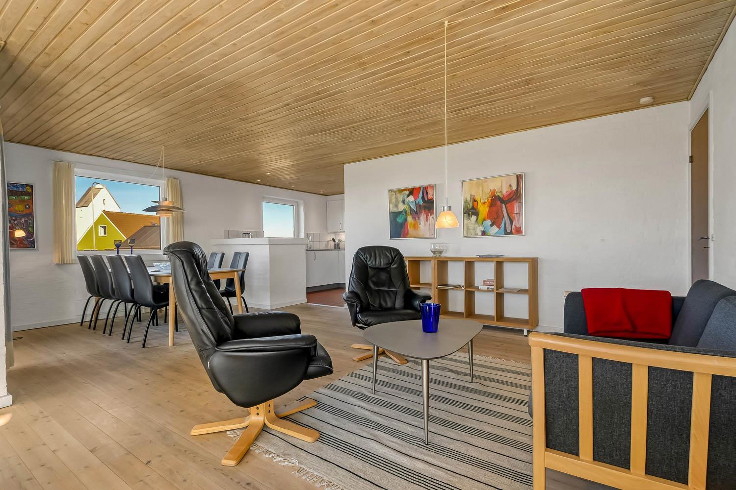 Das Grundstück ist etwa 1.400 m² gross. Es gibt eine schöne Terrasse mit Gartenmöbeln, Sonnenliegen und Grill. Von hier haben Sie einen einmaligen Blick über die Nordsee, die nur 125 m vom Haus entfernt ist. Hinter dem Haus läuft der Kiesweg zum Bovbjerg Fyr und ganz aussen beim Bovbjerg Klint gibt es einen schönen Weg direkt am Wasser, wo man laufen oder Fahrrad fahren kann. Ein fantastisches, einmaliges und neurenoviertes ganzjähriges Haus, wo Paare oder Familien bis zu 8 Personen die Möglichkeit haben, einen erholsamen Urlaub in einzigartiger Umgebung dicht an Bovbjerg Klint, der Nordsee, dem Ferring See und Jens Søndergårds Museum zu verbringen. Innerhalb von 30-45 Minuten sind mehr Aktivitäten und Einkaufsmöglichkeiten erreichbar.