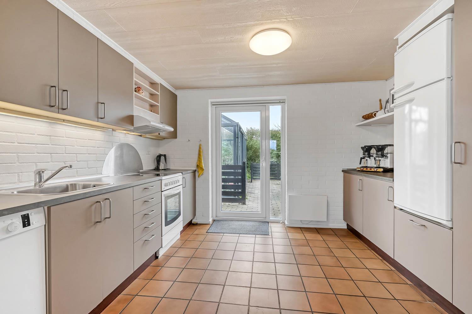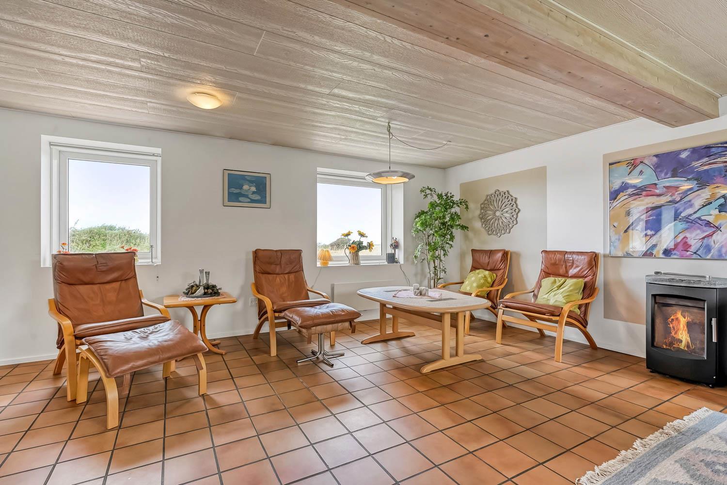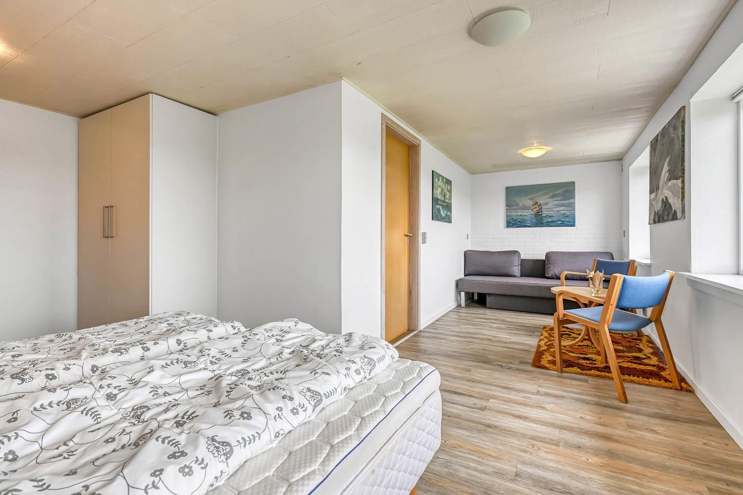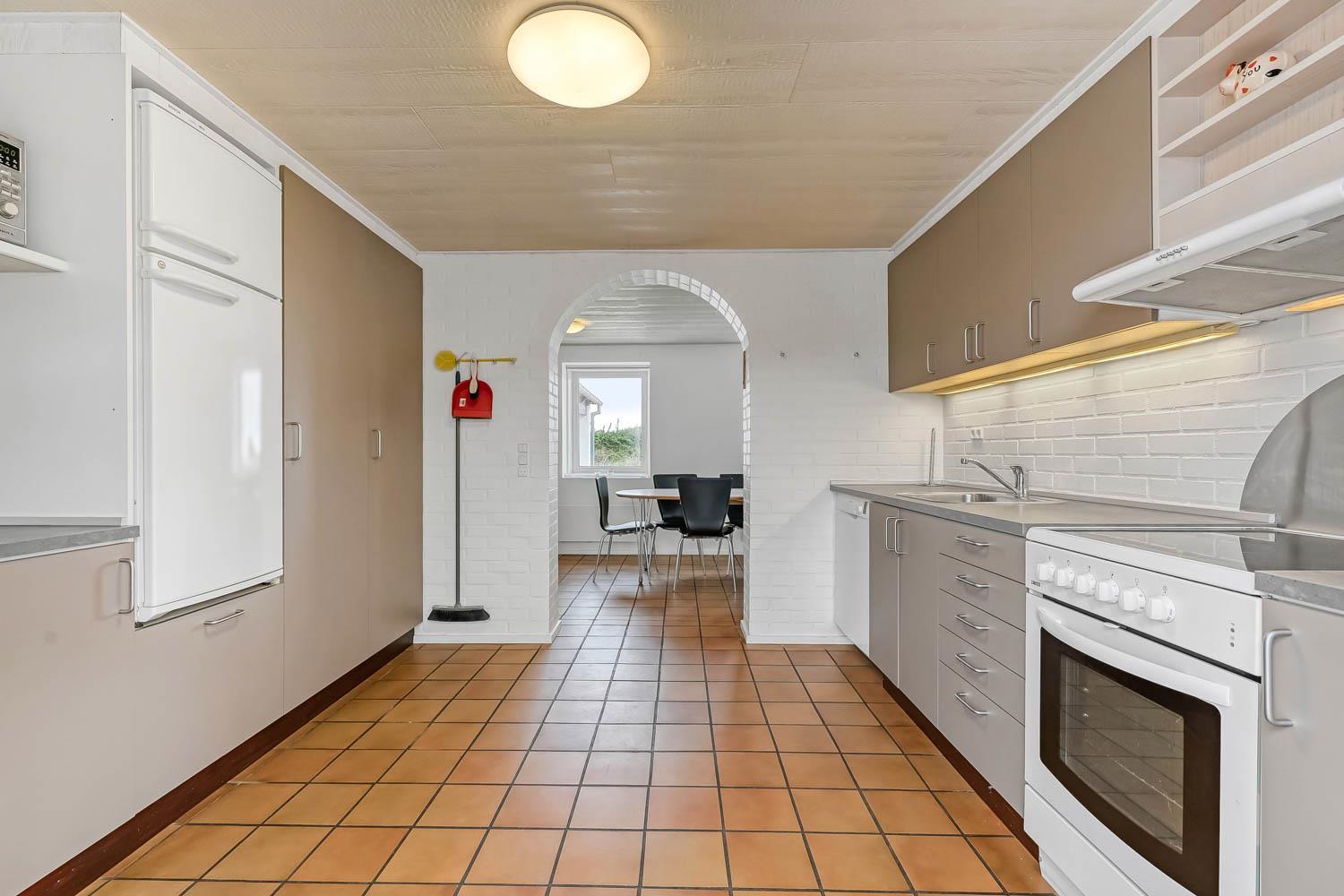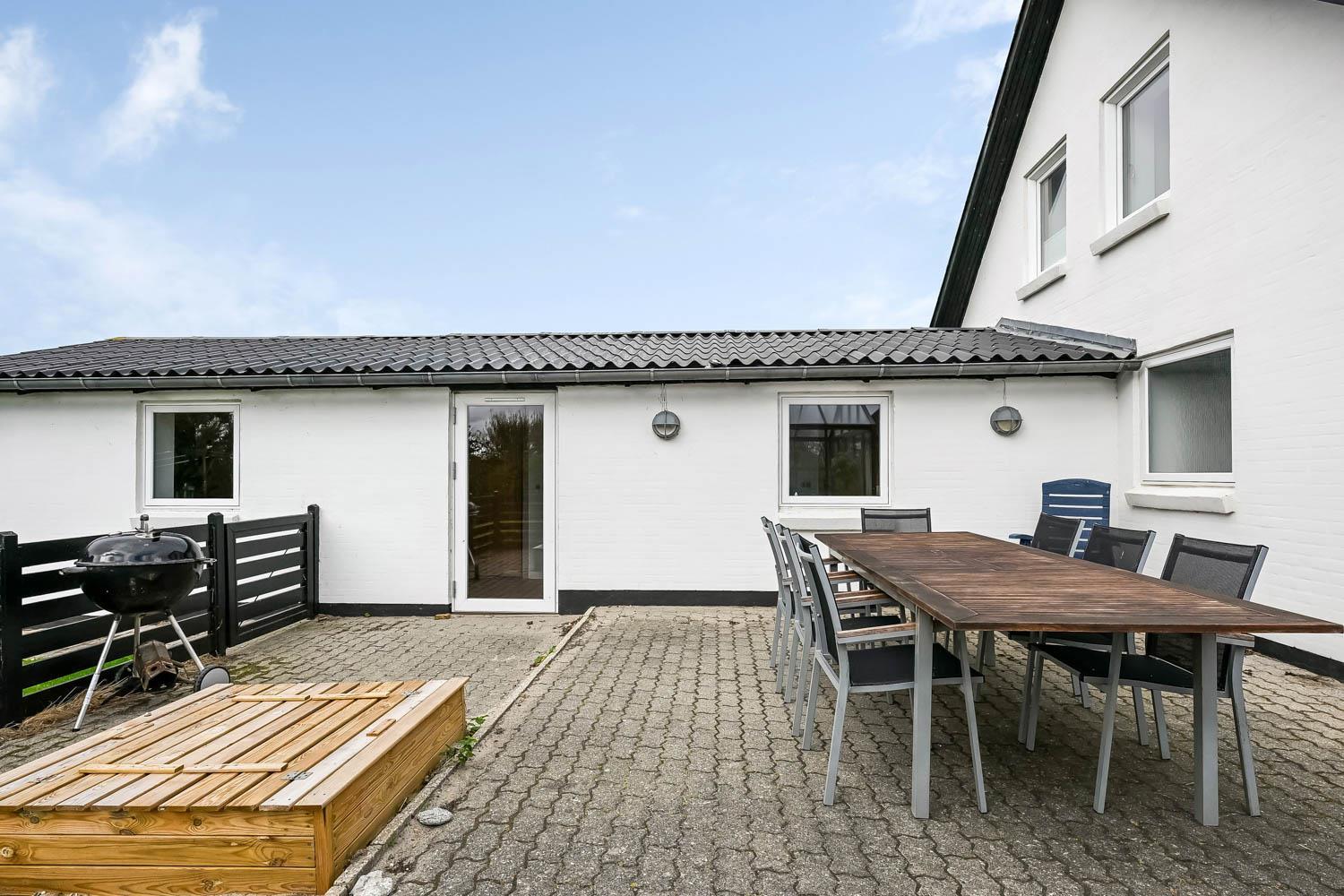 Das Haus wurde 1965 erbaut. 2015 wurde eine große Renovierung durchgeführt und dann wurde das Haus bis 2019 kontinuierlich renoviert. Betreten Sie den großen Parkplatz direkt am Haus oder parken Sie das Auto im Doppelcarport,der auch zum Grillen ideal geeignet ist. Eine große Eingangshalle mit viel Platz und Stellfläche heißt Sie herzlich willkommen. Von Eingangsberch gelangt man in die verschiedenen Wohnbereiche. Das Wohnzimmer ist geräumig und es gibt viel Platz für die ganze Familie, egal ob sie den hauseigenen Flachbildfernseher mit deutschen und dänischen Programmen nutzen oder eine DVD anschauen möchten. CDs können auch abgespielt werden und natürlich gibt es auch ein Radio. Tolle Ledermöbel und Ledersessel, die auch zu einem Sofa zusammengestellt oder separat verwendet werden können. Der Esstisch befindet sich in der Nähe der Küche, die durch eine schöne, offene, gemauerte Wand mit Rundbogen abgetrennt ist. Die gemütliche Landhausküche ist gut ausgestattet. Sie verfügt über einen Herd mit Glaskeramikkochfeld, Dunstabzugshaube, Kühlschrank mit Gefrierfach, Mikrowelle und Geschirrspüler und einen Ausgang zur Terrasse. Alles sehr gut platziert, um das Essen außen oder innen auf den Tisch zu bringen. Sowohl der Eingangsbereich, das Wohnzimmer als auch die Küche sind mit praktischen Fliesen mit Fußbodenheizung belegt. Ein Kaminofen und eine Wärmepumpe sorgen für Gemütlichkeit und Wärme. Vom Eingangsbereich gibt es einen Zugang zu einem Schlafraum - das Hauses hat insgesamt 5 Schlafräume - Zugang zum Bad mit WC, Waschbecken, Dusche und Fliesenboden mit Fußbodenheizung. Nichtraucher-Haus. Wasser- und Energiekosten betragen wöchentlich im Sommer ca. DKK 400 bis DKK 800 und im Winter ca. DKK 1800 bis DKK 2.500 je nach Wetterlage. Wenn Sie ein Elektroauto oder einen Plug-in-Hybrid haben, verfügt das Haus über eine Ladegerät, Type 2 die bis zu 11 kWh aufladen kann.