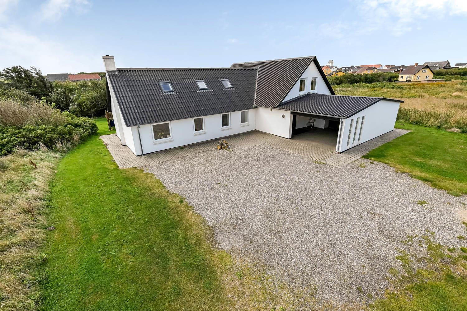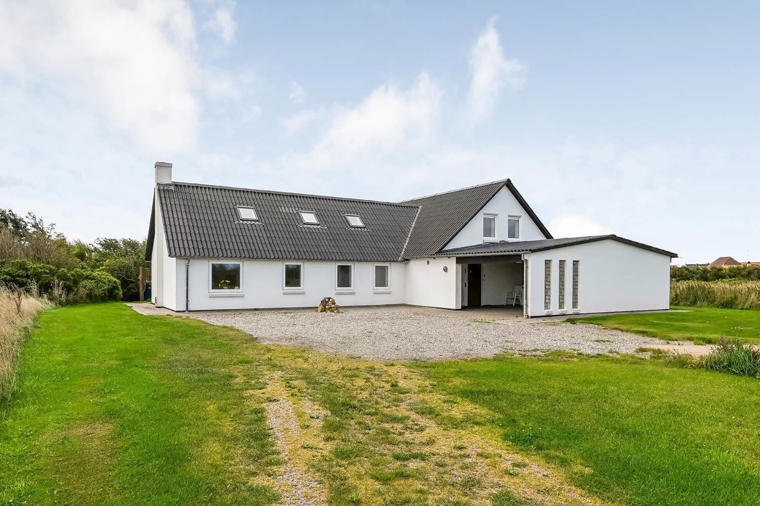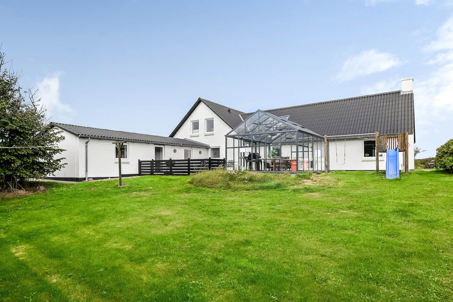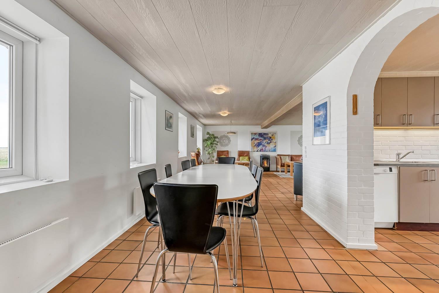 Das Haus wurde 1965 erbaut. 2015 wurde eine große Renovierung durchgeführt und dann wurde das Haus bis 2019 kontinuierlich renoviert. Betreten Sie den großen Parkplatz direkt am Haus oder parken Sie das Auto im Doppelcarport,der auch zum Grillen ideal geeignet ist. Eine große Eingangshalle mit viel Platz und Stellfläche heißt Sie herzlich willkommen. Von Eingangsberch gelangt man in die verschiedenen Wohnbereiche. Das Wohnzimmer ist geräumig und es gibt viel Platz für die ganze Familie, egal ob sie den hauseigenen Flachbildfernseher mit deutschen und dänischen Programmen nutzen oder eine DVD anschauen möchten. CDs können auch abgespielt werden und natürlich gibt es auch ein Radio. Tolle Ledermöbel und Ledersessel, die auch zu einem Sofa zusammengestellt oder separat verwendet werden können. Der Esstisch befindet sich in der Nähe der Küche, die durch eine schöne, offene, gemauerte Wand mit Rundbogen abgetrennt ist. Die gemütliche Landhausküche ist gut ausgestattet. Sie verfügt über einen Herd mit Glaskeramikkochfeld, Dunstabzugshaube, Kühlschrank mit Gefrierfach, Mikrowelle und Geschirrspüler und einen Ausgang zur Terrasse. Alles sehr gut platziert, um das Essen außen oder innen auf den Tisch zu bringen. Sowohl der Eingangsbereich, das Wohnzimmer als auch die Küche sind mit praktischen Fliesen mit Fußbodenheizung belegt. Ein Kaminofen und eine Wärmepumpe sorgen für Gemütlichkeit und Wärme. Vom Eingangsbereich gibt es einen Zugang zu einem Schlafraum - das Hauses hat insgesamt 5 Schlafräume - Zugang zum Bad mit WC, Waschbecken, Dusche und Fliesenboden mit Fußbodenheizung. Nichtraucher-Haus. Wasser- und Energiekosten betragen wöchentlich im Sommer ca. DKK 400 bis DKK 800 und im Winter ca. DKK 1800 bis DKK 2.500 je nach Wetterlage. Wenn Sie ein Elektroauto oder einen Plug-in-Hybrid haben, verfügt das Haus über eine Ladegerät, Type 2 die bis zu 11 kWh aufladen kann.