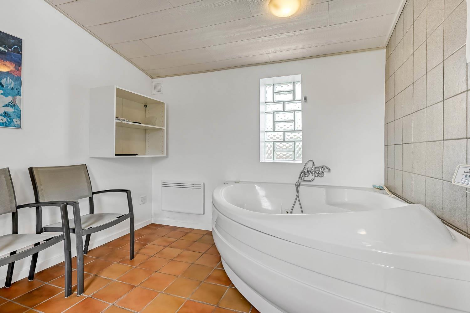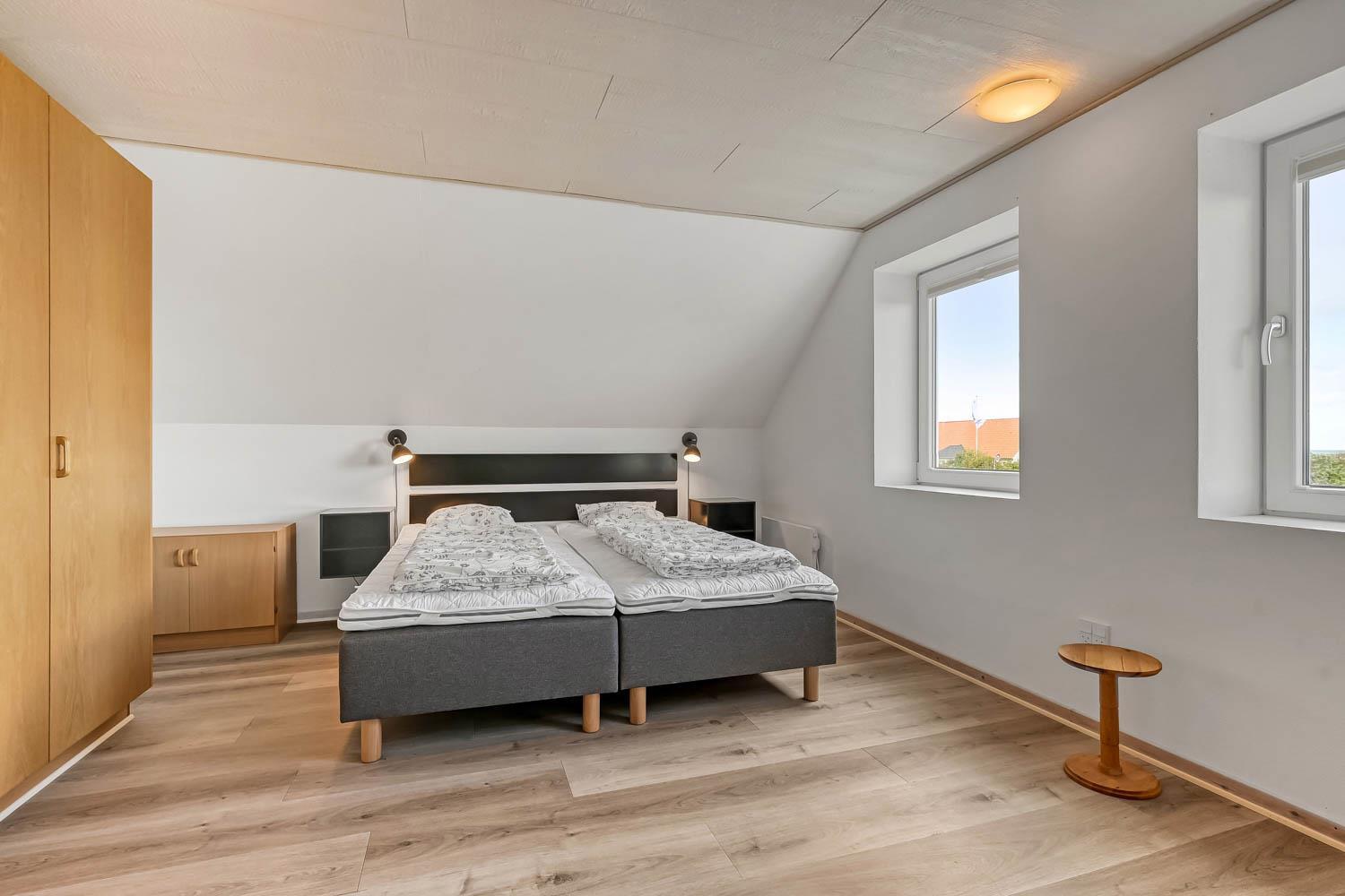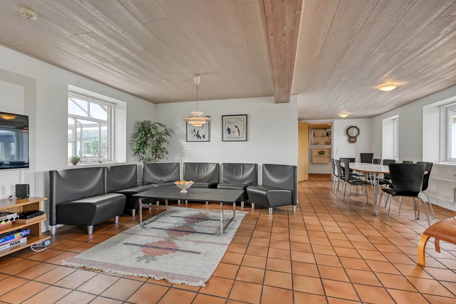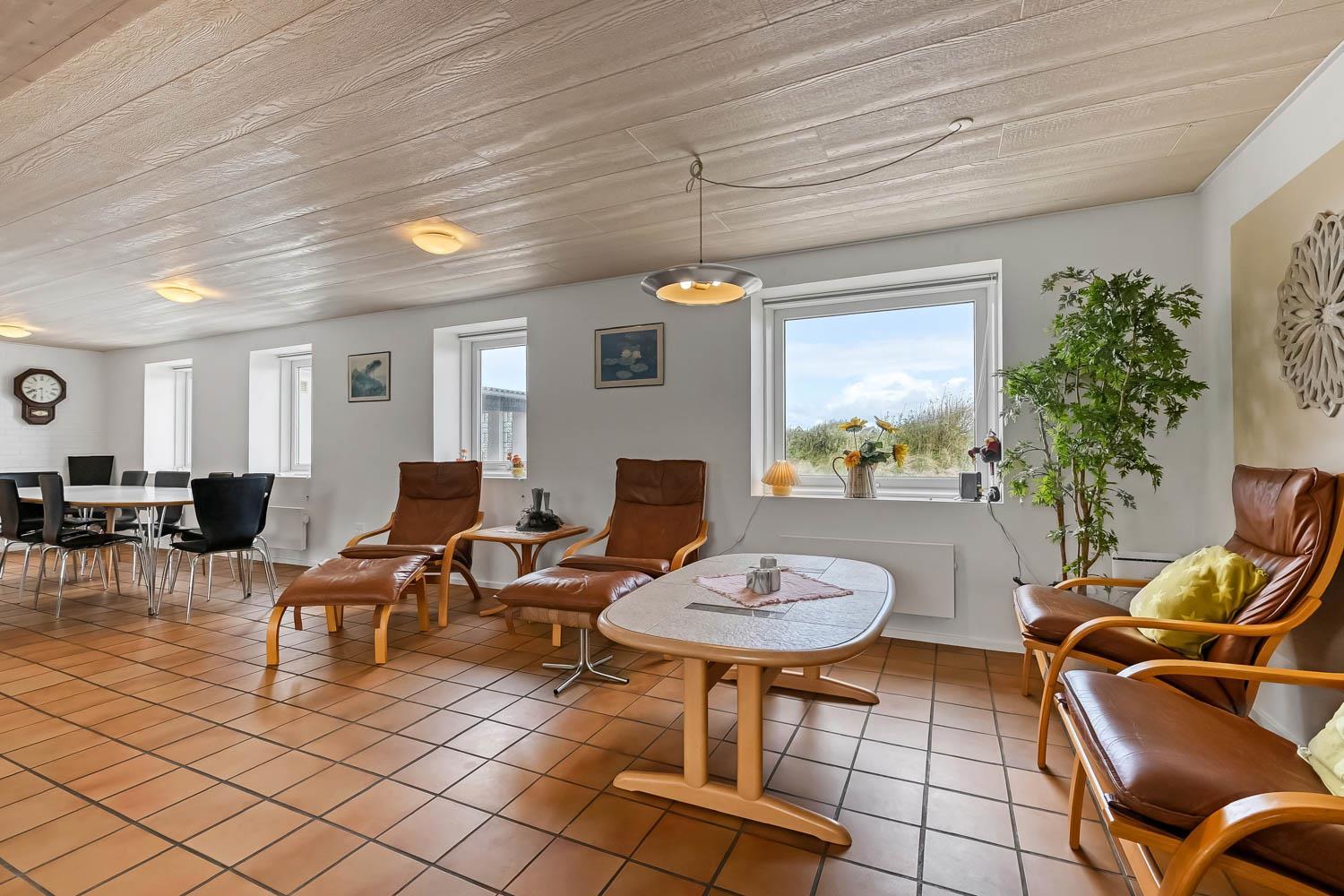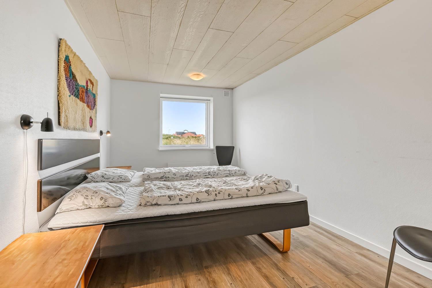Das Haus wurde 1965 erbaut. 2015 wurde eine große Renovierung durchgeführt und dann wurde das Haus bis 2019 kontinuierlich renoviert. Betreten Sie den großen Parkplatz direkt am Haus oder parken Sie das Auto im Doppelcarport,der auch zum Grillen ideal geeignet ist. Eine große Eingangshalle mit viel Platz und Stellfläche heißt Sie herzlich willkommen. Von Eingangsberch gelangt man in die verschiedenen Wohnbereiche. Das Wohnzimmer ist geräumig und es gibt viel Platz für die ganze Familie, egal ob sie den hauseigenen Flachbildfernseher mit deutschen und dänischen Programmen nutzen oder eine DVD anschauen möchten. CDs können auch abgespielt werden und natürlich gibt es auch ein Radio. Tolle Ledermöbel und Ledersessel, die auch zu einem Sofa zusammengestellt oder separat verwendet werden können. Der Esstisch befindet sich in der Nähe der Küche, die durch eine schöne, offene, gemauerte Wand mit Rundbogen abgetrennt ist. Die gemütliche Landhausküche ist gut ausgestattet. Sie verfügt über einen Herd mit Glaskeramikkochfeld, Dunstabzugshaube, Kühlschrank mit Gefrierfach, Mikrowelle und Geschirrspüler und einen Ausgang zur Terrasse. Alles sehr gut platziert, um das Essen außen oder innen auf den Tisch zu bringen. Sowohl der Eingangsbereich, das Wohnzimmer als auch die Küche sind mit praktischen Fliesen mit Fußbodenheizung belegt. Ein Kaminofen und eine Wärmepumpe sorgen für Gemütlichkeit und Wärme. Vom Eingangsbereich gibt es einen Zugang zu einem Schlafraum - das Hauses hat insgesamt 5 Schlafräume - Zugang zum Bad mit WC, Waschbecken, Dusche und Fliesenboden mit Fußbodenheizung. Nichtraucher-Haus. Wasser- und Energiekosten betragen wöchentlich im Sommer ca. DKK 400 bis DKK 800 und im Winter ca. DKK 1800 bis DKK 2.500 je nach Wetterlage. Wenn Sie ein Elektroauto oder einen Plug-in-Hybrid haben, verfügt das Haus über eine Ladegerät, Type 2 die bis zu 11 kWh aufladen kann.