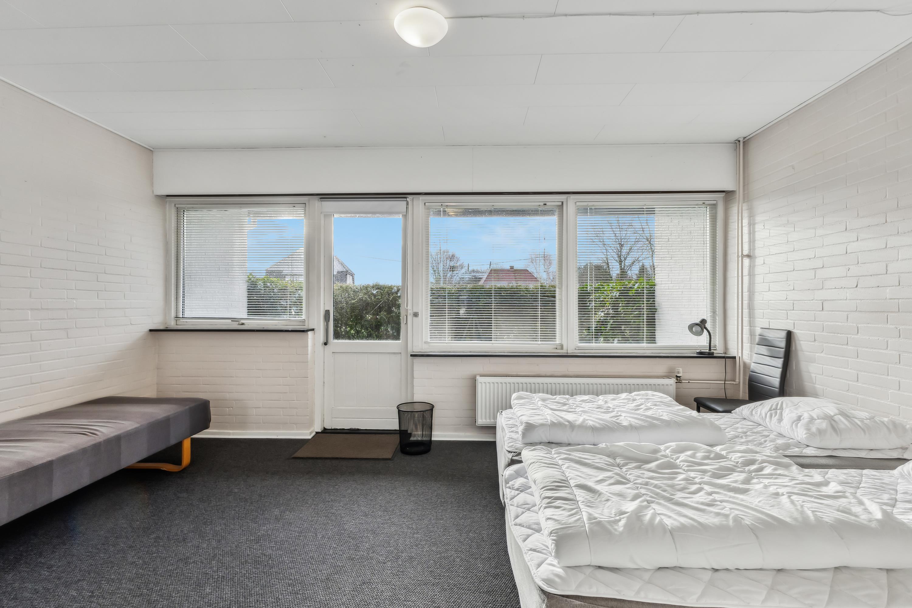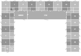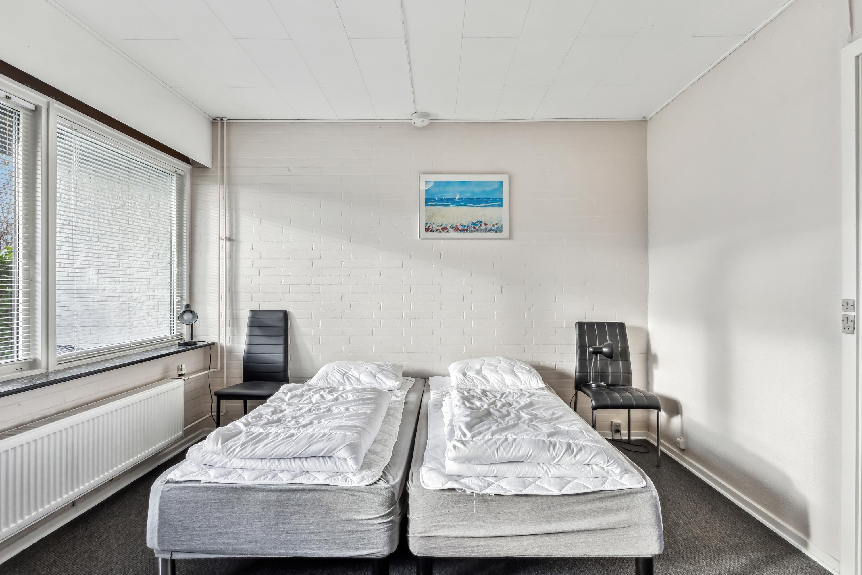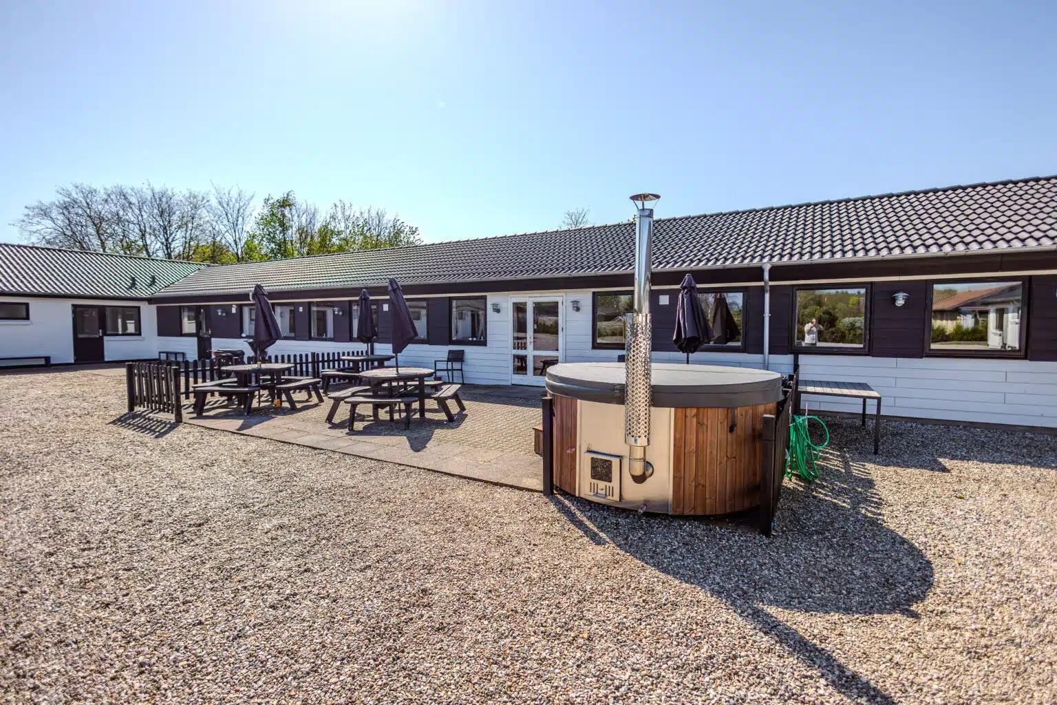 Das Haus ist ein dreiflügeliger Bau, bei dem alle Zimmer einen eigenen Ausgang haben. Es gibt 19 Doppelzimmer mit Bad und WC, und es besteht die Möglichkeit insgesamt für 80 Personen zu betten. Der angegebene Preis gilt für 40 Personen. Der Preis für zusätzliche Gäste beträgt 150 DKK pro Person. Es ist möglich, Bettwäsche/Handtücher für 75 DKK pro Person zu mieten.