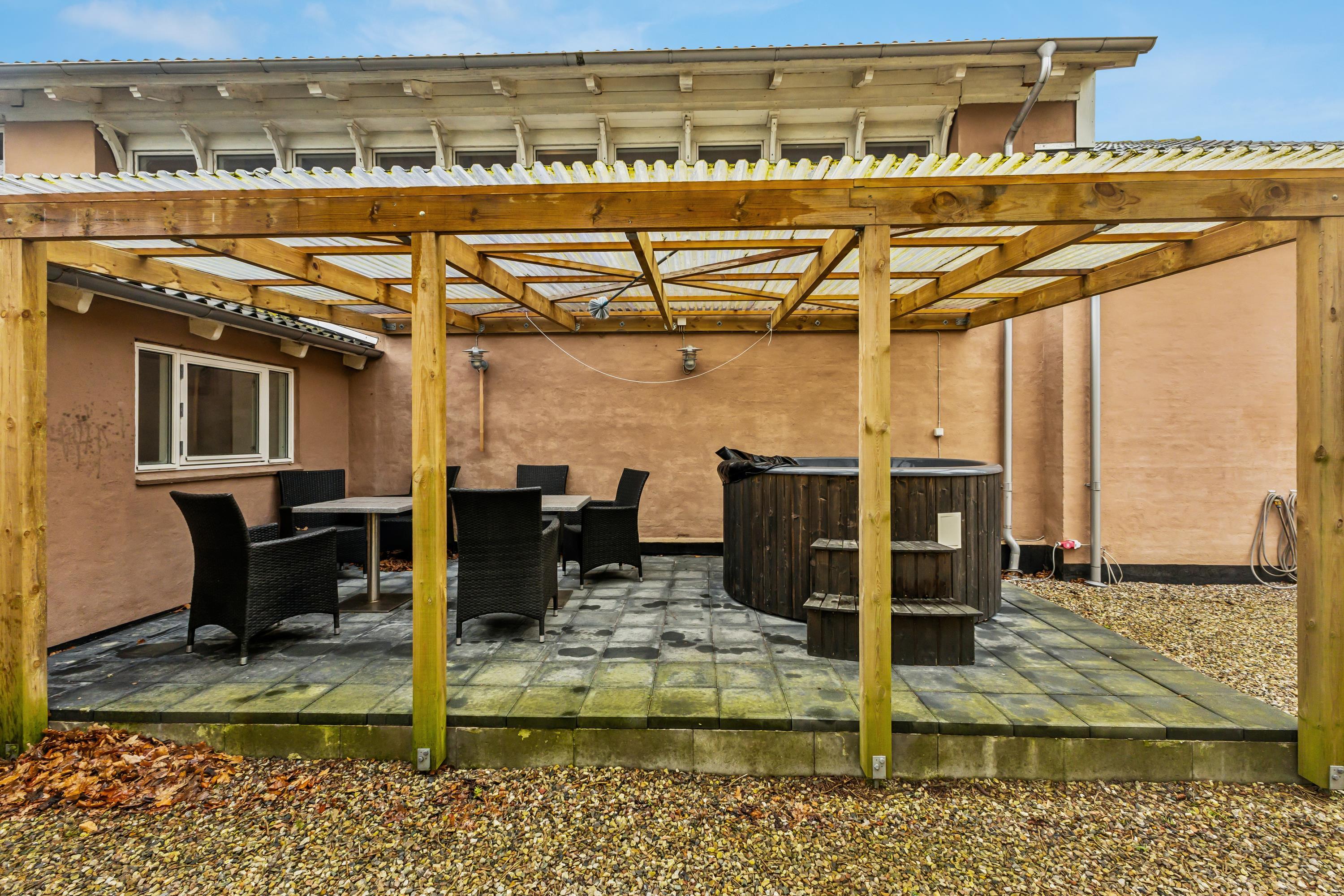 Hier ist Platz für Gemeinschaft und Gemütlichkeit und hier gibt es ein Wildnisbad auf der überdachten Terrasse.