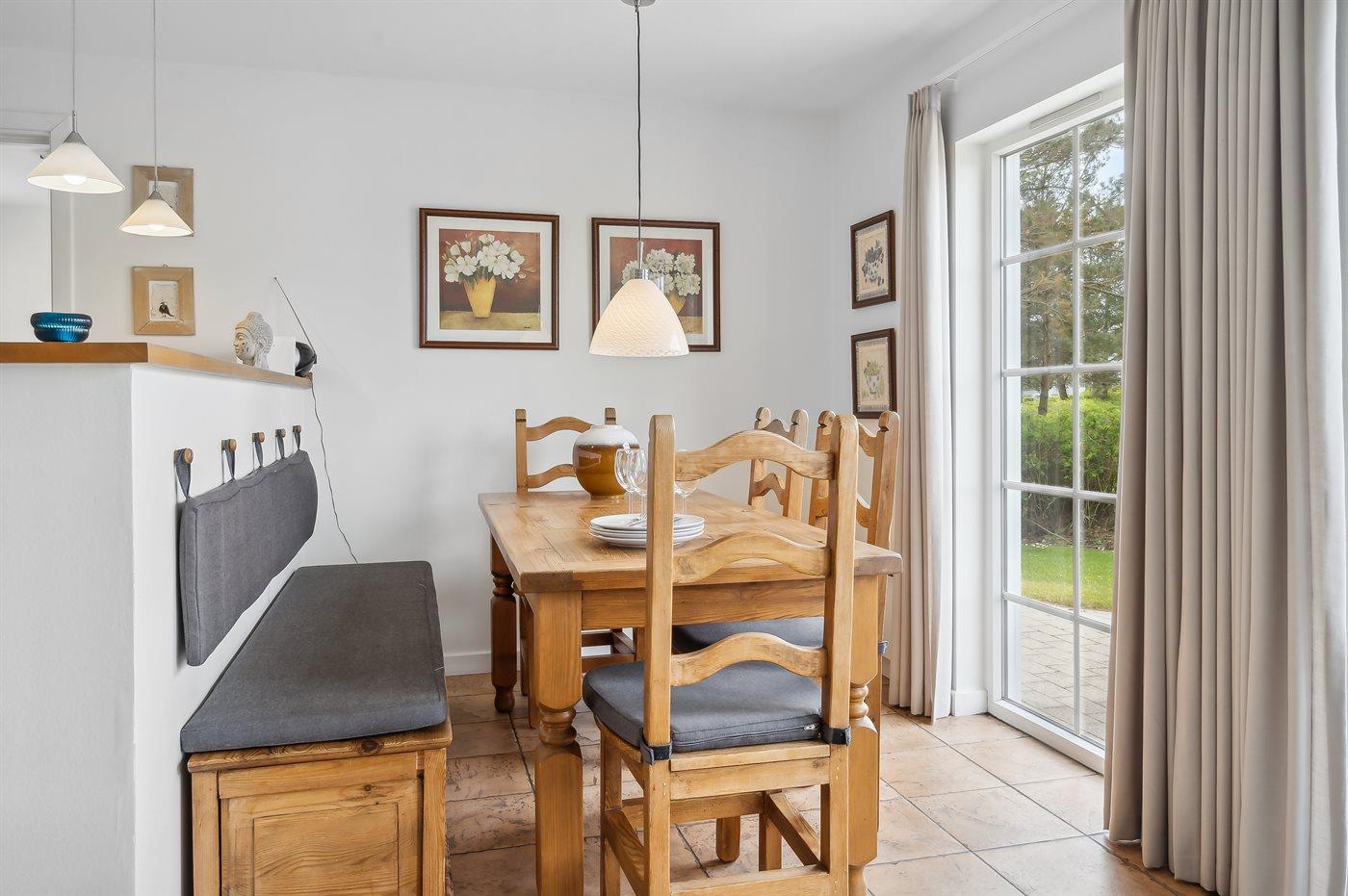Das Ferienhaus eignet sich für 6 Personen. Die Ferienunterkunft hat eine Wohnfläche von 102 m² und wurde 2003 gebaut. Haustiere dürfen nicht mitgebracht werden. Die Ferienunterkunft ist mit Waschmaschine ausgestattet. Wäschetrockner. Tiefkühlmöglichkeit mit 40 Liter Nutzinhalt. Es gibt außerdem einen Kaminofen.