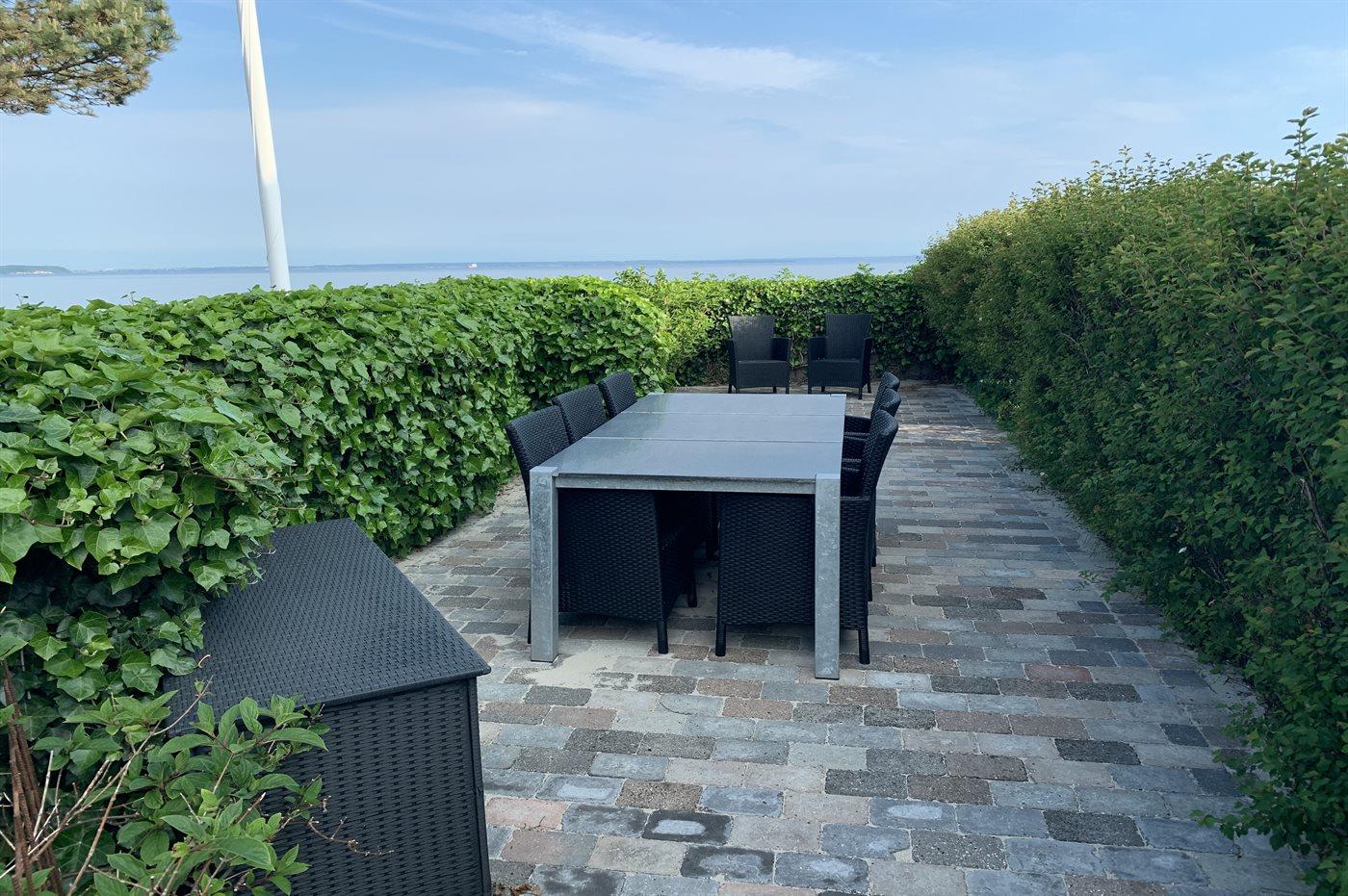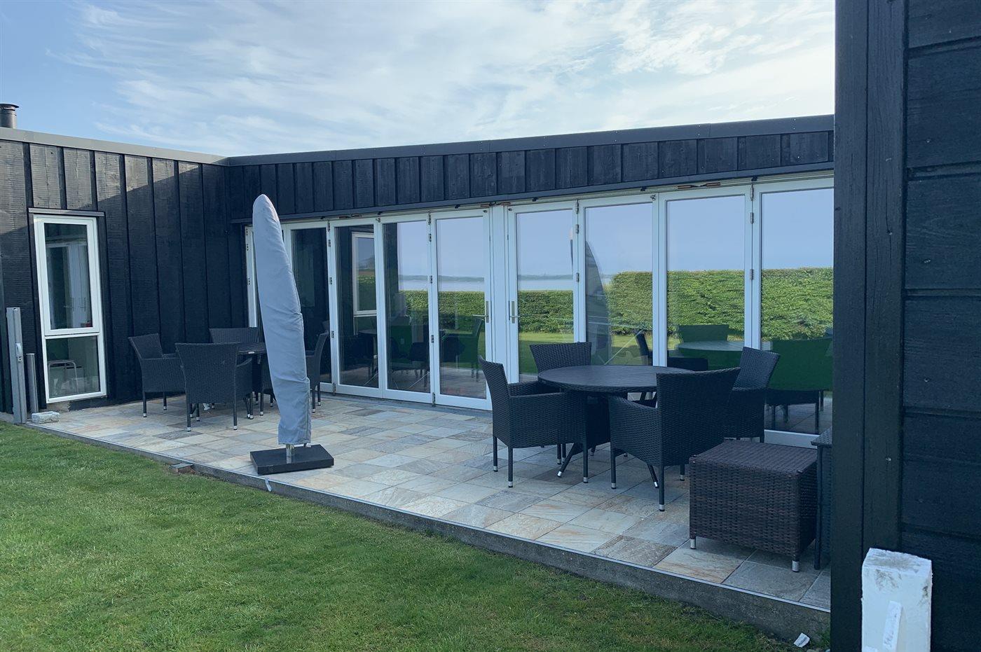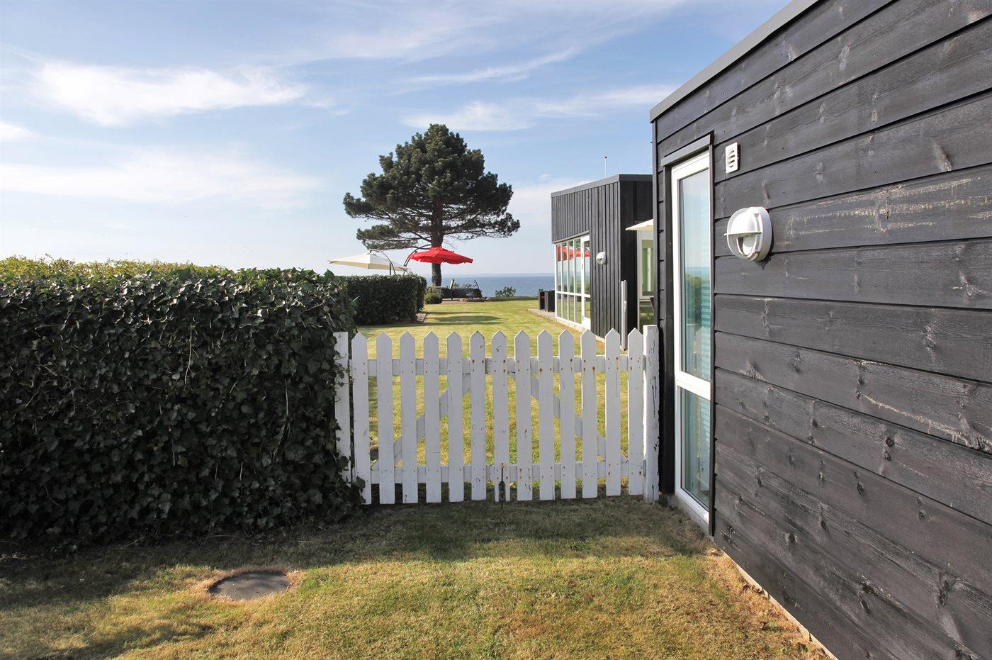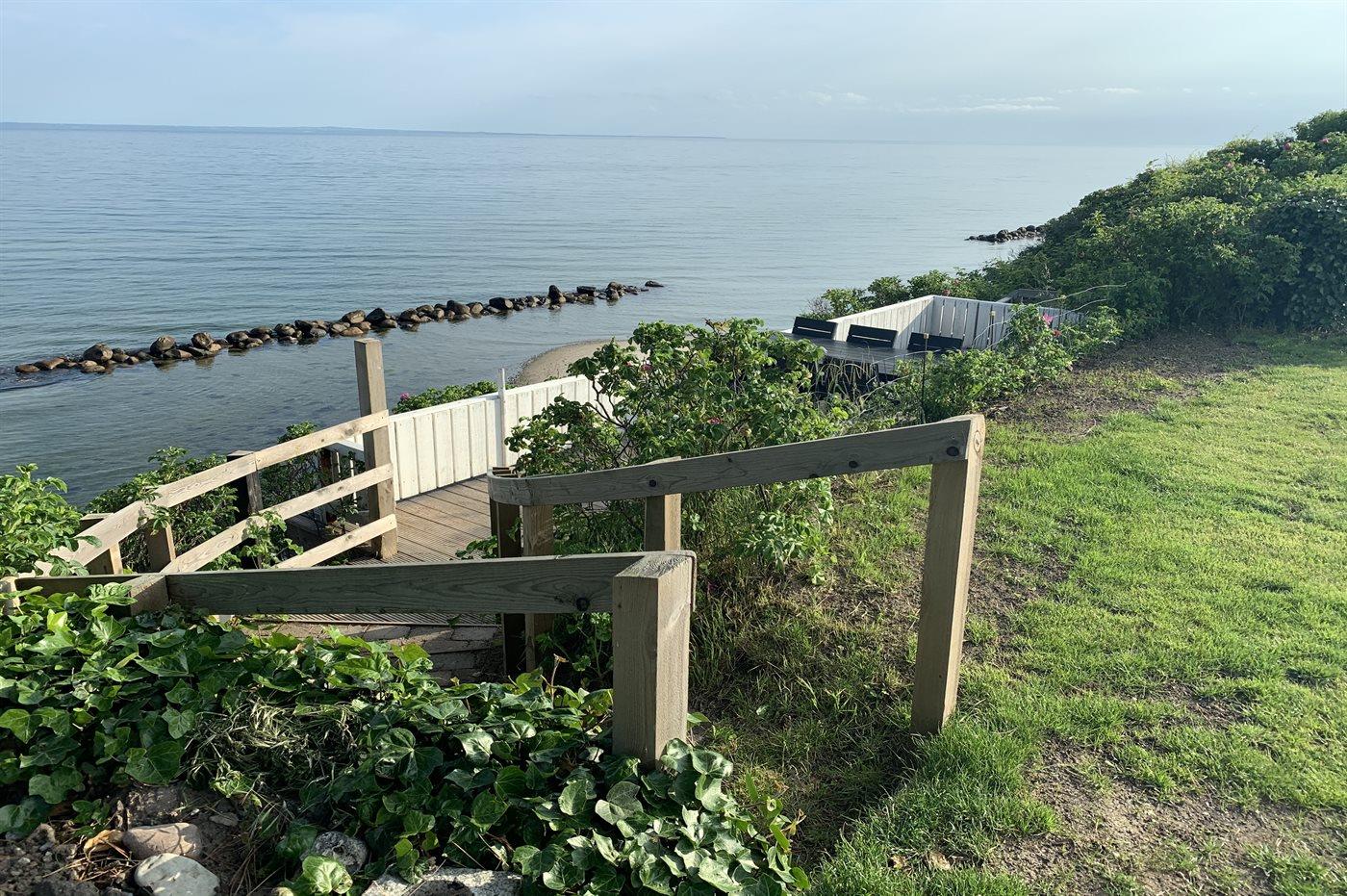 Dieses einmalige Ferienhaus mit Meeresblick liegt auf einem schönen, eingezäunten Grundstück - in erster Reihe zum Meer hinaus. Zum Haus gehören mehrere Terrassen mit Gartenmöbeln.