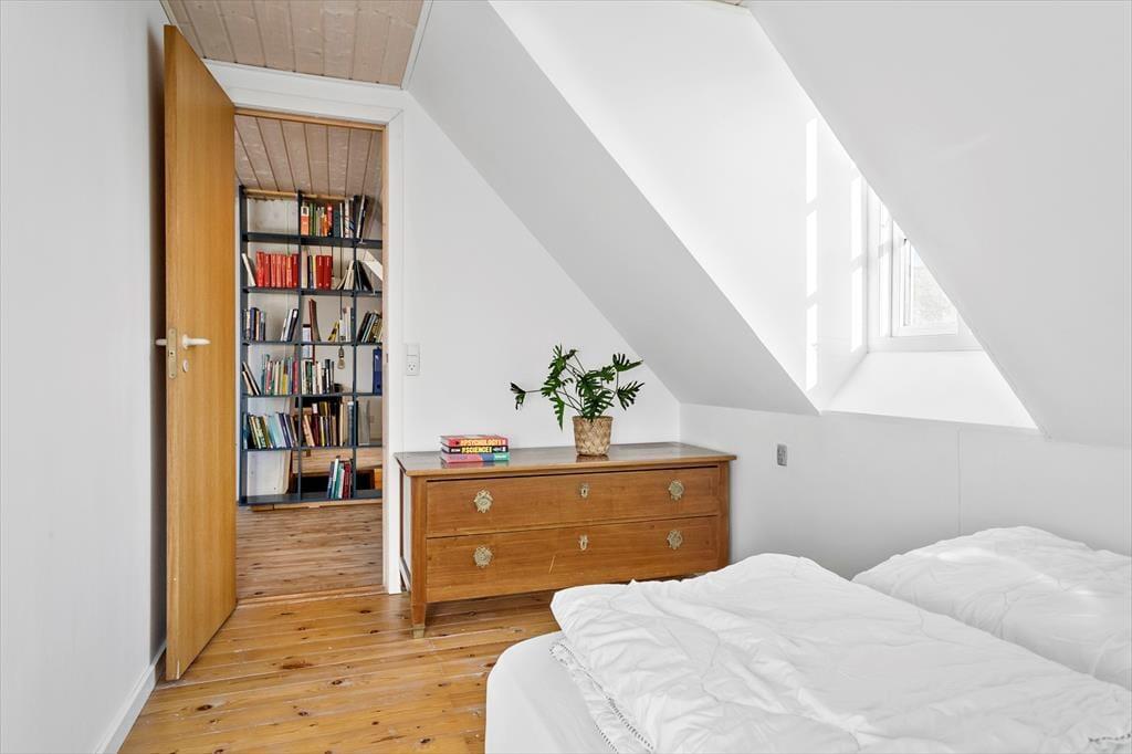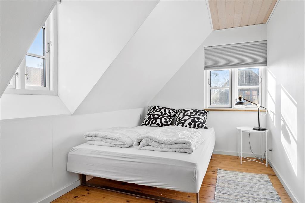 Die beiden Schlafzimmer im Obergeschoss sind jeweils mit einem Doppelbett 140x200 cm ausgestattet. Die Räume bestechen mit gemütlichen Dachschrägen und Fenstern, durch die Sie in den Garten und in Richtung Straße blicken.
