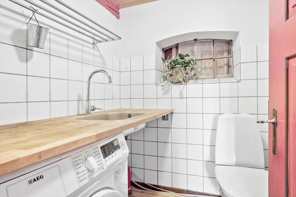 Zwei Toiletten stehen zur Verfügung. Eine ist im größeren Badezimmer platziert, in dem Sie auf eine große Dusche und einen Zugang zum Garten treffen. Die Zweite befindet sich im kleineren Badezimmer, das über eine Waschmaschine verfügt.