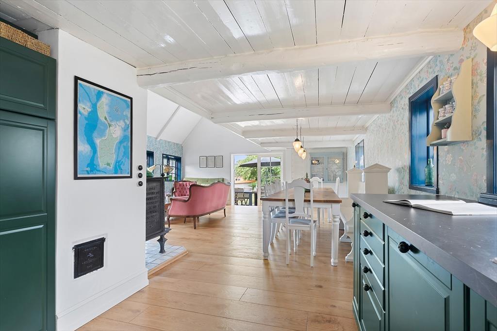 Treten Sie ein in dieses charmante Dorfhaus, in dem Gemütlichkeit und Wohlbefinden Hand in Hand gehen. Das Haus strahlt die ganz besondere Idylle der Insel aus und bietet Ihnen Helligkeit, Großzügigkeit und authentische Dorfatmosphäre – nur einen Steinwurf vom Brundby Hotel entfernt, das das ganze Jahr über stimmungsvolle Konzerte veranstaltet.