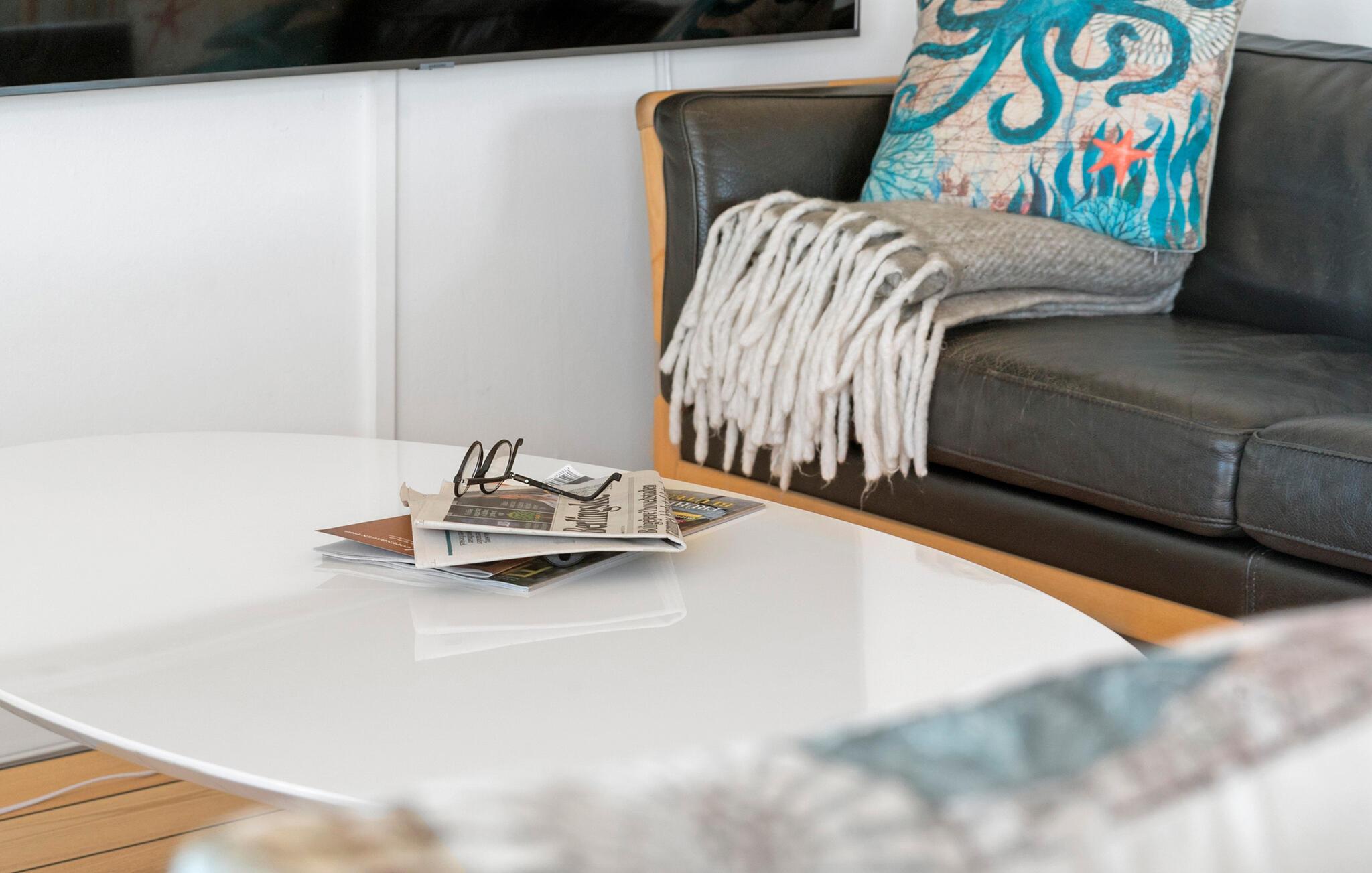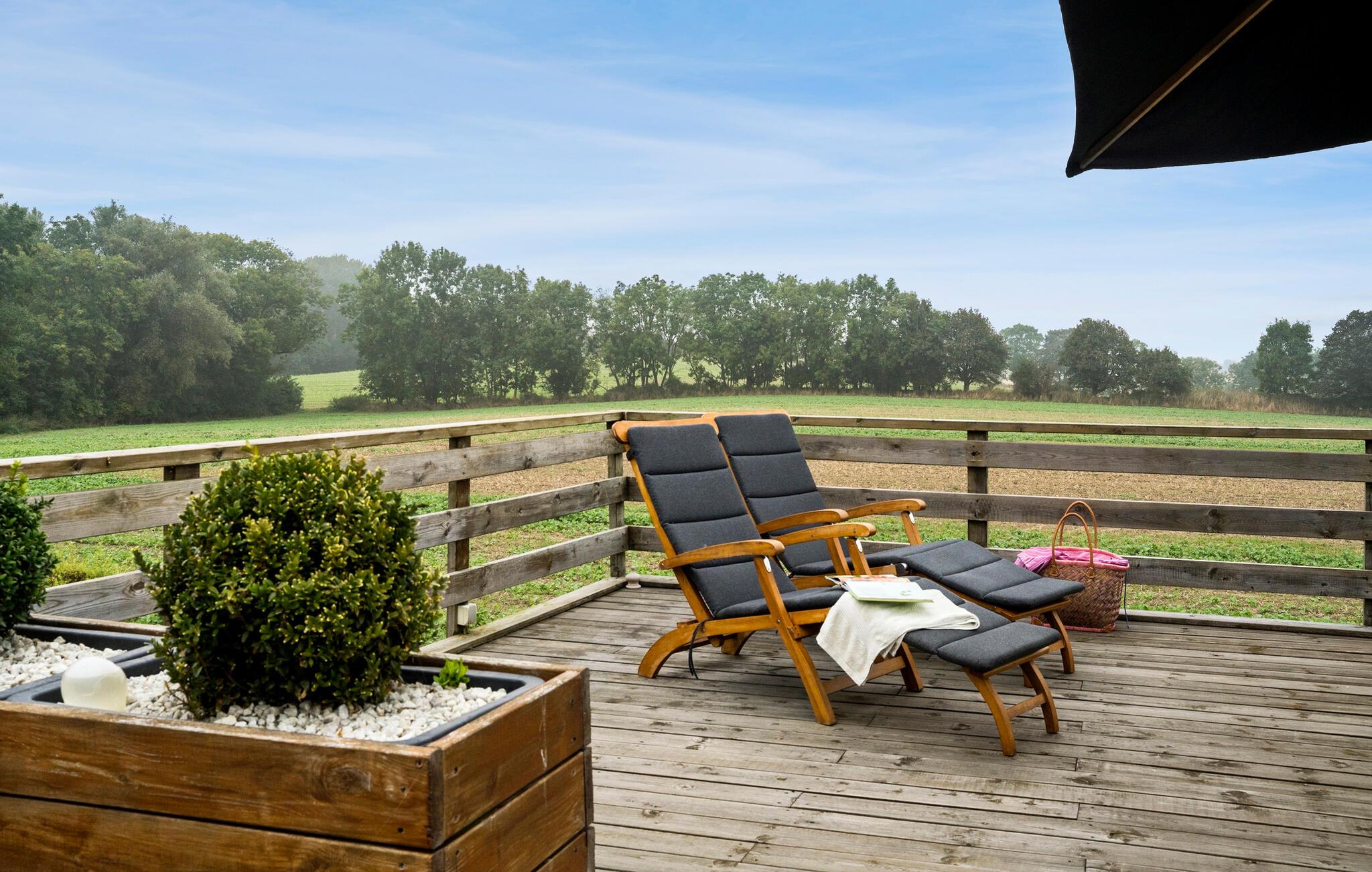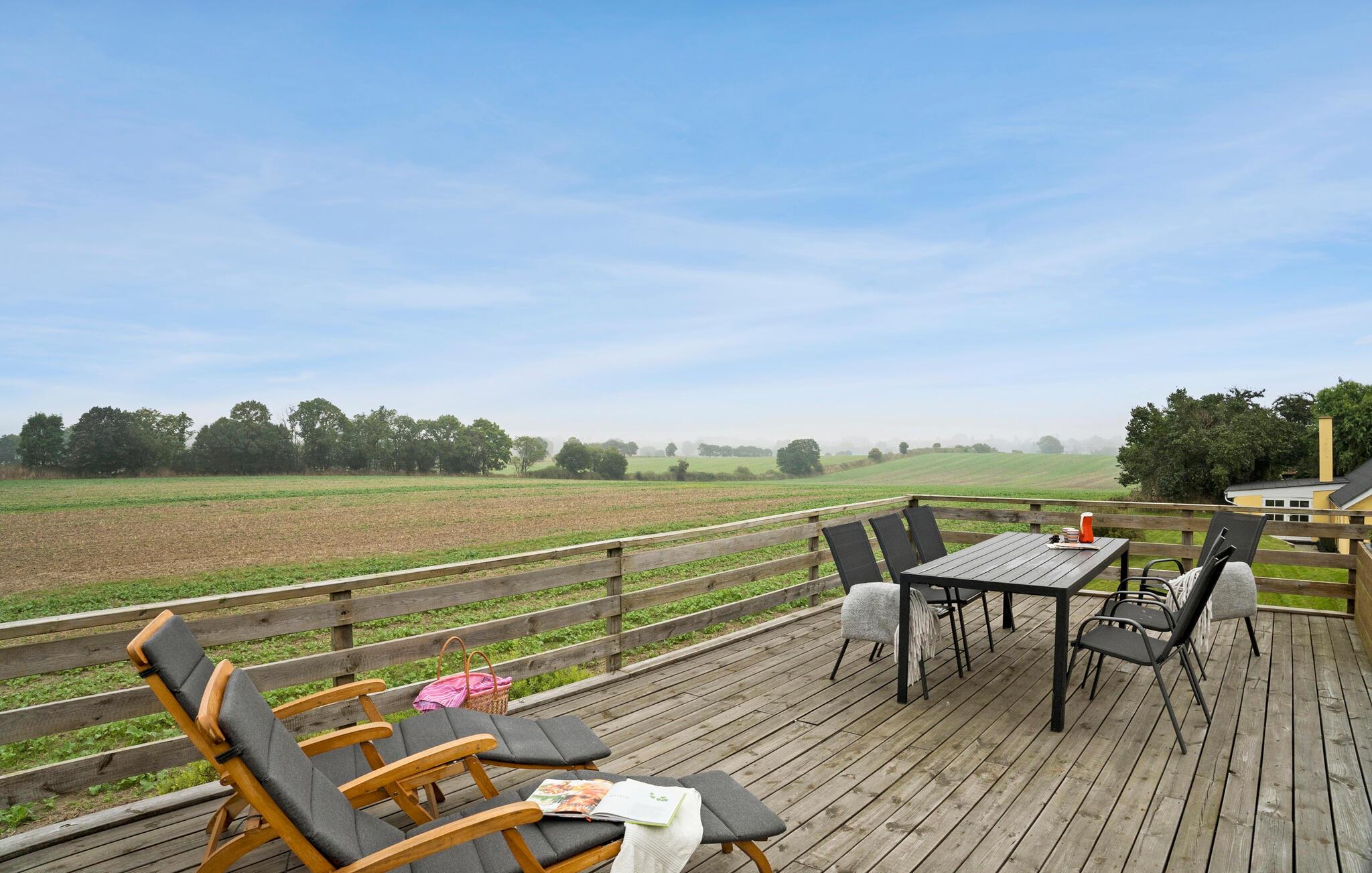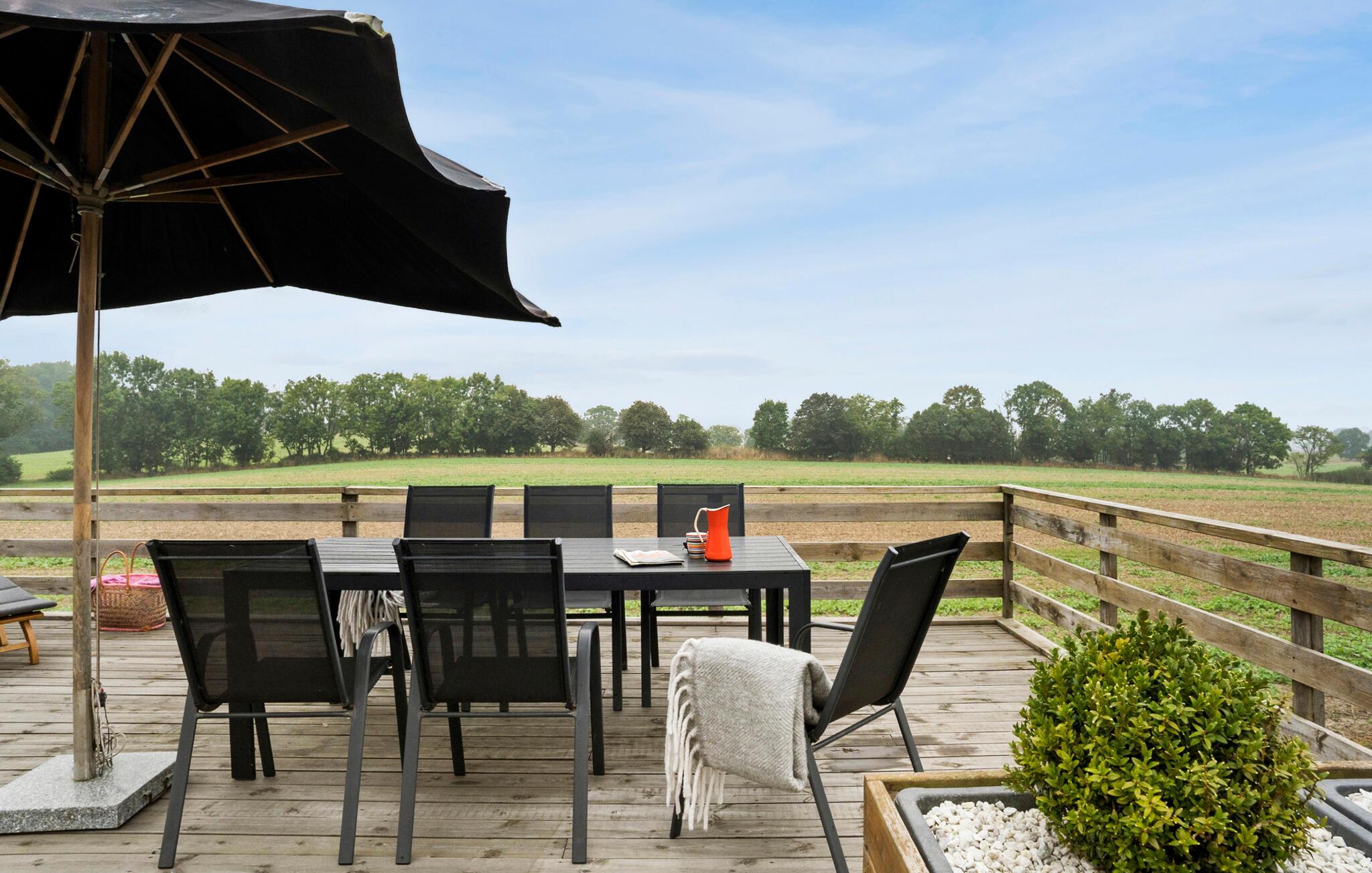 Genießen Sie eine herrliche Zeit in diesem hellen Ferienhaus mit toller Aussicht auf das Meer.