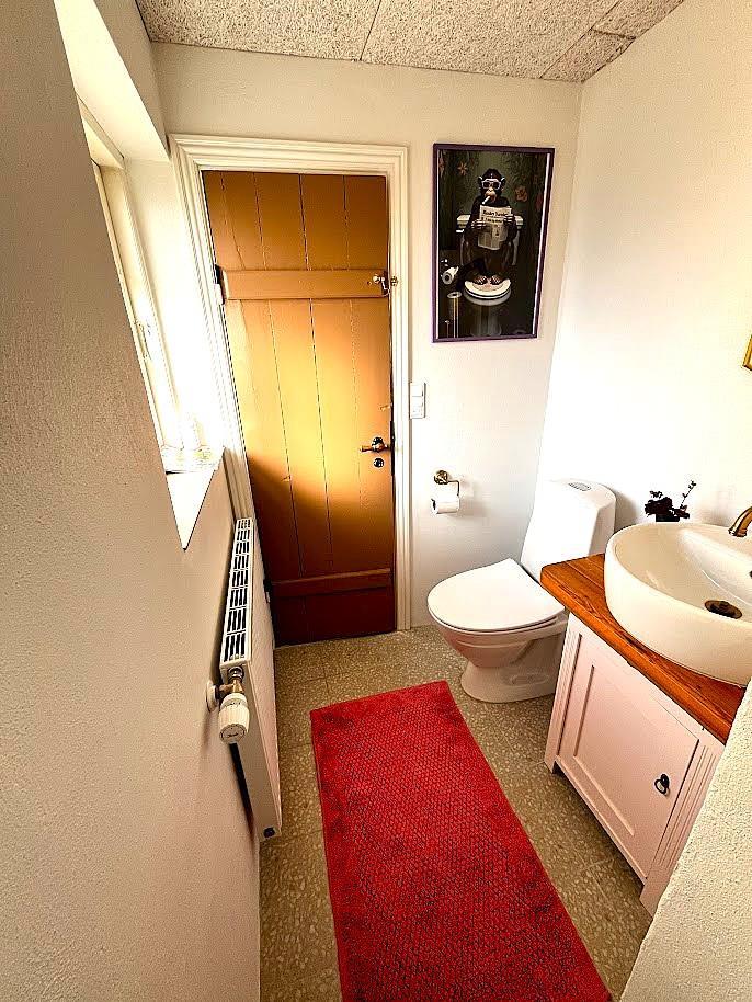 Im Außenbereich können Sie den schönen Garten mit gefliester Terrasse und Gartenmöbeln genießen – ideal für den Morgenkaffee, zum Entspannen in der Sonne und für gemütliche Sommerabende. Die Ferienwohnung liegt in der Nähe von Brundby Stubmølle und dem stimmungsvollen Brundby Rockhotel.