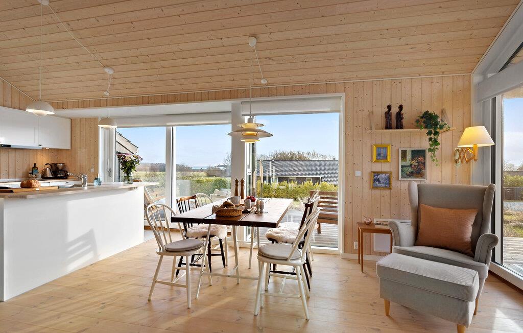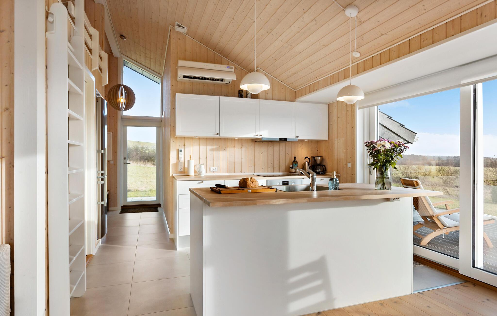 Machen Sie sich auf den Weg nach Südwestfünen, wo Sie dieses fantastische Ferienhaus in einer absolut schönen Naturumgebung erwartet. Das Interieur strahlt Gemütlichkeit und Wärme aus, was sich vor allem in den Holzelementen zeigt, die für eine angenehme Atmosphäre sorgen. Unter dem Dach befindet sich der gemütliche Dachboden, und vielleicht übernachten die Kinder dort? Der offene Wohnbereich vereint Küche und Wohnzimmer, bodentiefe Fenster bieten einen fantastischen Blick auf die Umgebung und die Bucht. Hier können Sie es sich in der Sofaecke mit einem guten Buch gemütlich machen.