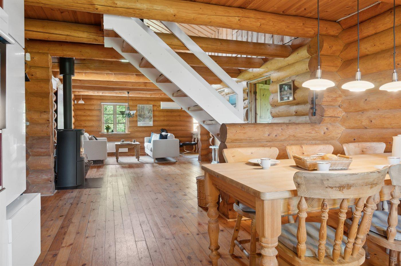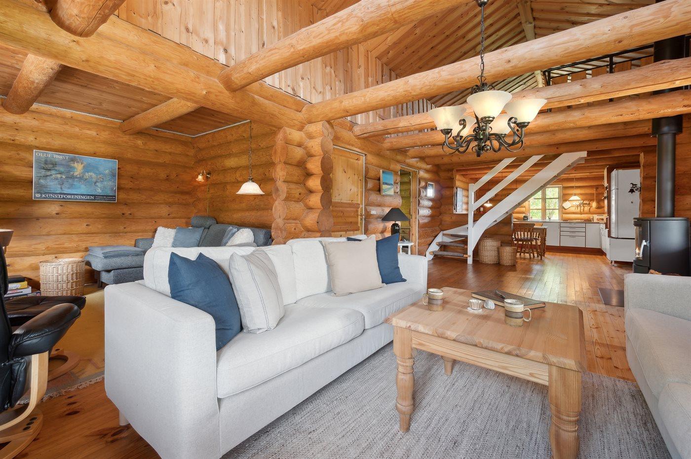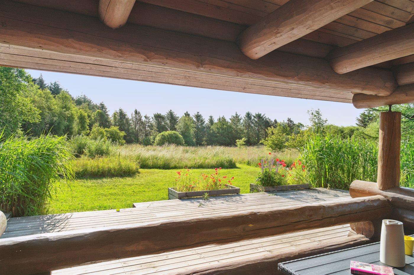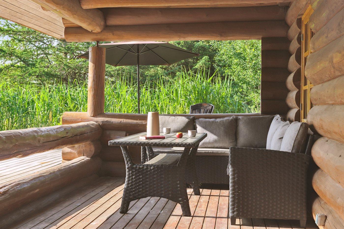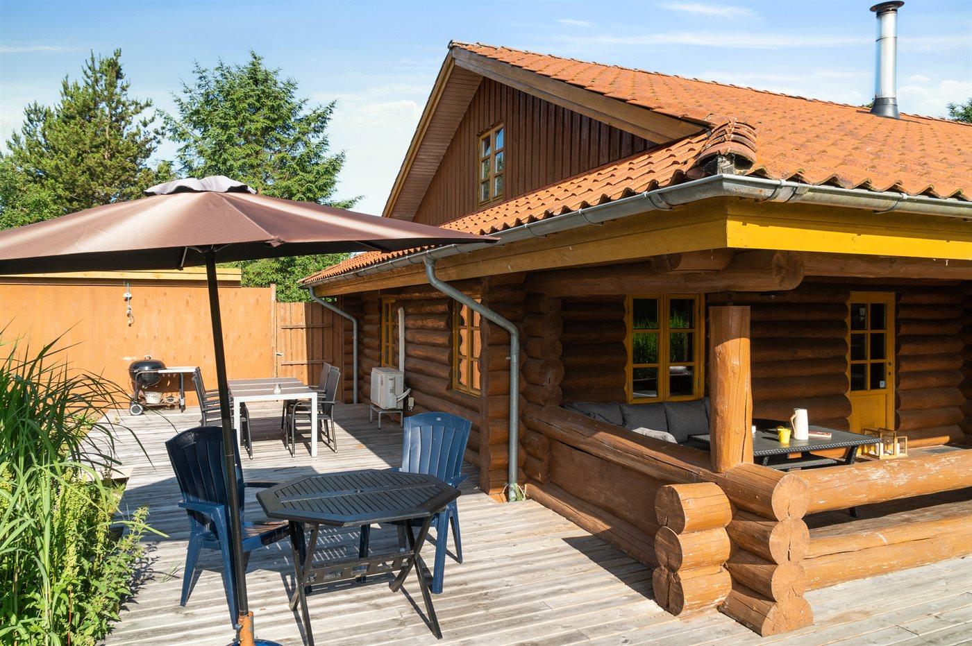 Dieses gemütlich eingerichtete Balkenferienhaus liegt auf einem sehr großen Grundstück -mit viel Platz für Aktivitäten im Freien. Zum Haus gehört eine schöne und zum Teil überdachte Terrasse mit Gartenmöbeln – von hier können Sie die Aussicht über das Grundstück genießen und den Kindern beim Spielen zusehen. Das Haus ist mit einem großen, offenen Obergeschoss eingerichtet.