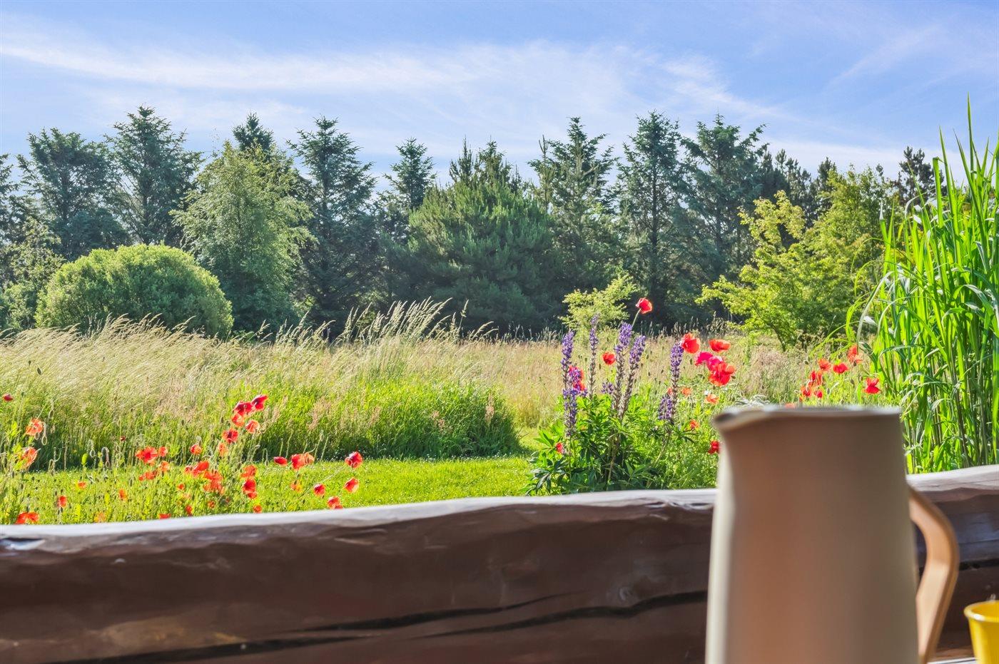 Gemütliches Ferienhaus in Frøstrup mit großer Terrasse, Kaminofen und eingezäuntem Naturgrundstück für entspannte Urlaubstage.