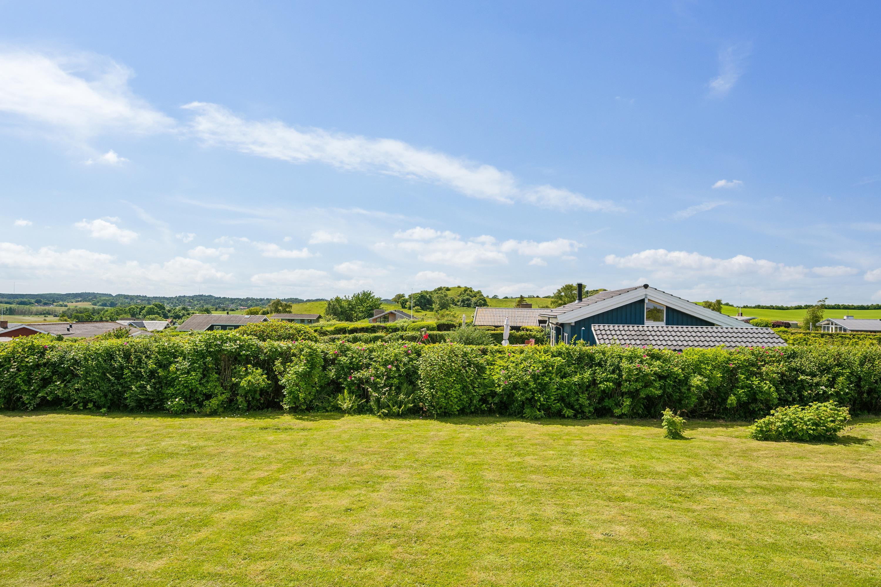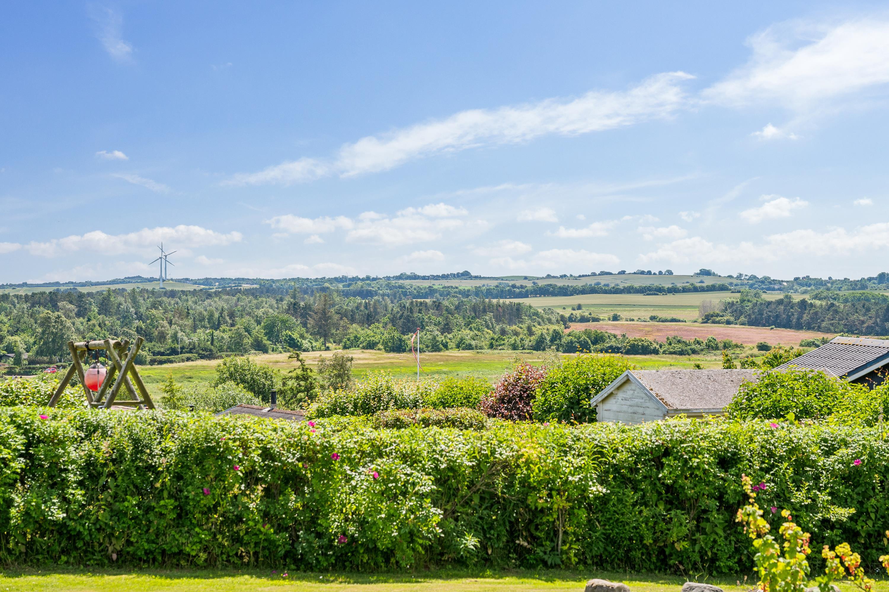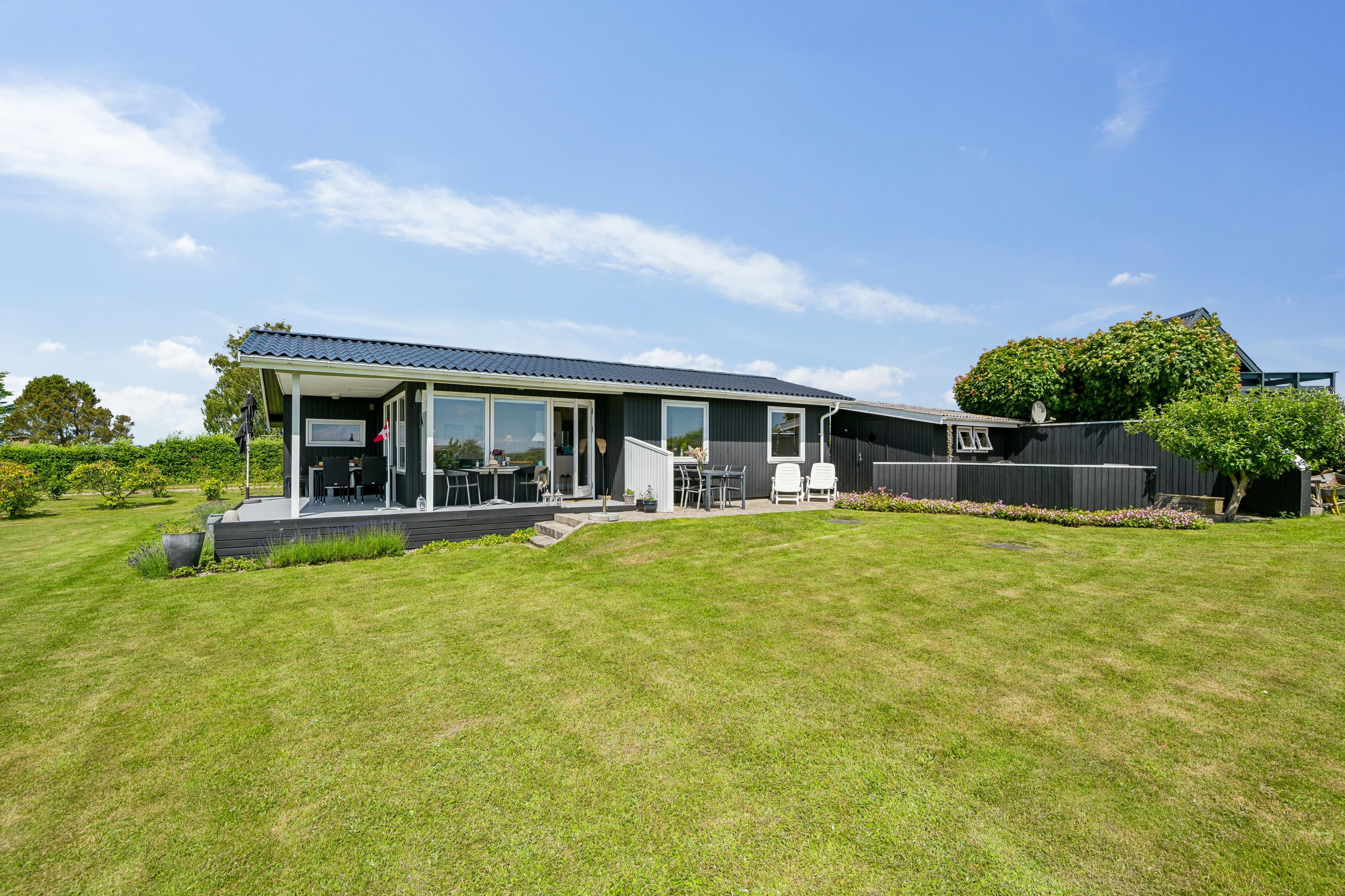 Modernisiertes Ferienhaus nahe kinderfreundlichem Strand mit Garten, Spielgeräten und Meerblick am Kattegat.