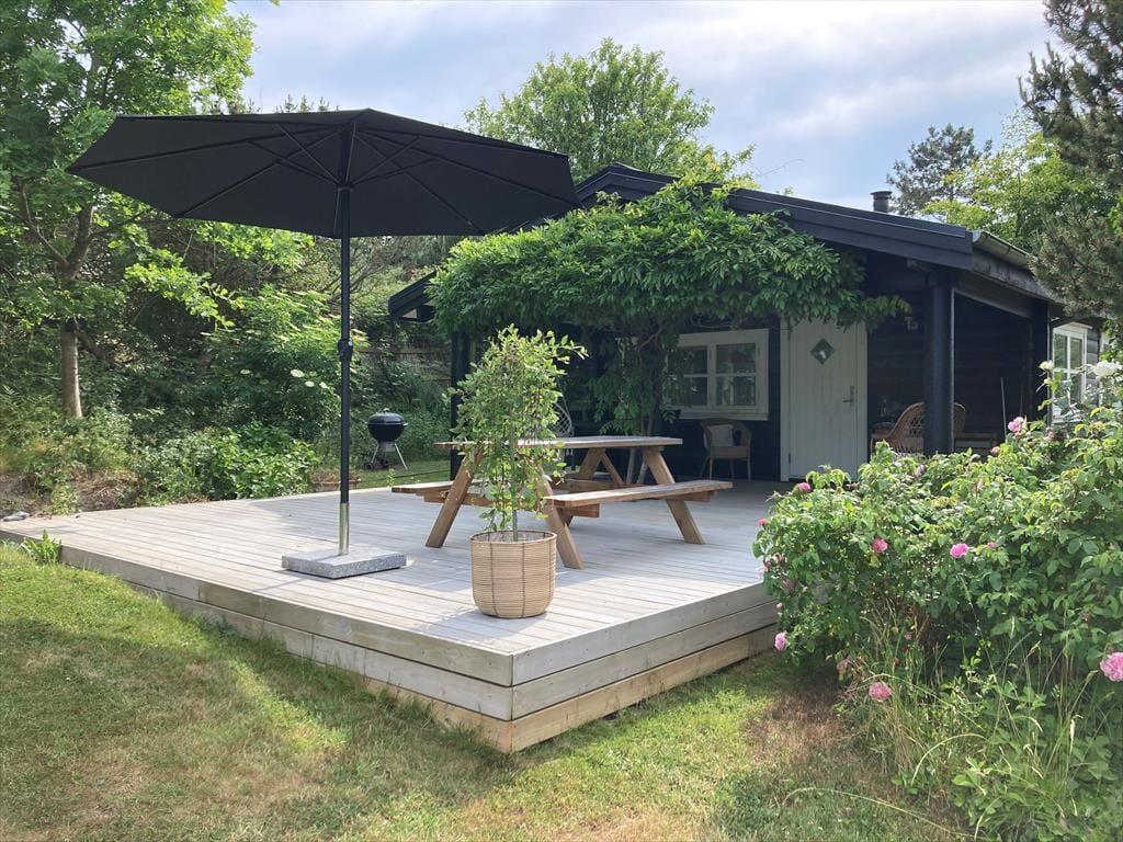 Das Urlaubsdomizil liegt auf einem attraktiven Grundstück mit Platz zum Spielen und für verschiedene Freiluftaktivitäten. Vor dem Haus lockt eine überdachte Veranda mit Gartenmöbeln. Das Grundstück verwöhnt Sie mit einem kleinen Meerblick und einer gemütlichen Feuerstelle, an der Sie allabendlich Stockbrot und Würstchen rösten können. Für die kleinen Urlauber steht ein Trampolin bereit.