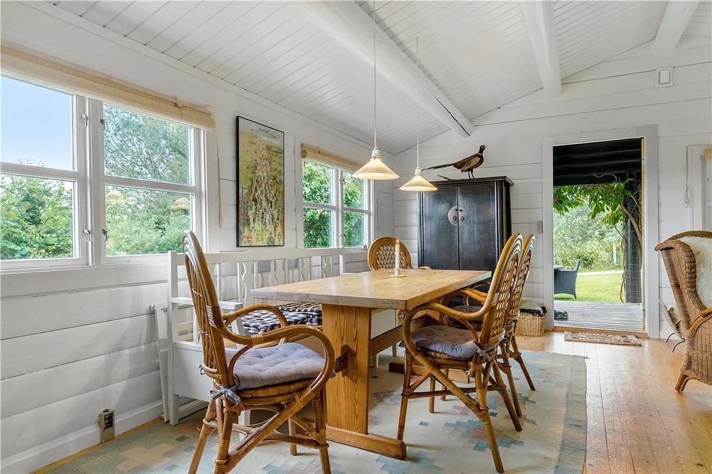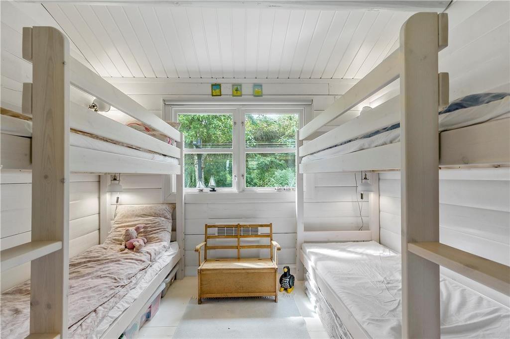 Nicht weit abseits des Wassers erwartet Sie dieses ältere, aber ausgesprochen reizende und gemütliche Ferienhaus. Das Haus beinhaltet einen hellen Wohnraum mit einer gemütlichen Möblierung und einem Kaminofen. Die kleine aber funktionelle Küche ist unter anderem mit einem Geschirrspüler ausgestattet. Die Schlafplätze verteilen sich auf einen Schlafraum mit zwei Etagenbetten und einen Schlafraum mit zwei Einzelbetten. Alternativ zu den Etagenbetten können Sie auch das Sofa im Wohnraum als Schlafgelegenheit nutzen. Das gute Badezimmer beinhaltet eine Duschkabine. Für Unterhaltung und Abwechslung sorgen kostenloses WiFi und Apple-TV.