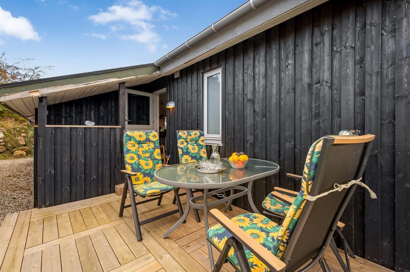 Außerdem bietet das Ferienhaus ausgezeichnete Terrassenflächen an mehreren Seiten des Hauses, sodass du immer die Sonne genießen und einen windgeschützten Platz finden kannst, wenn das Wetter einmal nicht ganz mitspielt. Eine der Terrassen ist überdacht, und hier findest du außerdem ein große, geräumige Windschutzhütte mit Platz für die ganze Familie, wenn ihr unter freiem Himmel schlafen möchtet.