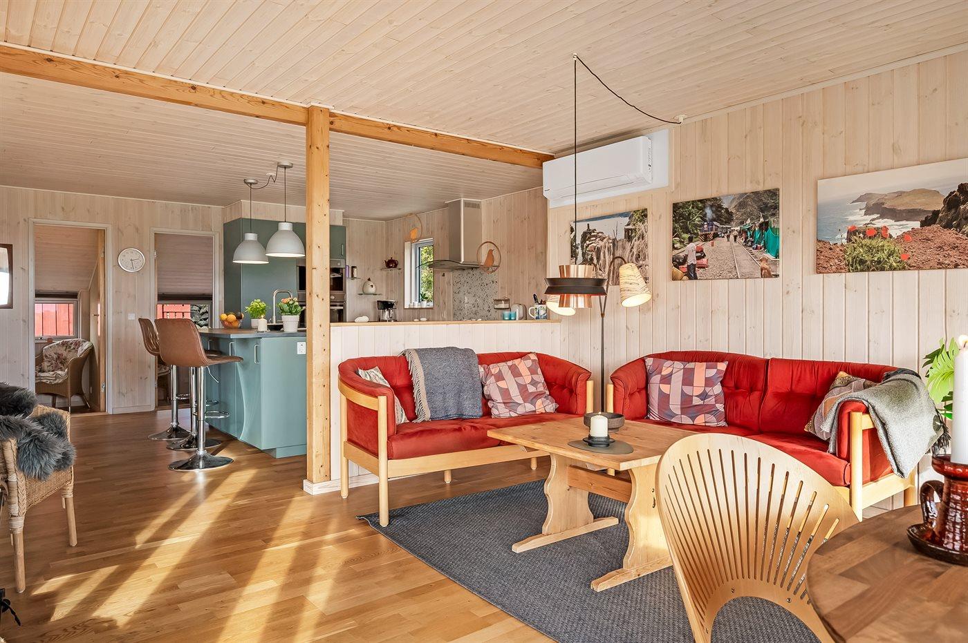 Das Ferienhaus eignet sich für 6 Personen. Die Ferienunterkunft hat eine Wohnfläche von 82 m² und wurde 1973 gebaut. 1993 wurde die Ferienunterkunft renoviert. 2022 wurde die Ferienunterkunft teilweise renoviert. Es ist erlaubt 1 Haustier mitzubringen. In der Ferienunterkunft ist eine energiesparende Luft zu Luft Wärmepumpe installiert. Die Ferienunterkunft ist mit Waschmaschine ausgestattet. Wäschetrockner. Tiefkühlmöglichkeit mit 80 Liter Nutzinhalt. Es gibt außerdem einen Kaminofen. Für die jüngsten Feriengäste ist 1 Kinderhochstuhl vorhanden.
