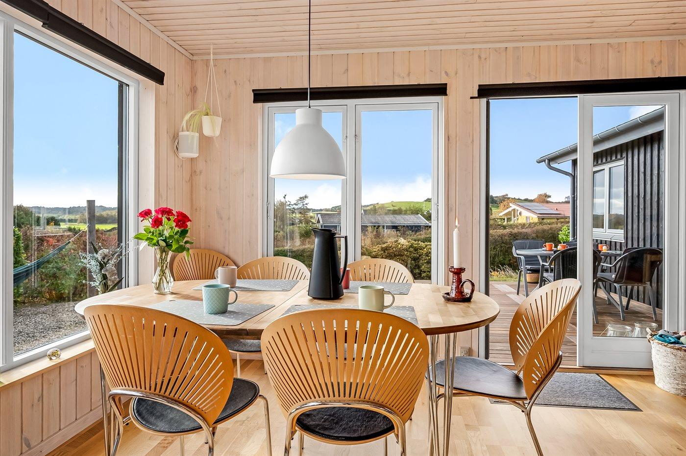 Das Ferienhaus liegt ungestört auf dem großen Grundstück, von dem du eine fantastische Aussicht über die Landschaft hast – fast wie ein Panoramablick, besonders vom oberen Teil des leicht abfallenden Geländes. Zum Wasser und zum Badestrand sind es nur ca. 600 Meter, wo du viele schöne Stunden im Sand verbringen kannst.