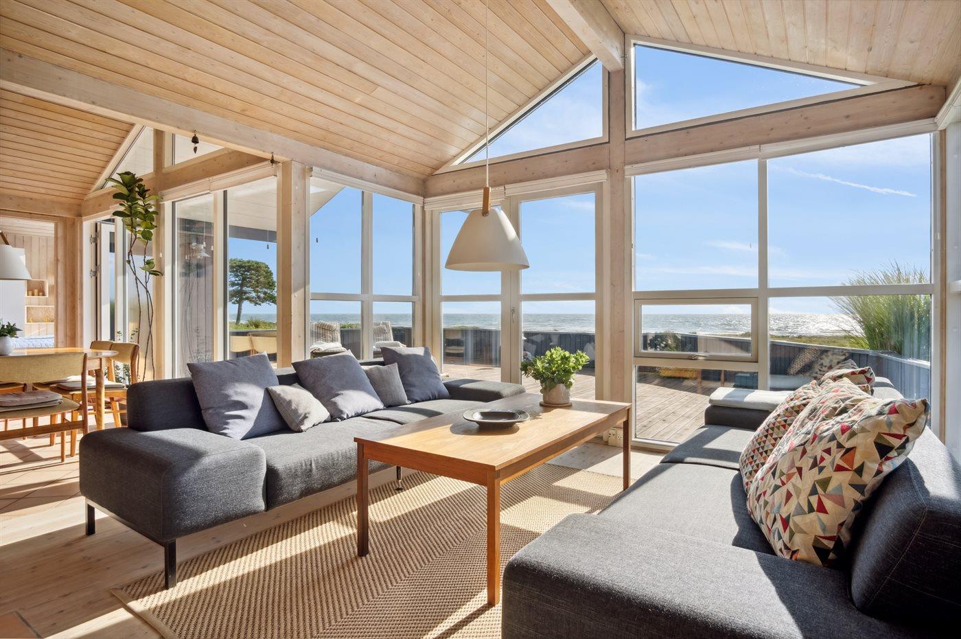 Dieses schöne Ferienhaus liegt direkt am Kattegat und bietet einen 180-Grad-Panoramablick auf das Meer, der sich sowohl von der herrlichen Terrasse als auch von innen im Ferienunterkunft erstreckt. Selbst in den meisten Schlafzimmern kann die großartige Aussicht genossen werden - eine bessere Lage ist einfach schwer zu finden.
