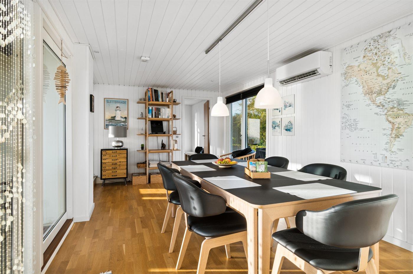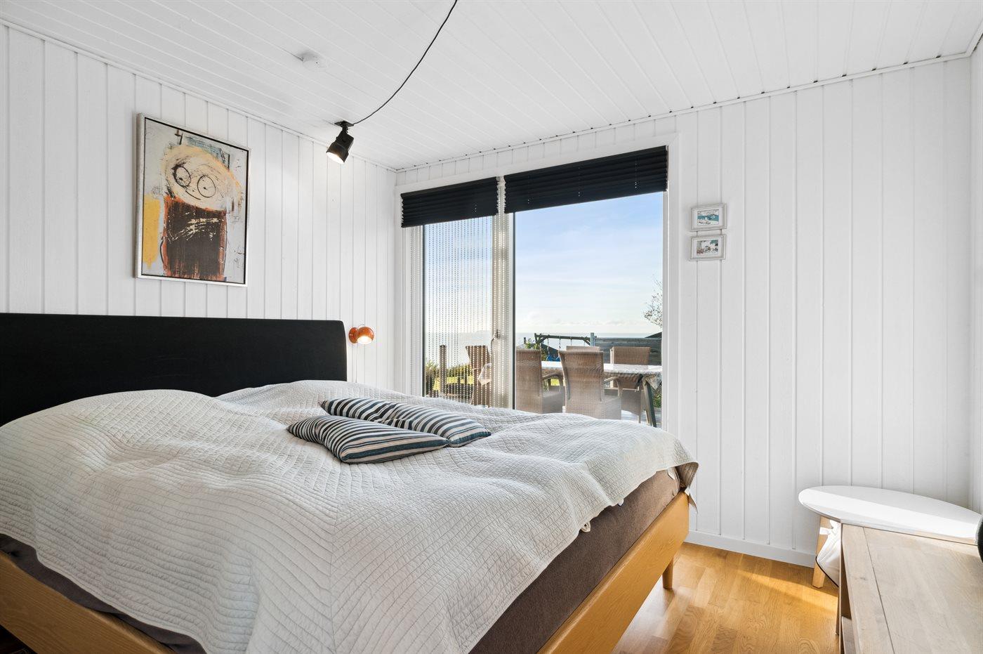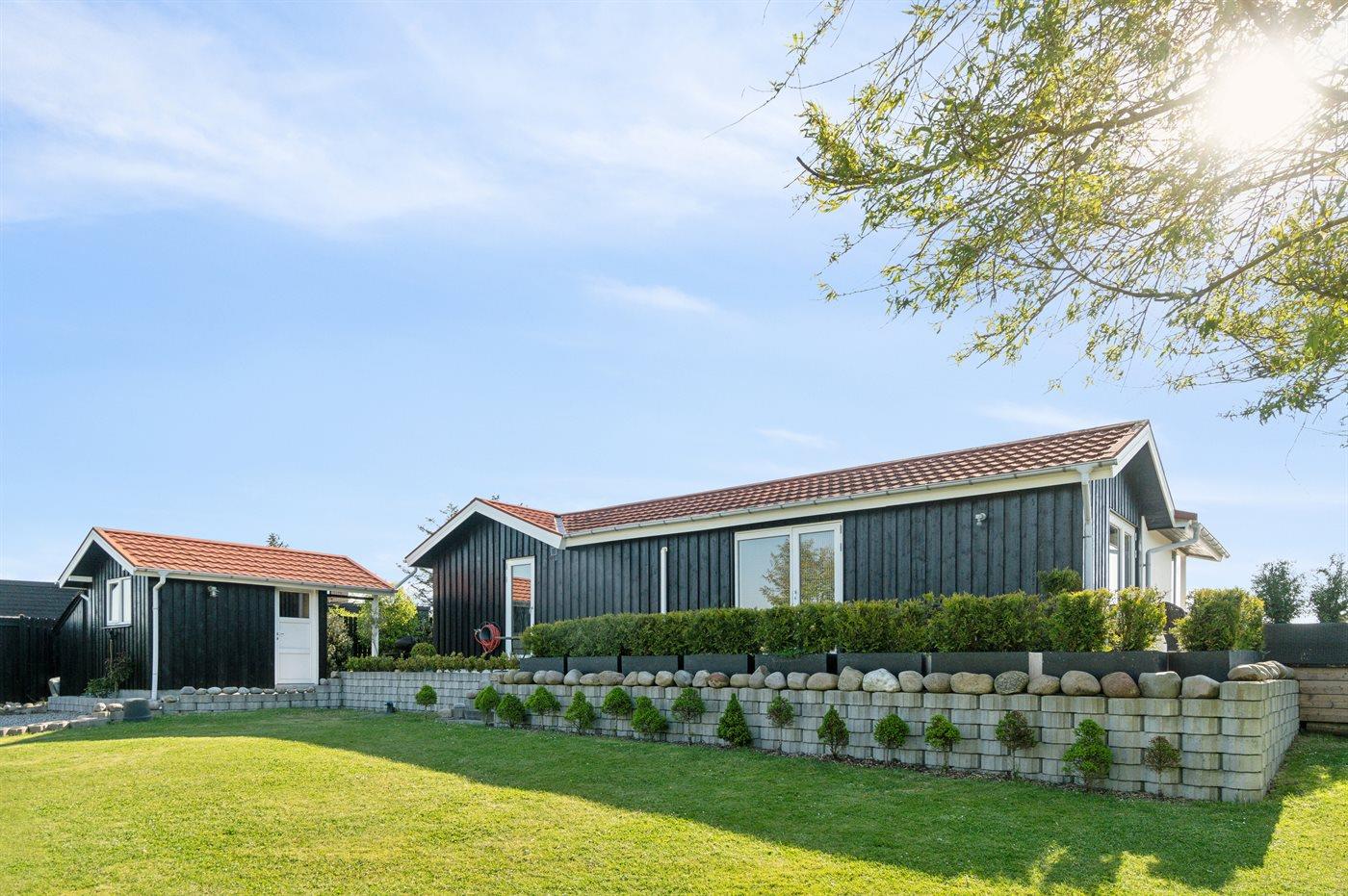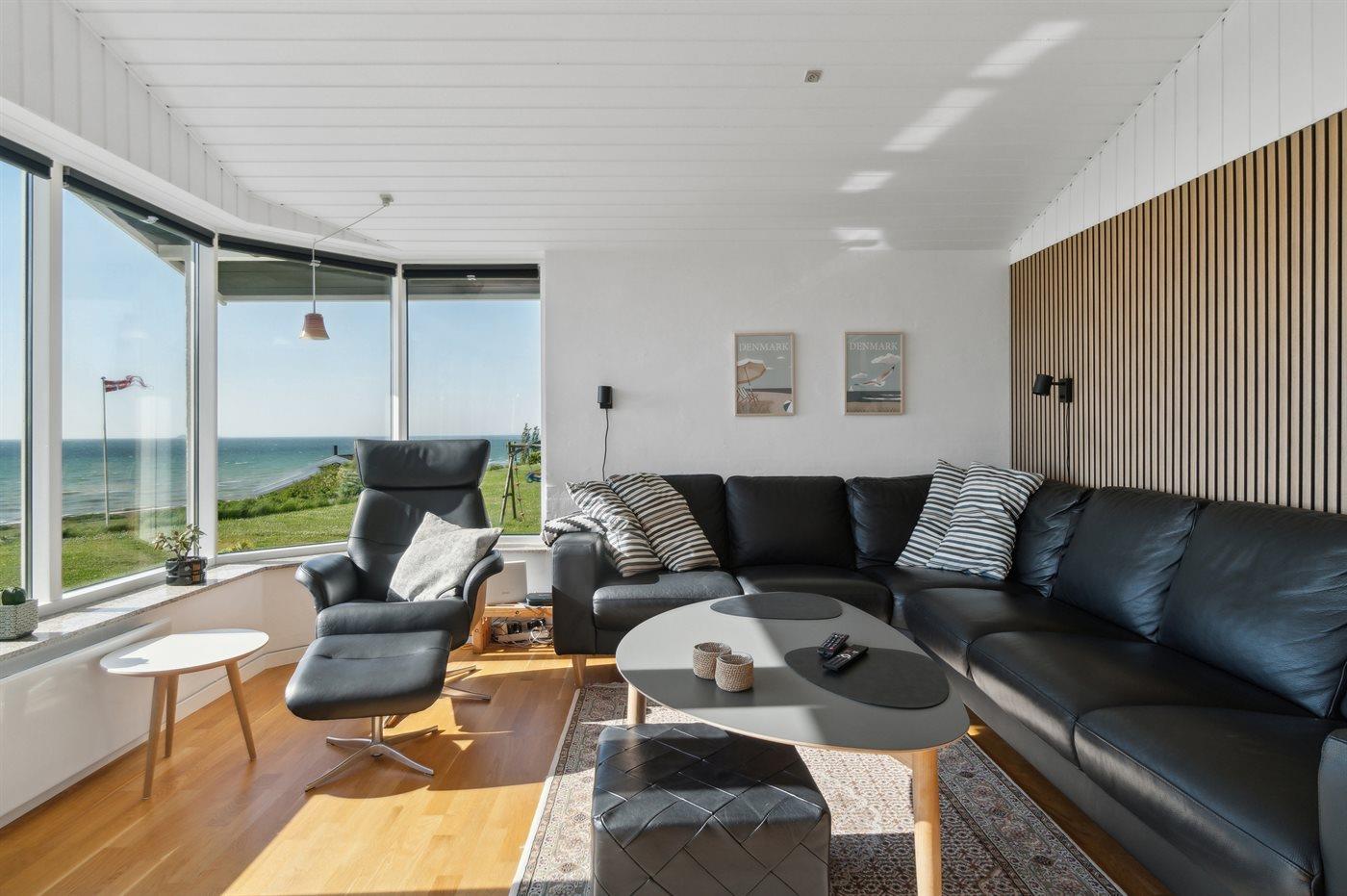 Willkommen in diesem 4-Personen-Ferienhaus mit einer herrlichen Panoramaaussicht auf das schöne Wasser am Dråby Strand.
