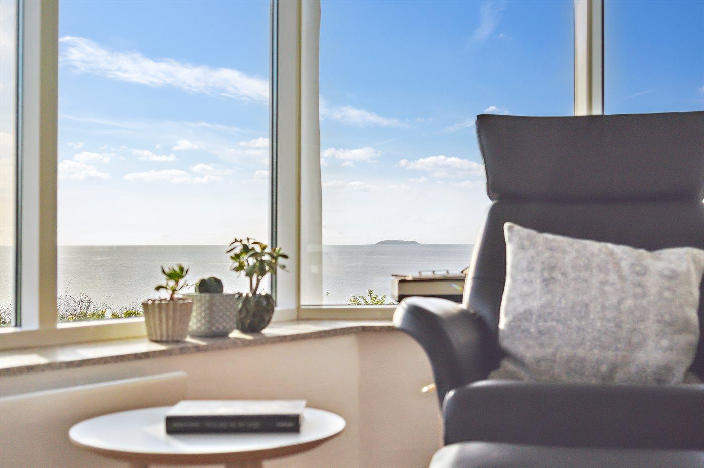 Herrliches Ferienhaus in Dråby mit Panoramablick und nur 300 m zum Meer, ideal für einen entspannten Urlaub.