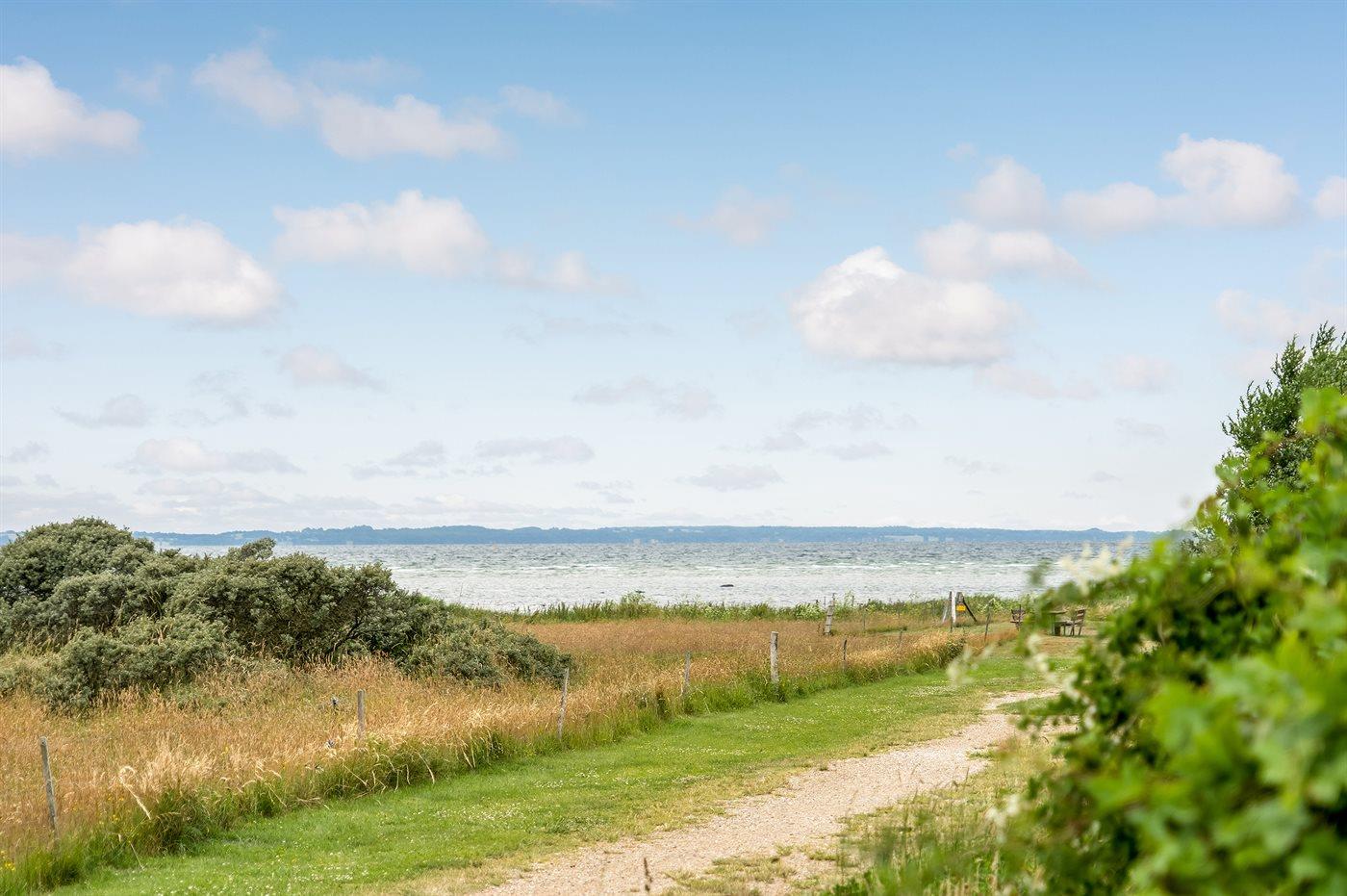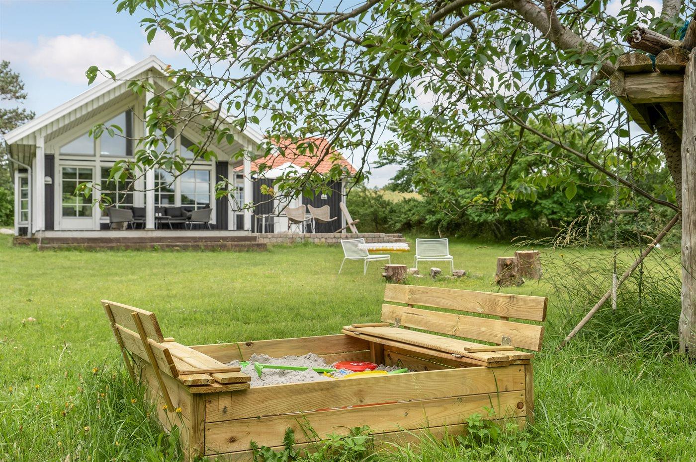 Die Ferienunterkunft liegt auf einem 1156 m² großen Gartengrundstück. Die Entfernung zum Fjord beträgt 50 m. Die nächste Einkaufsmöglichkeit liegt 2000 m entfernt. In einem Abstand von 3500 m gibt es einen Golfplatz. Es steht ein 16 m² Terrassenareal zur Verfügung. Außerdem gibt es 16 m² überdachte Terrasse. Schaukel. Sandkasten.Lagerfeuerstelle. Es steht ein Grill zur Verfügung. Parkplatz auf dem Grundstück.