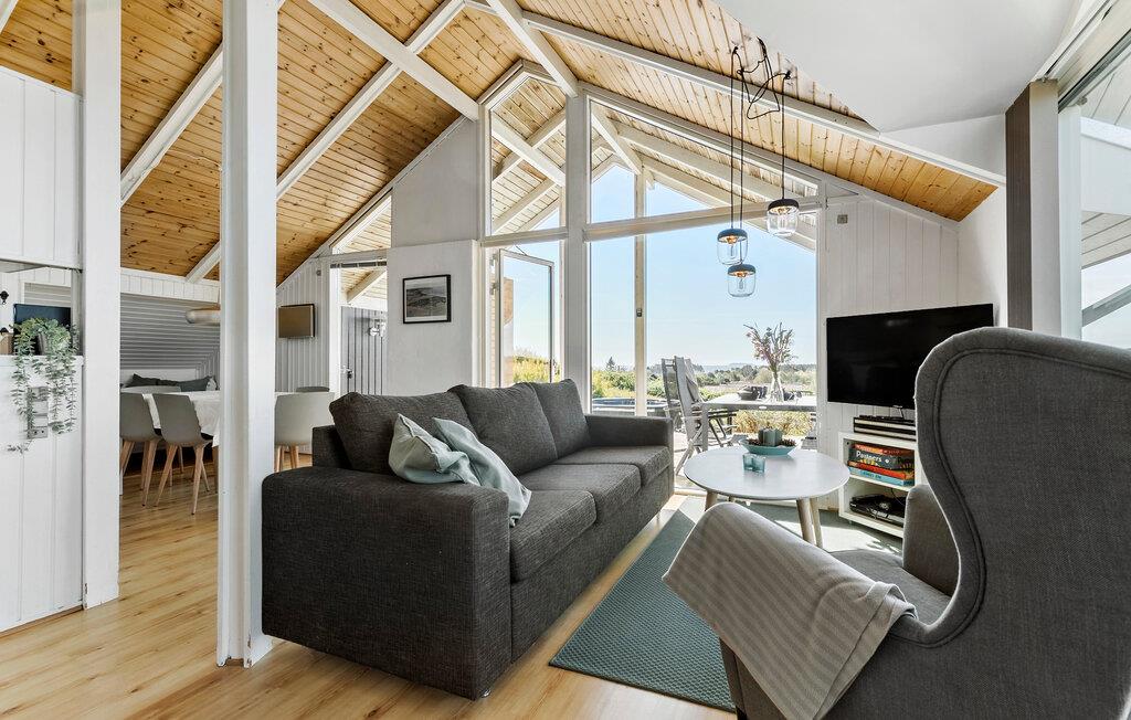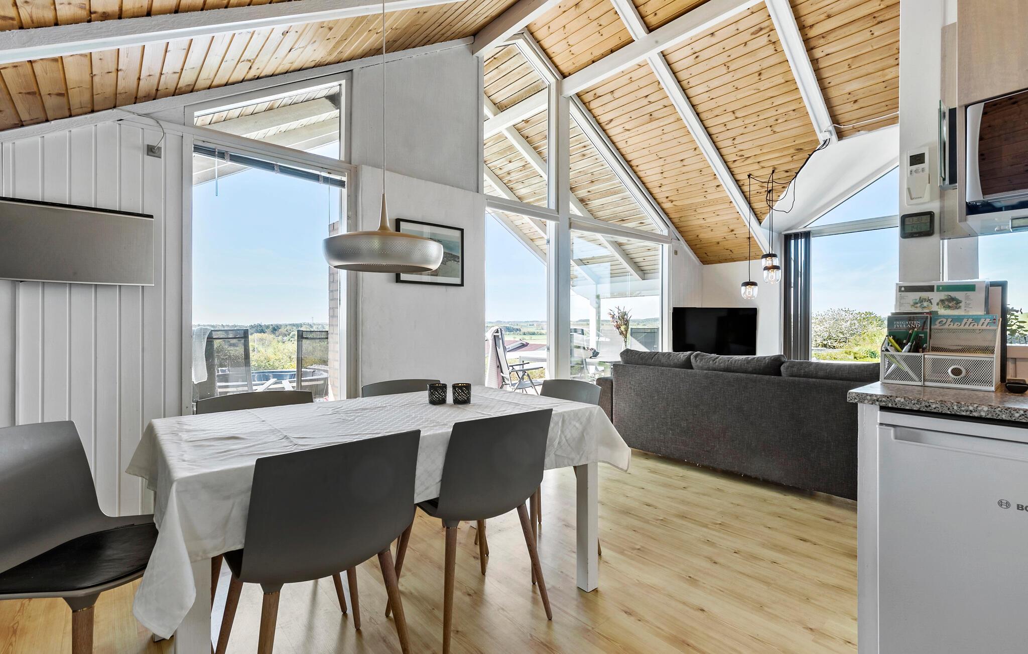 Genießen Sie Panoramablick und Komfort in diesem modernen Ferienhaus nahe dem Meer in Ebeltoft, Dänemark.