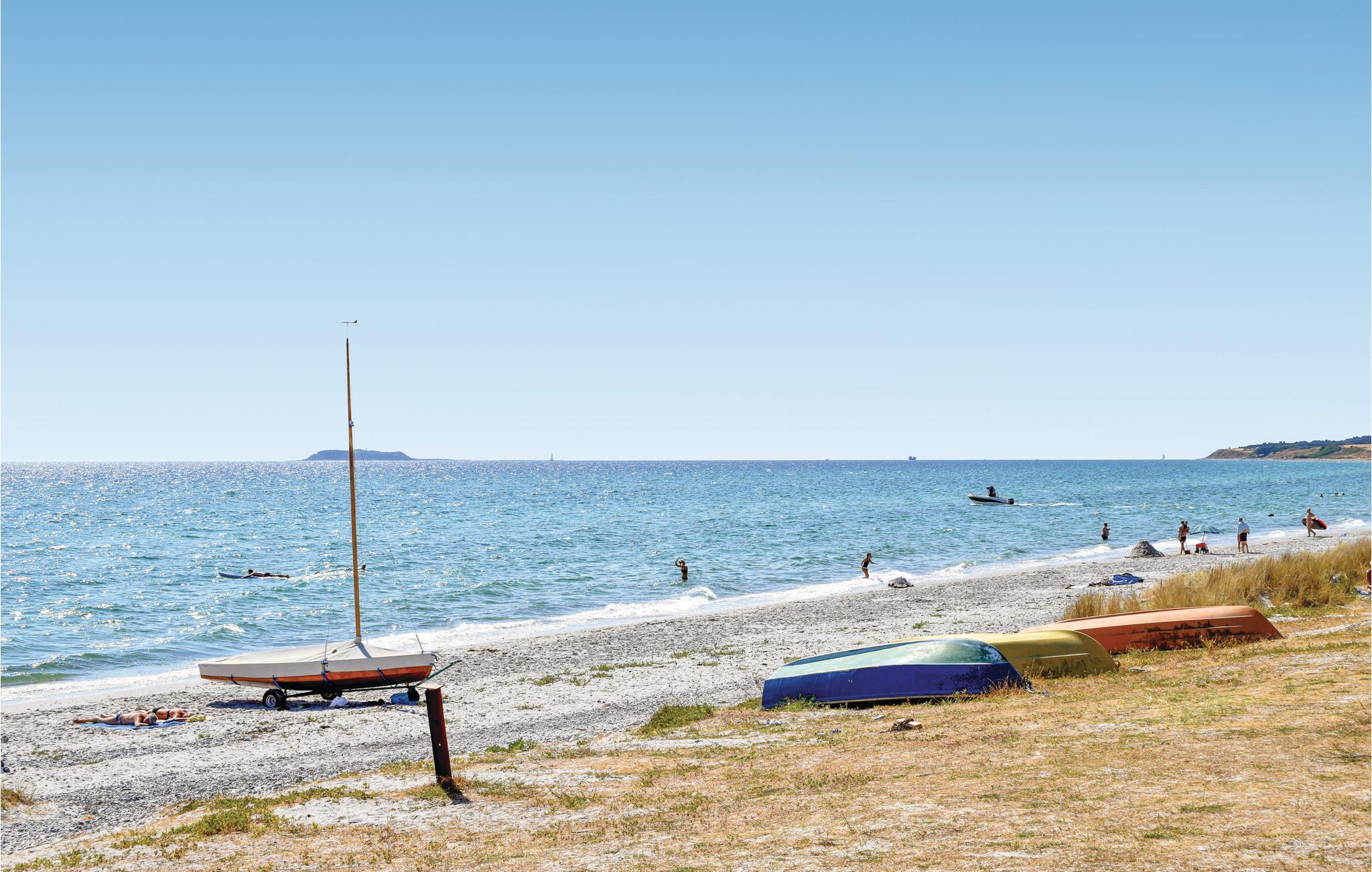 Dieses Ferienhaus in Dråby Strand bietet Swimmingpool, Sauna und Meerblick auf einem großen Naturgrundstück.