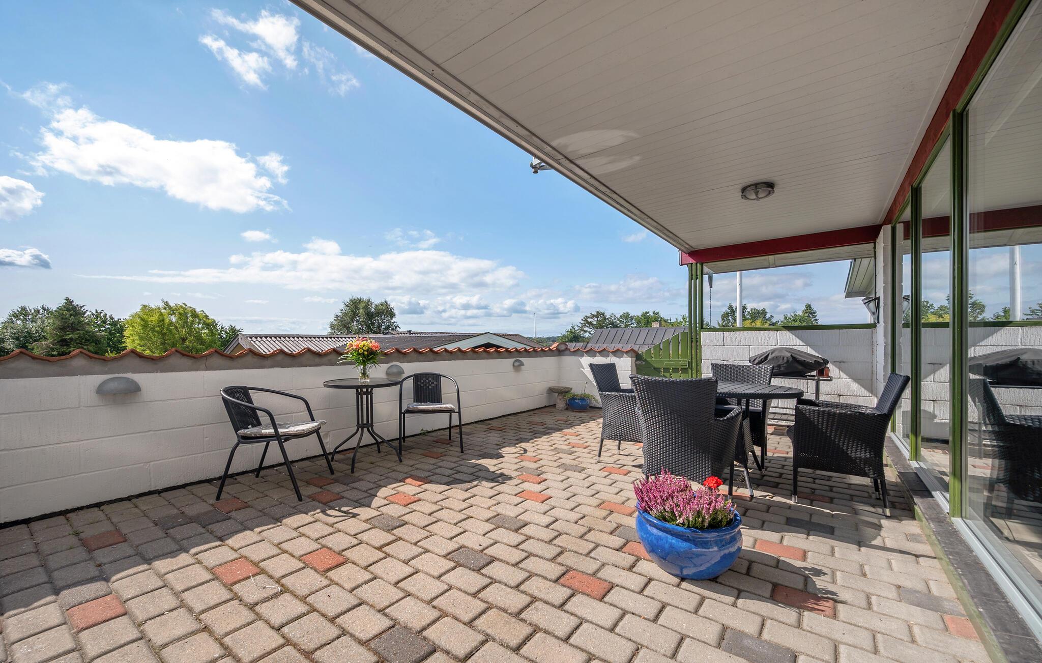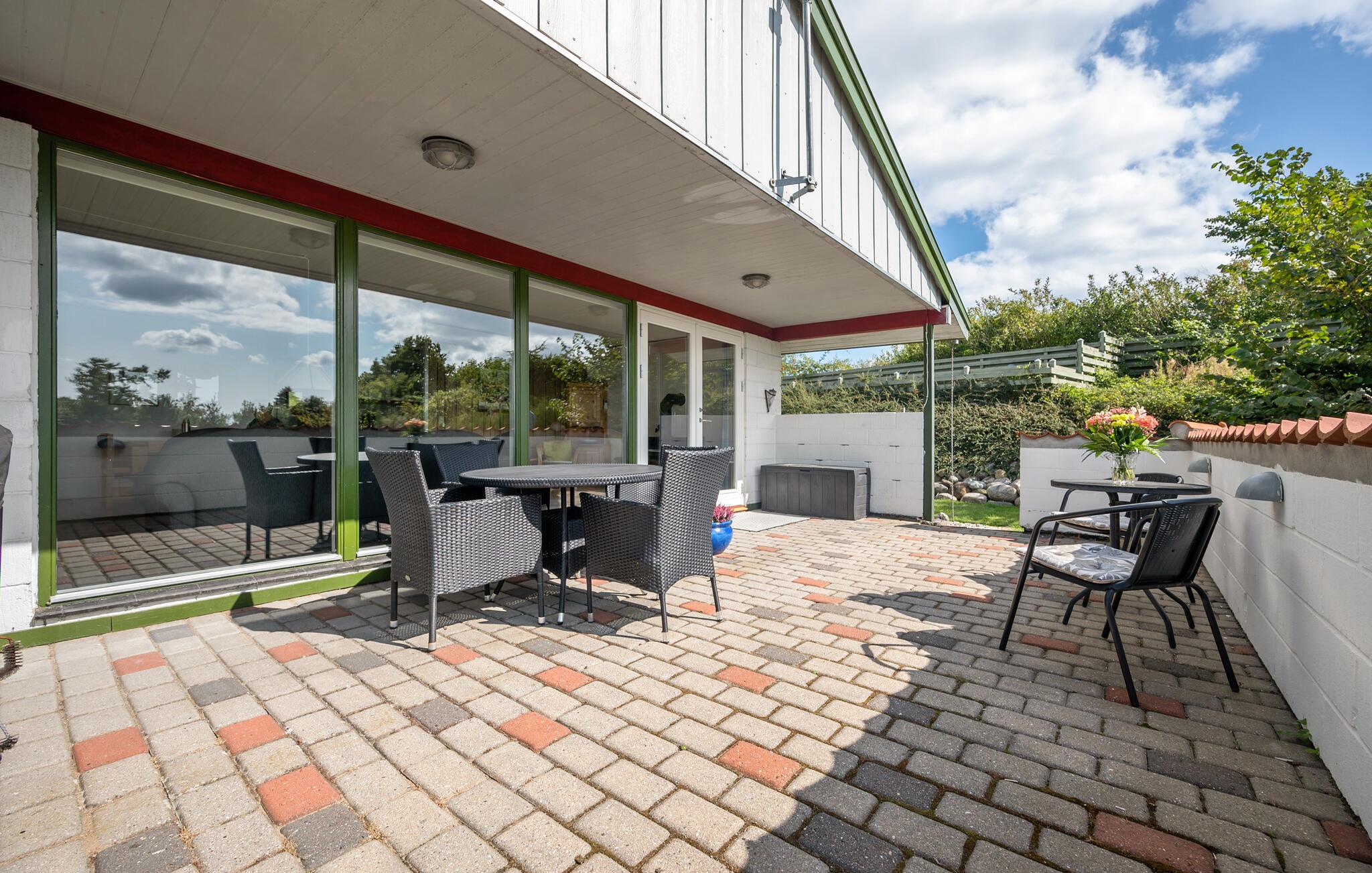 Modernes und gemütliches Ferienhaus nahe Dråby Strand mit beheizbarem Wintergarten, großzügiger Terrasse und herrlichem Naturblick.
