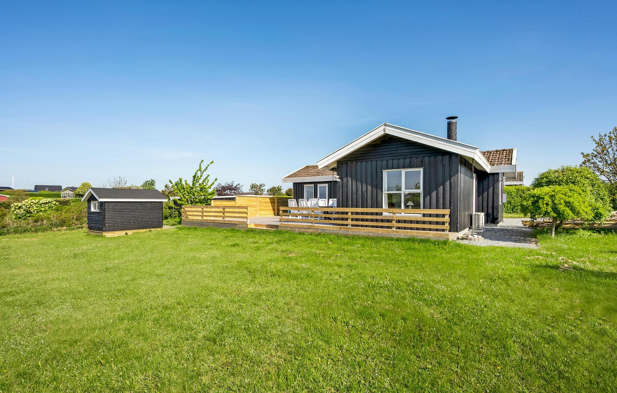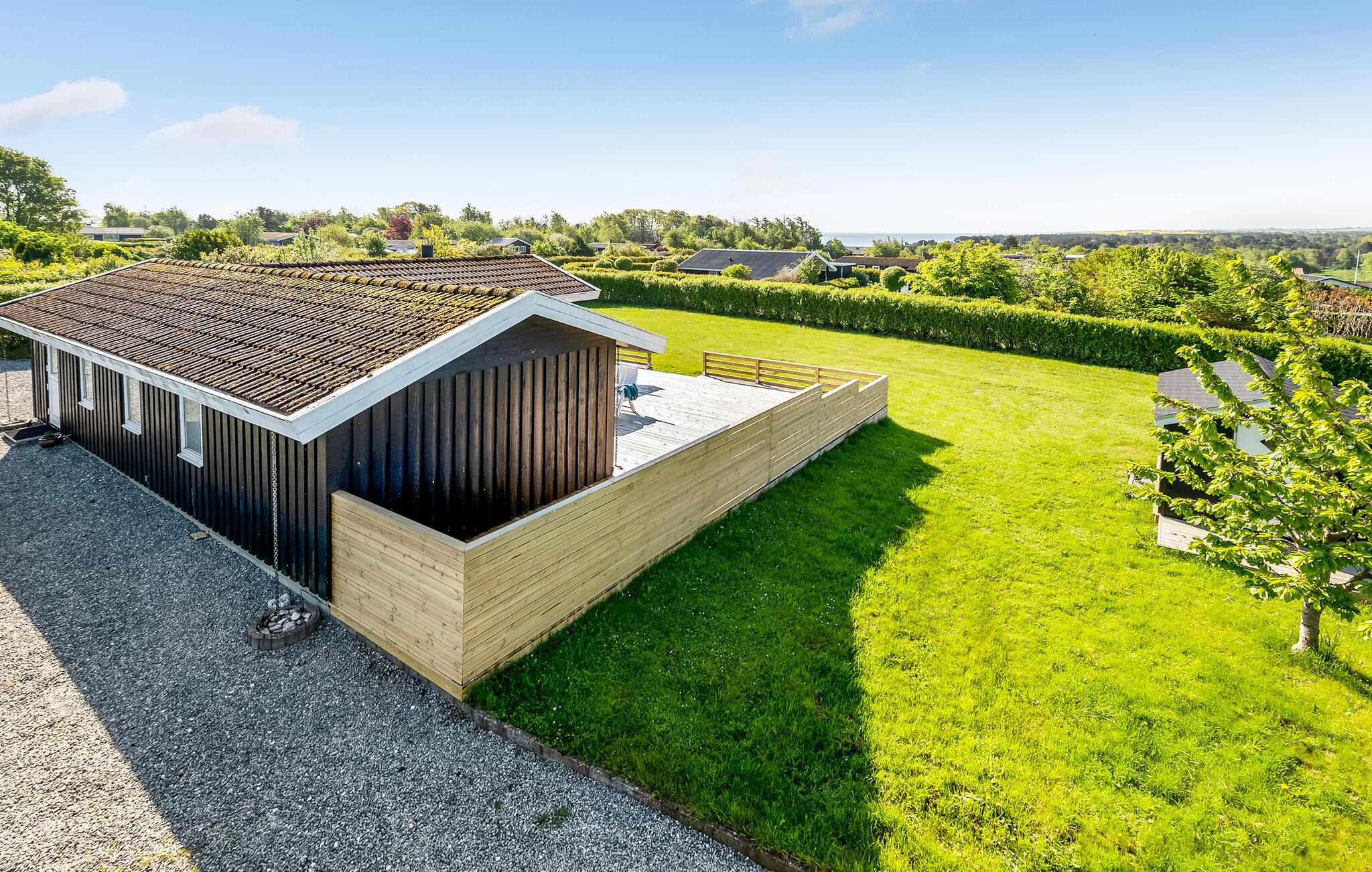 Gemütliches Ferienhaus bei Dråby Strand mit Meerblick, WLAN, Kamin und großem Garten für erholsame Familienurlaube.