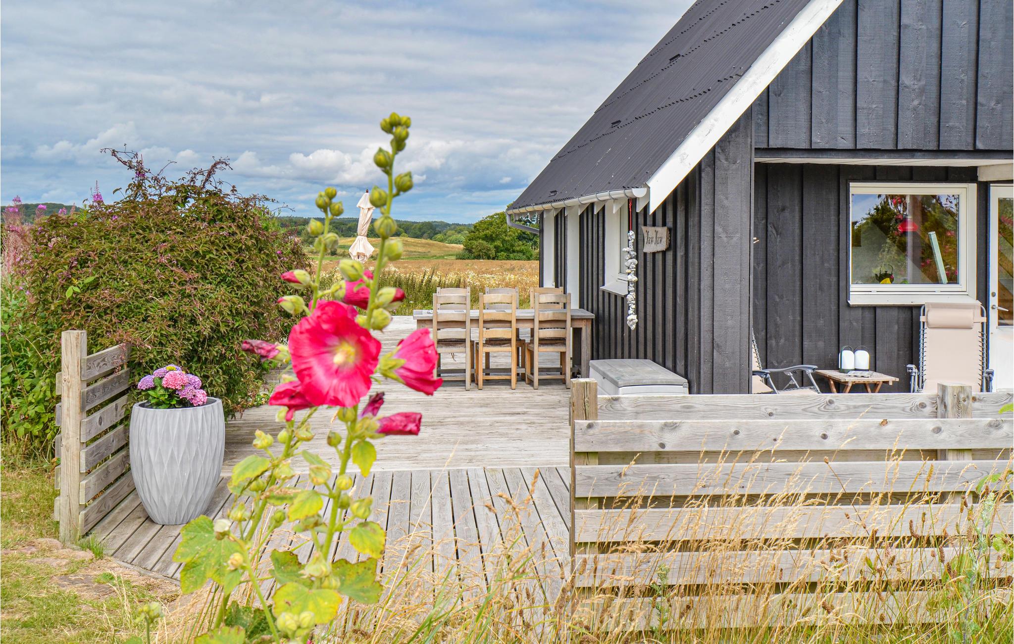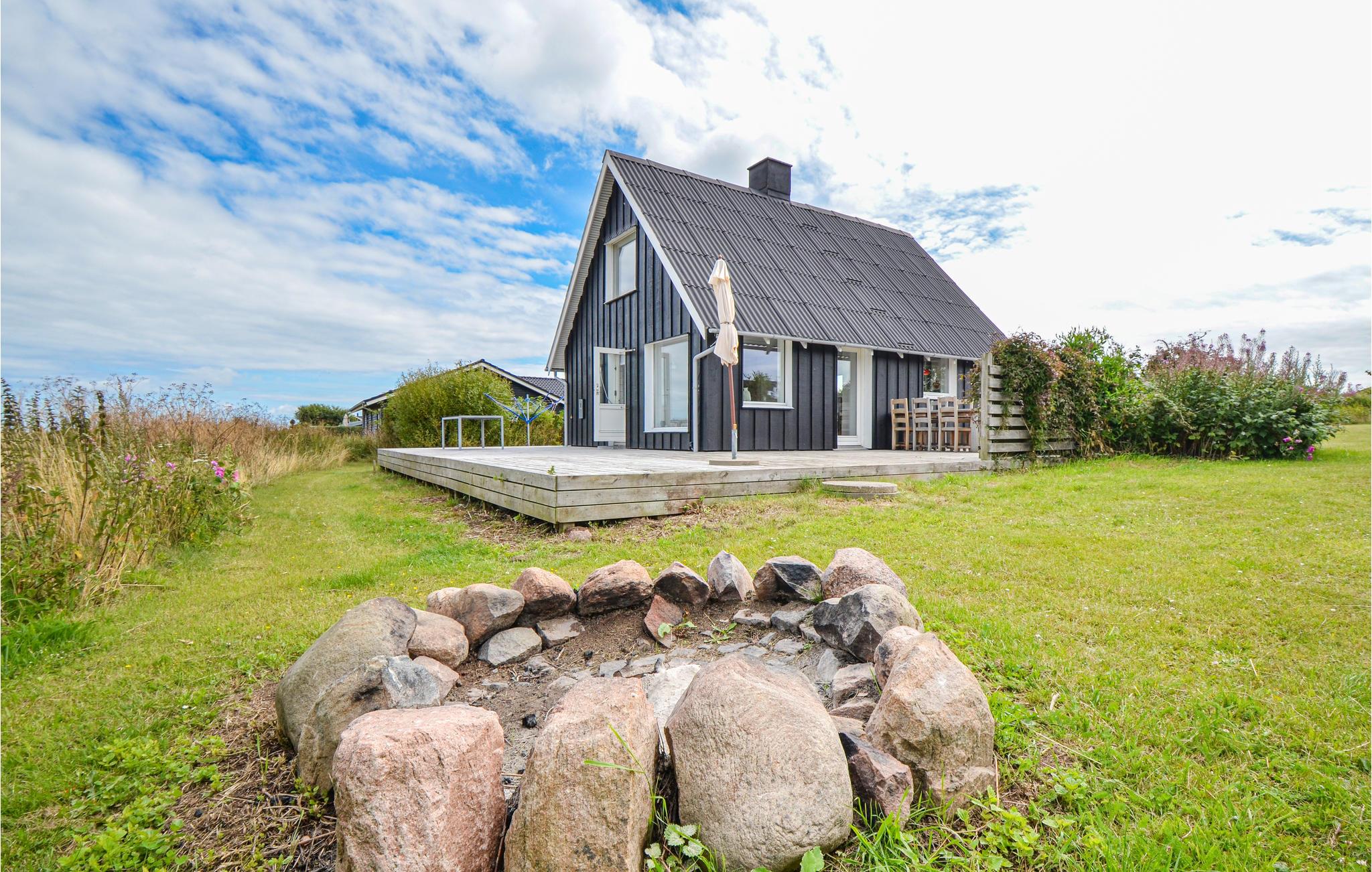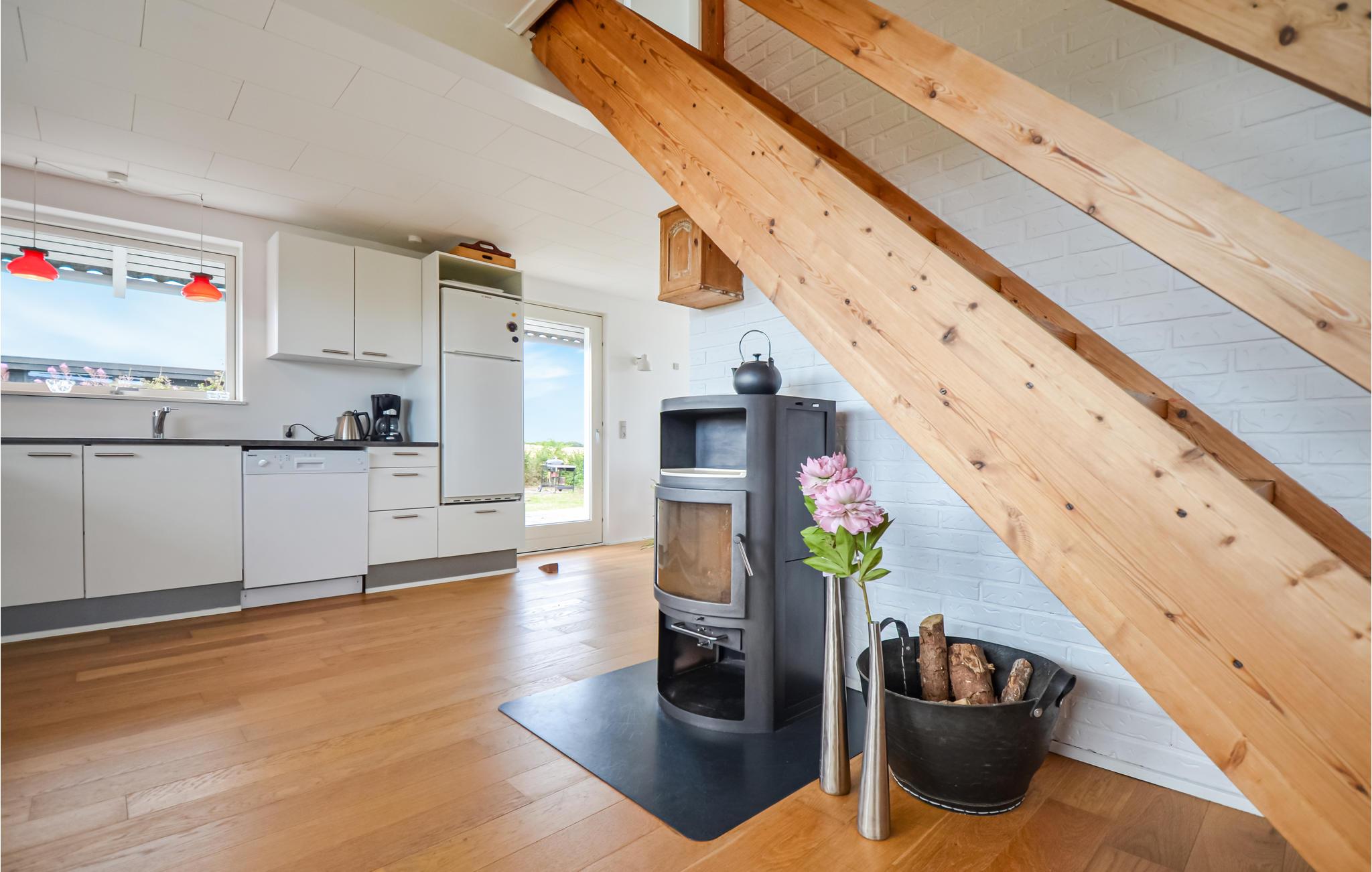 Das Ferienhaus auf zwei Ebenen befindet sich in der Nähe des Strandes von Dråby, der als gutes Angel- und Badegewässer bekannt ist. Im ersten Stock befinden sich zwei helle Räume mit Blick auf Felder, Meer und Jernhatten. Im Erdgeschoss befindet sich ein natürlicher Treffpunkt mit offener Verbindung zwischen Küche, Essbereich und kleiner TV-Lounge. Das große Giebelfenster lässt das Licht ins Innere und bietet Meerblick und Blick auf die wunderschöne Natur, die sich in der klassischen Hügellandschaft schlängelt. Der charmante Holzofen verbreitet Wärme und Gemütlichkeit.