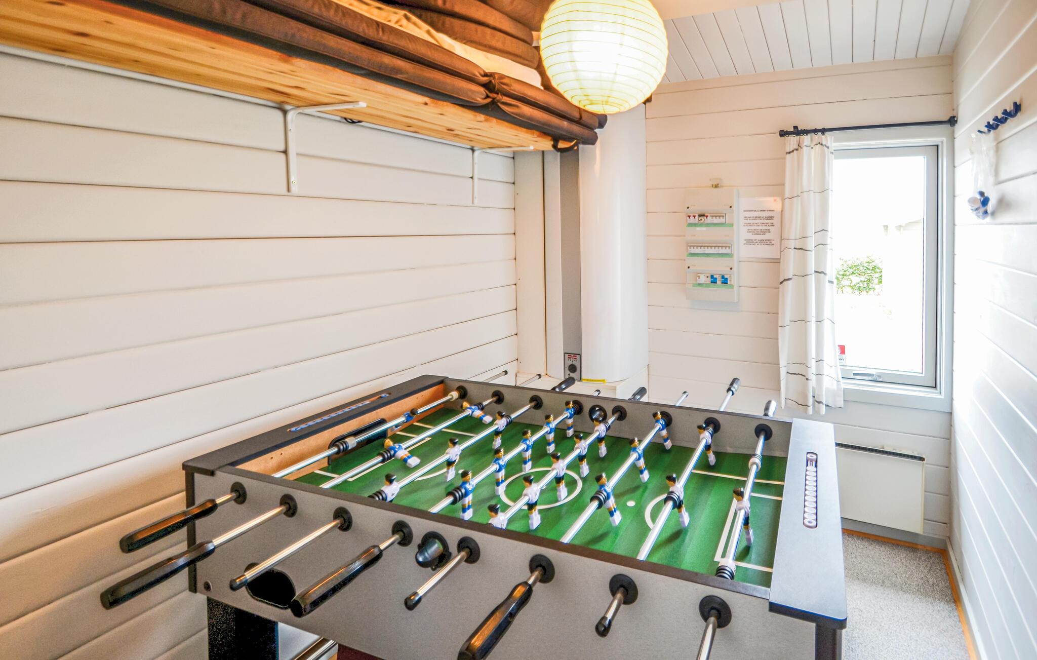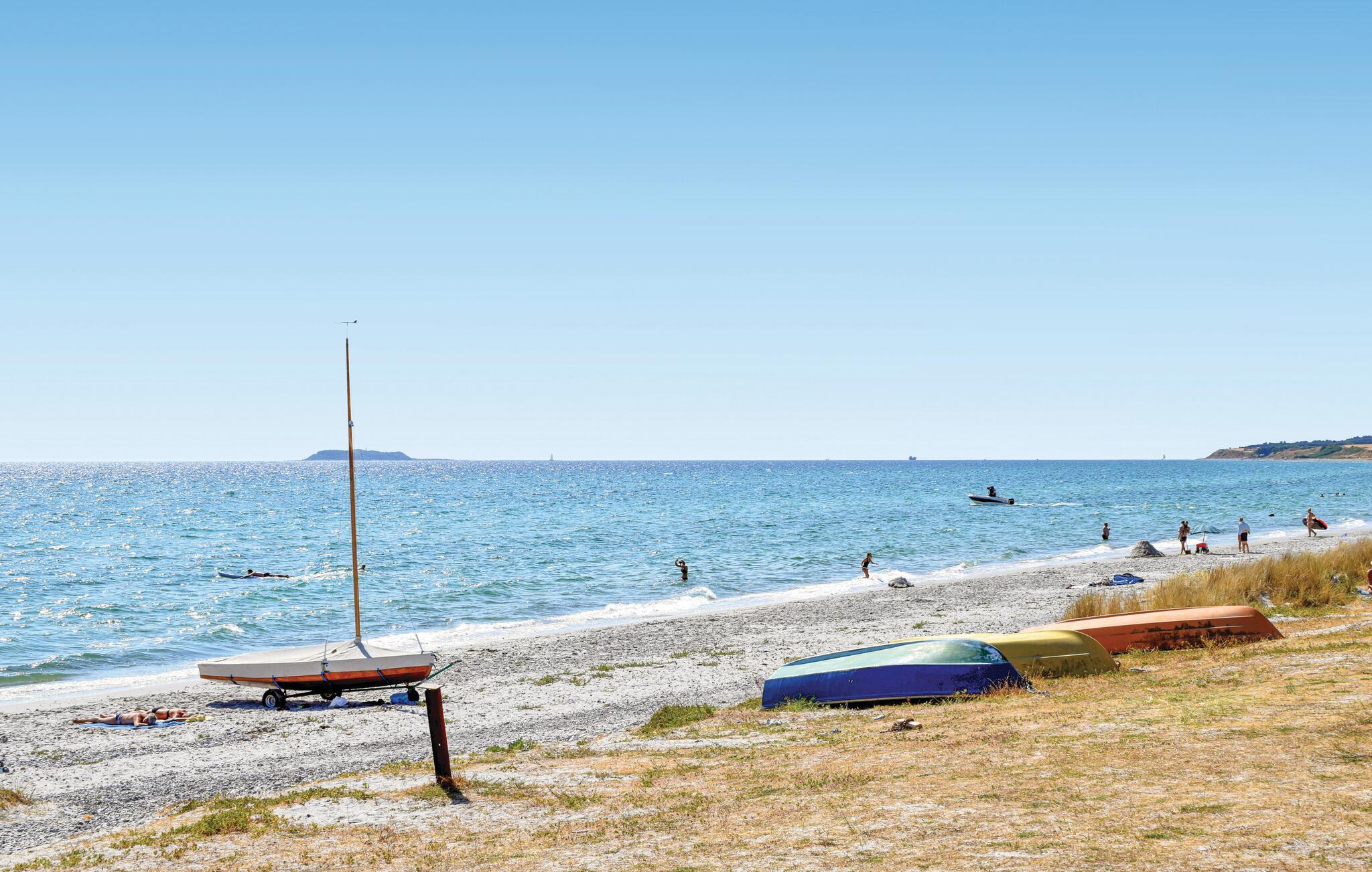 Sehr gepflegtes und einladendes Ferienhaus von 115 m² auf einem 1500 m² grossen, gepflegten und ungestörten Grundstück. Das Haus verfügt über drei große Zimmer in zwei verschiedenen Trakten mit je einem Badezimmer. Es ist deshalb für sowohl eine große als auch zwei kleinere Familien bestens geeignet. Zu allen Jahreszeiten wird dieses Ferienhaus den Gästen einen schönen Ferienaufenthalt ermöglichen ? geniessen Sie den schönen Whirlpool und die Sauna. Die Umgebung bietet gute Badestrände und Möglichkeiten zum Strandangeln.