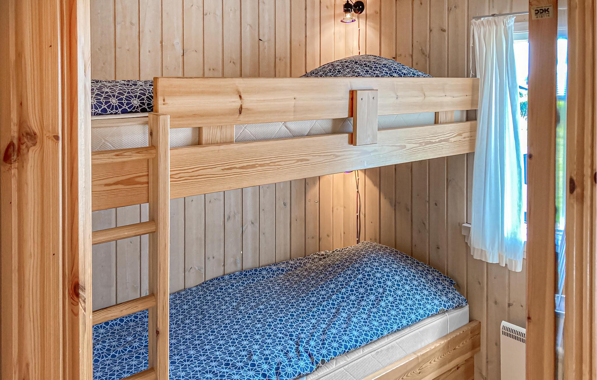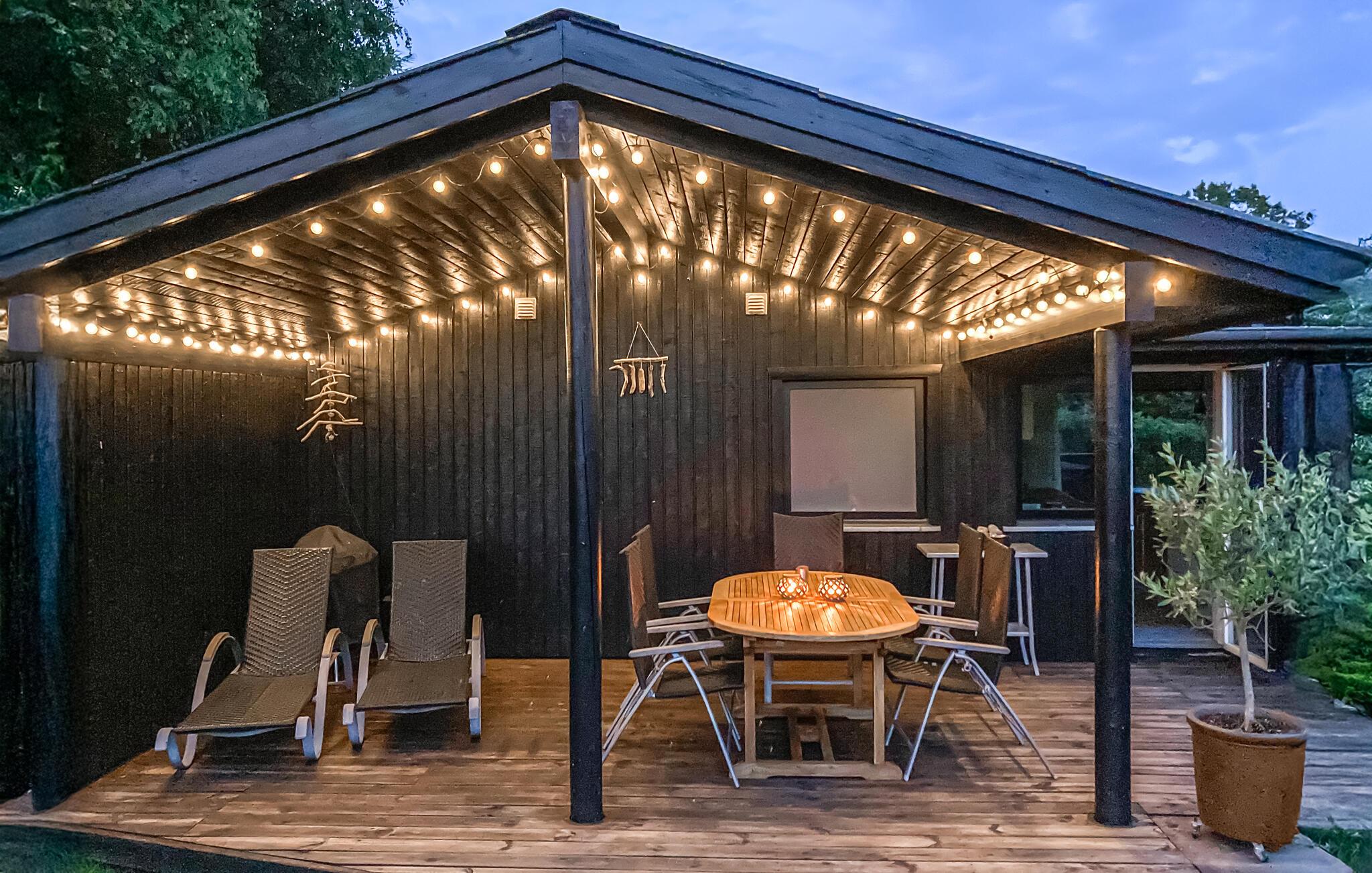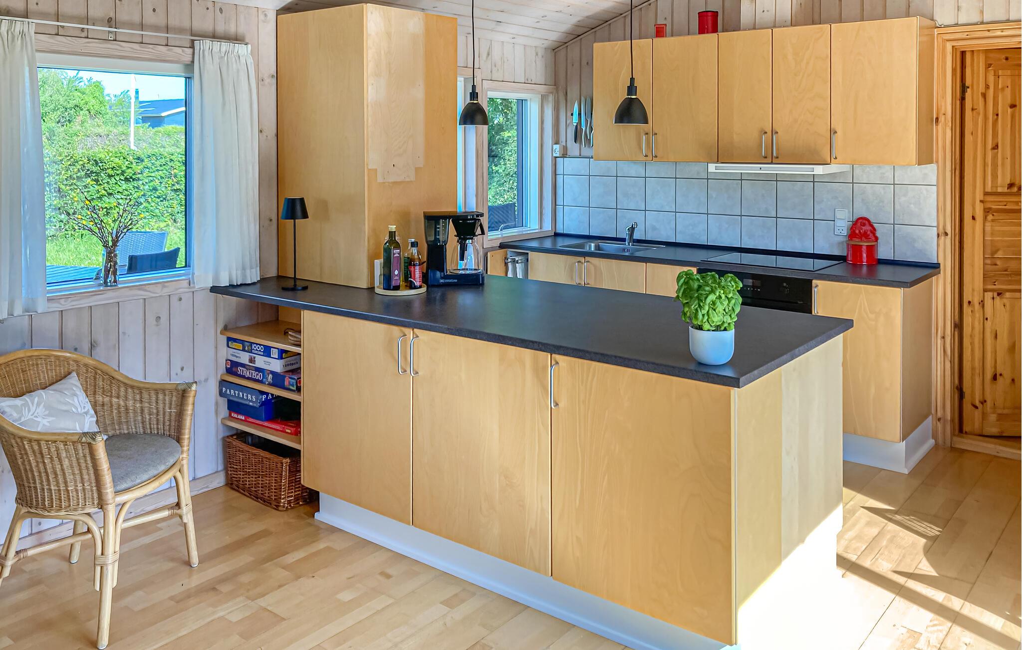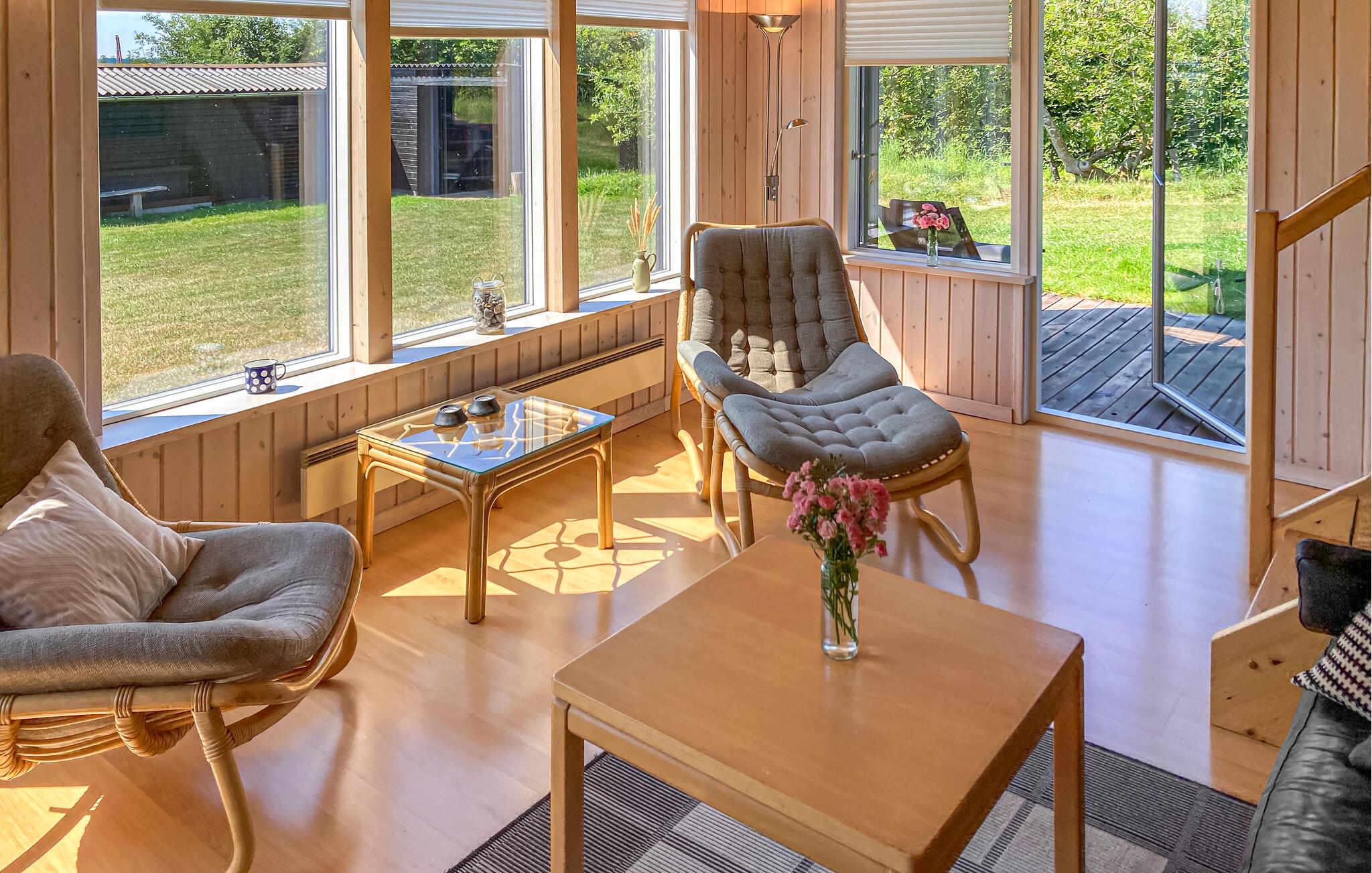 Komplett renoviertes Ferienhaus mit Aussicht auf die Insel Hjelm. Das schöne Grundstück liegt nur 300 m vom herrlichen Bade- und Angelstrand. Auch eine gute Slipstelle für das eigene Boot ist angelegt. Beim Ferienhaus gibt es einen Fischreinigungsplatz. Wohnzimmer ist auf 2 Niveaus angelegt und deshalb können Sie hier gut Ihre Freizeit gestalten. Sie finden immer eine stille Ecke oder einen Platz für ein Brettspiel. Sie können auch auf den großen hölzernen Terrassen um das ganze Haus herum das Außenleben genießen. Auf der Terrasse ist eine Hängematte. Das Grundstück ist groß und eignet sich auch zum Fußballspielen. Es gibt einen deutschen TV-Kanal. Im Garten haben Sie von mehreren beschaulichen Ecken Aussicht auf den Garten.