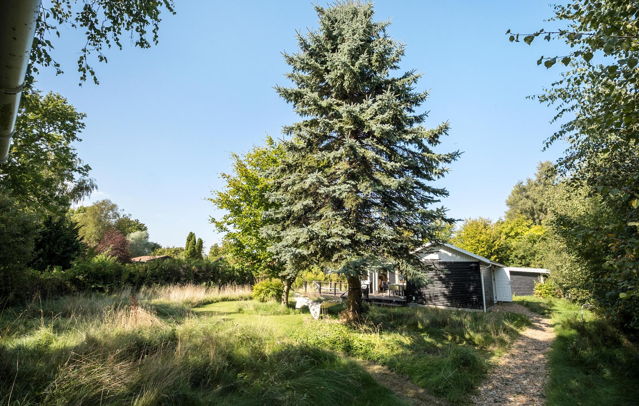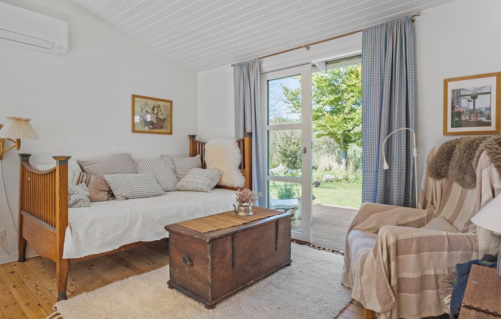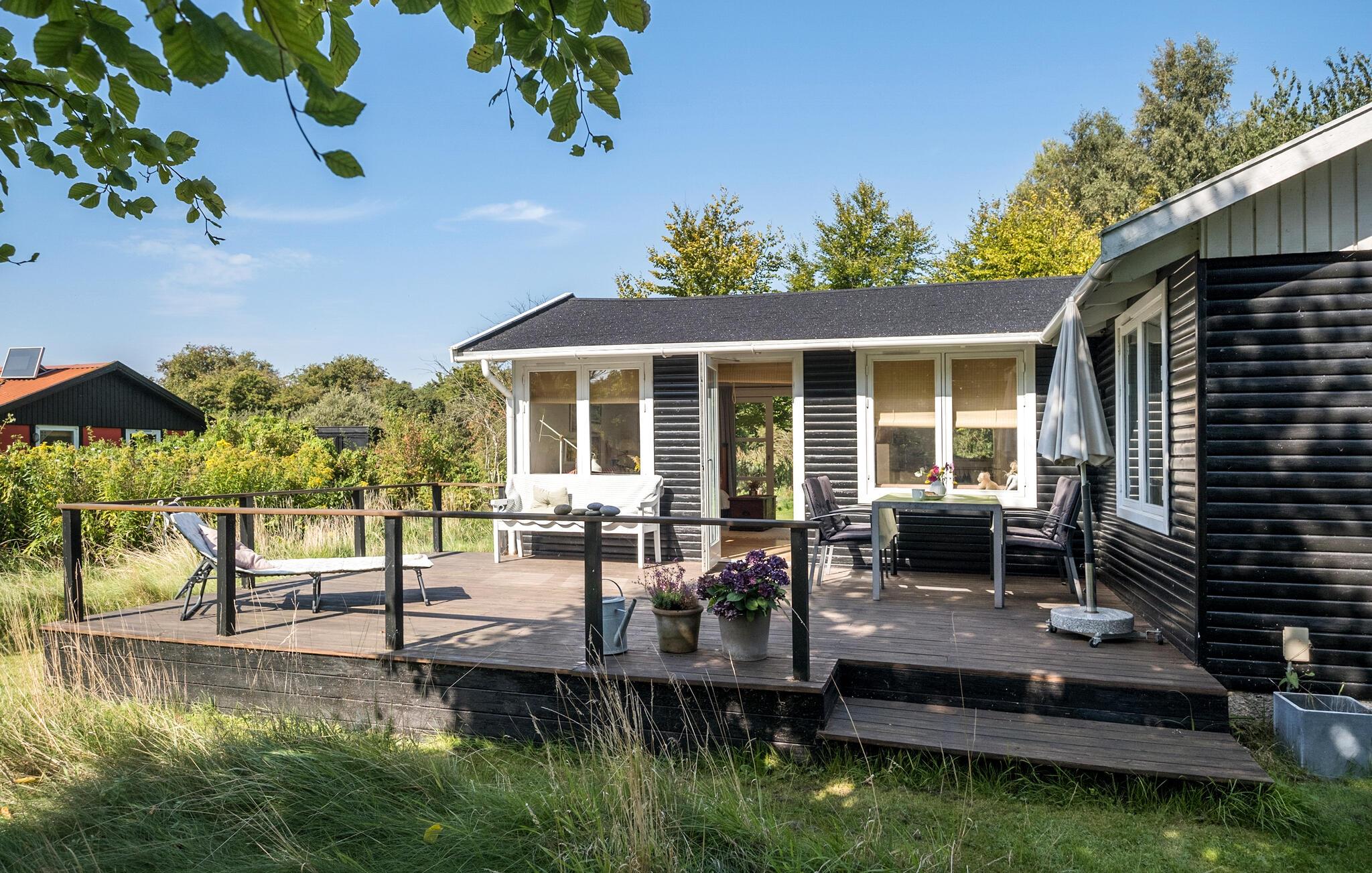 Ein elegantes Sommerhaus mit schönem Garten und skandinavischem Flair in idyllischer Lage nahe dem kinderfreundlichen Sandstrand.